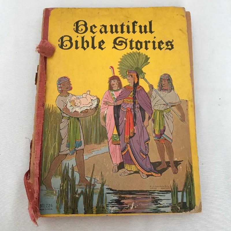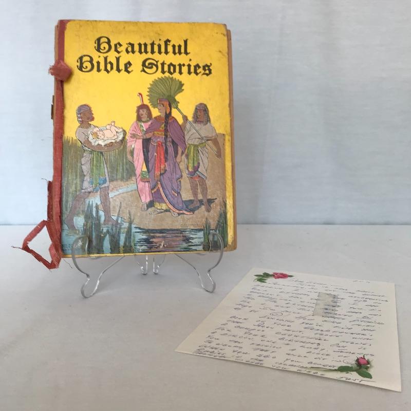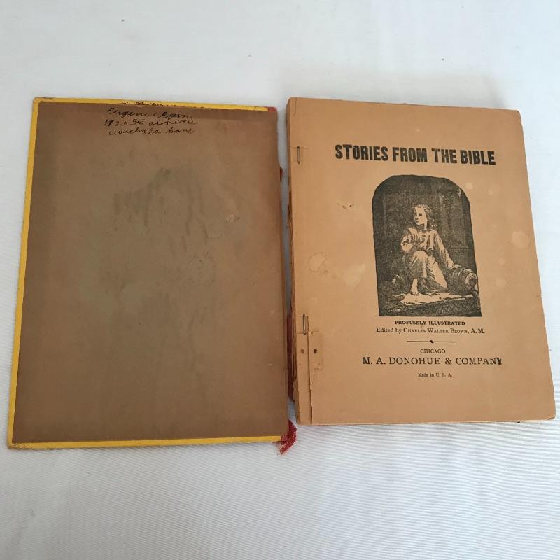 Lovely heirlooms passed down! Beautiful Bible Stories is a “Profusely Illustrated” book has been well loved and the binding is worn with the front and back cover separated. It is complete with a lovely note from Gram stating it was the recipient’s grandfathers once upon a time. The Book of Ruth has illustrations of every page, a suede-like cover. Both books are vintage and fragile, but strong enough to turn the pages carefully. Shipping available.