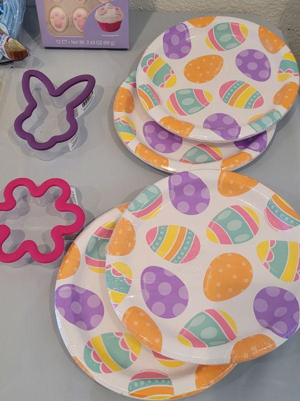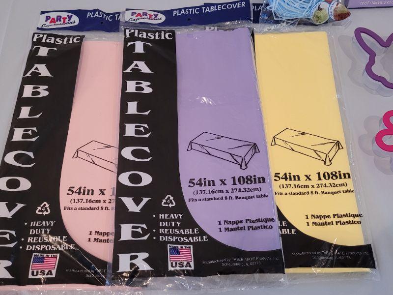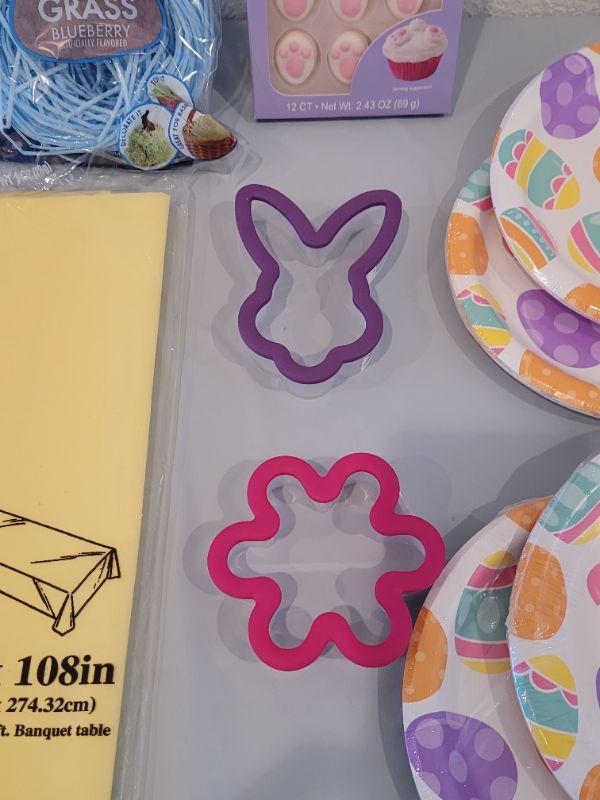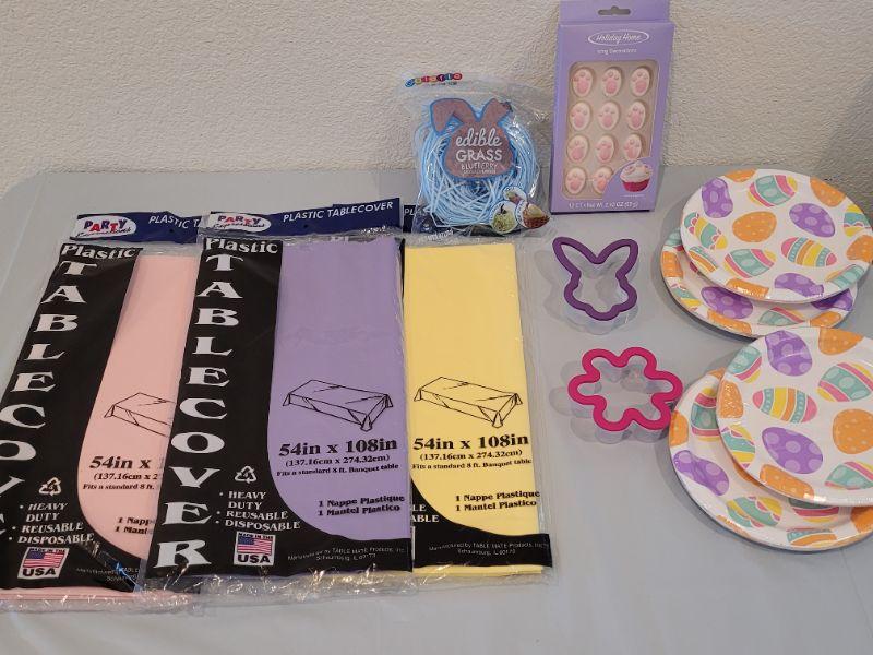 Lot 378: New Disposable Tablecloths and Plates, Cookie Cutters, Edible Grass