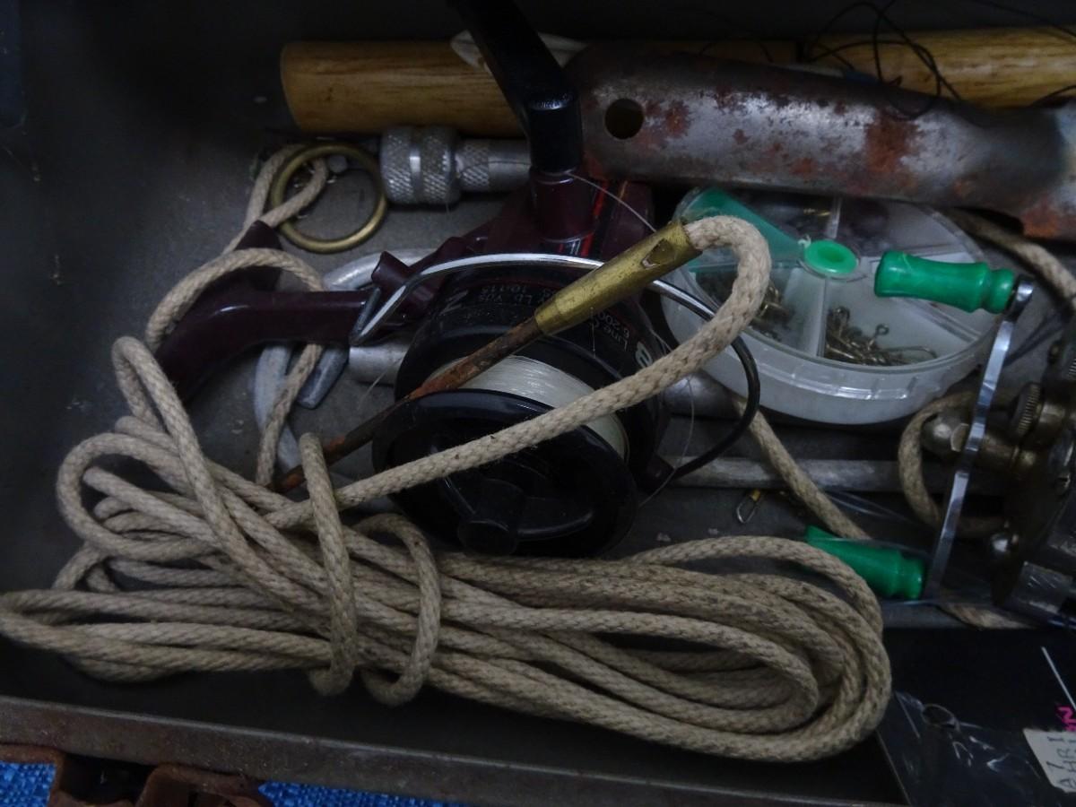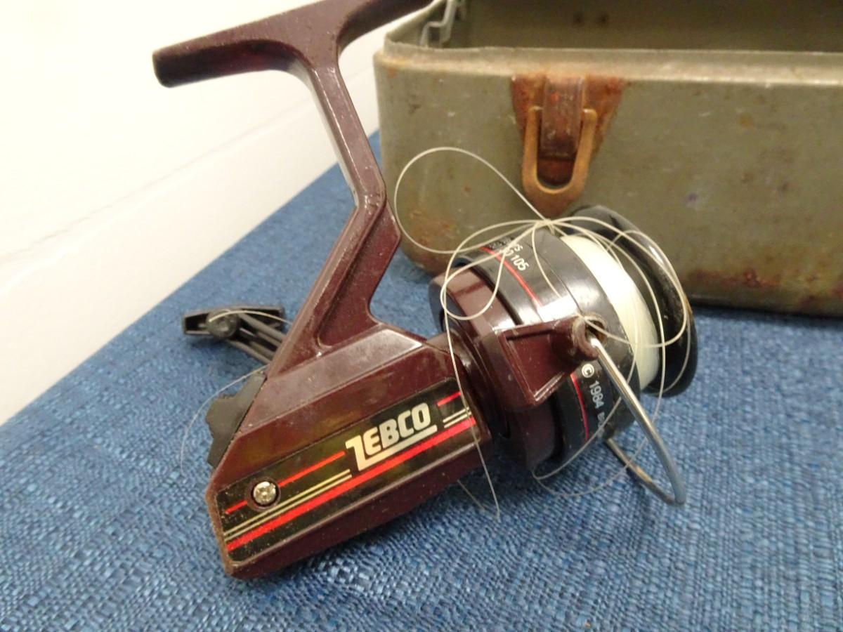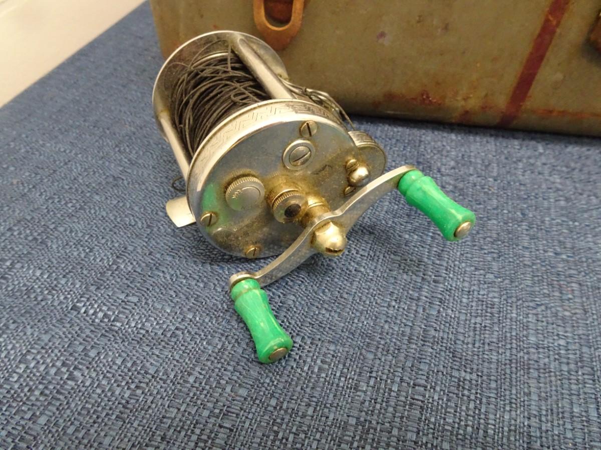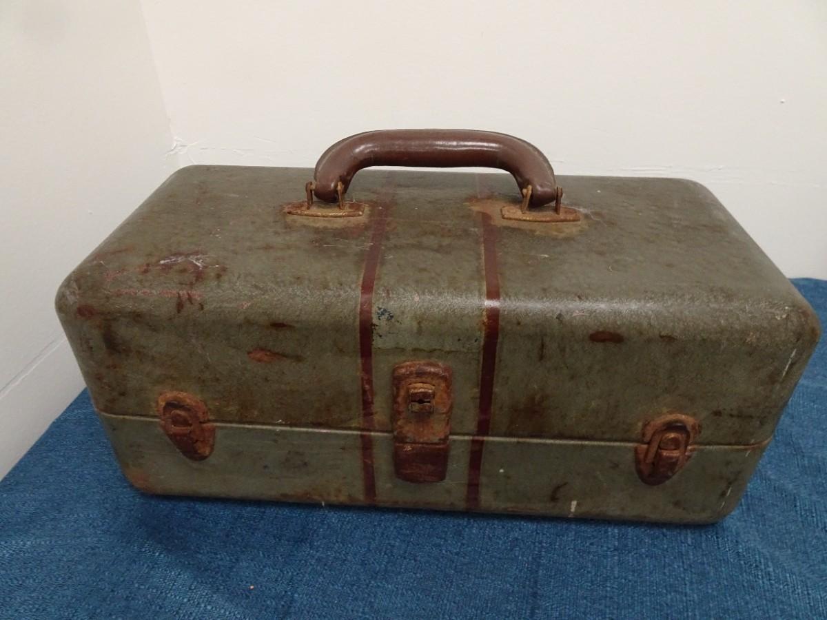 LOT 378. VINTAGE FISHING TACKLE BOX AND CONTENTS
