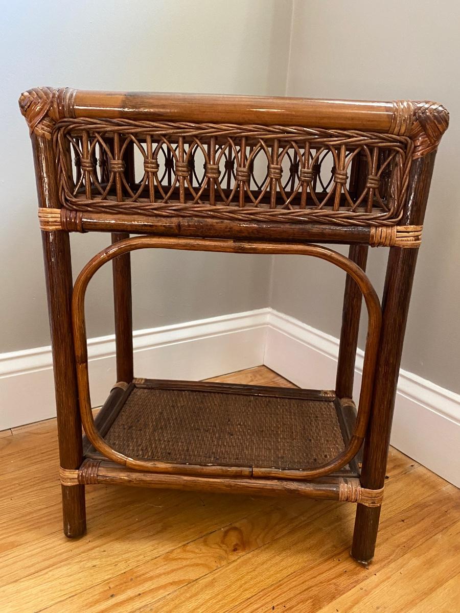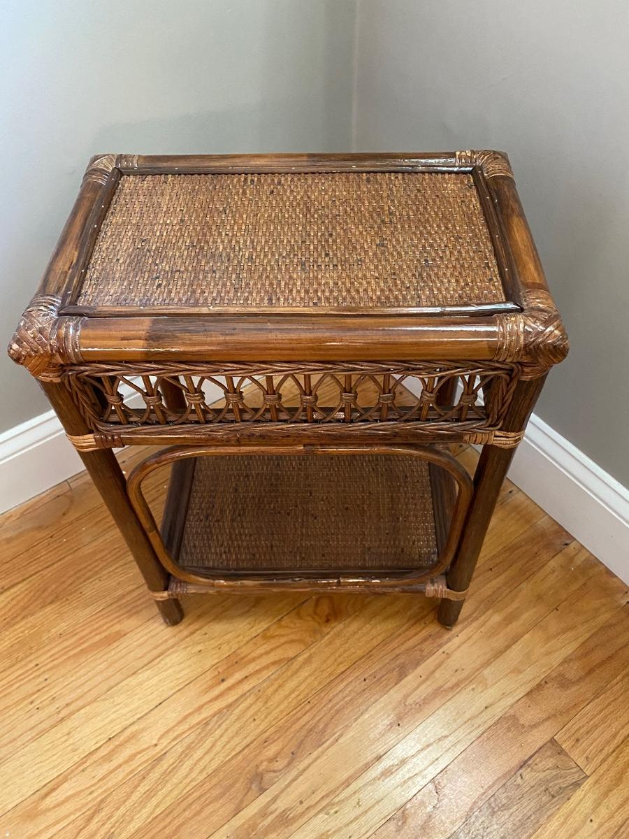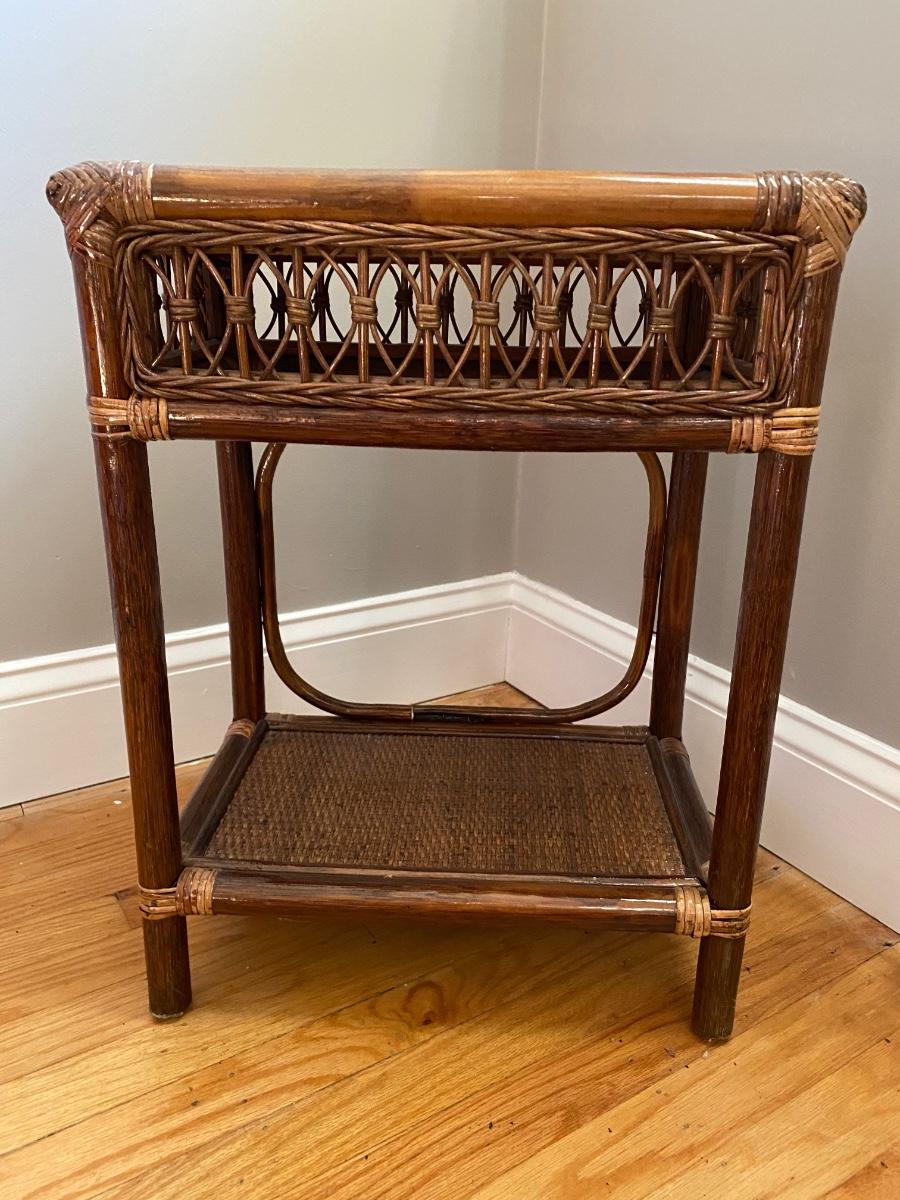 Lot 378: Salt Lamp w/Box and Rattan Accent Table