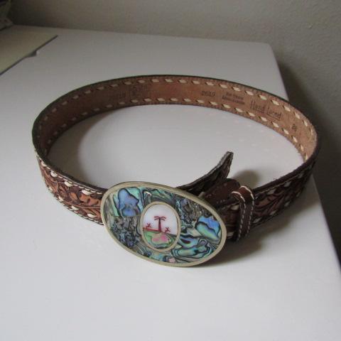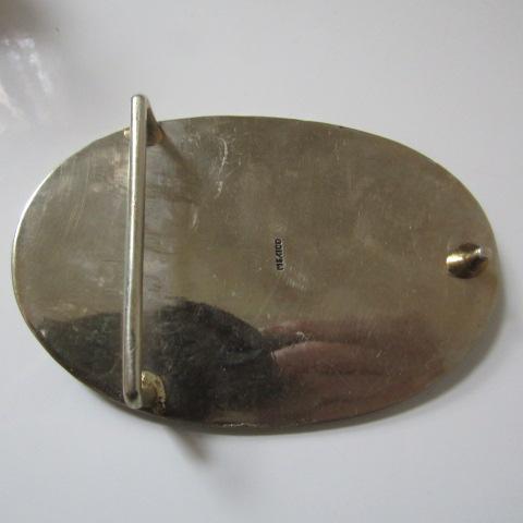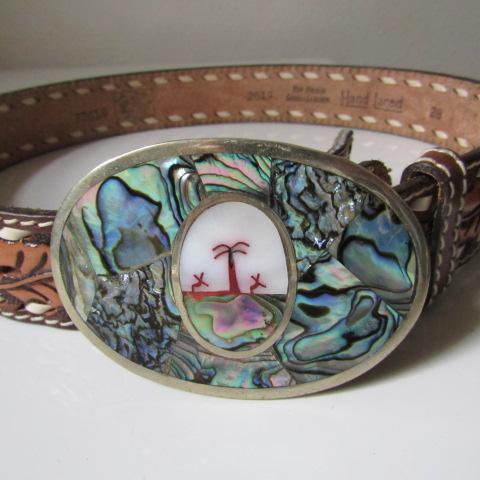MOTHER OF PEARL OR ABALONI BUCKLE IS MARKED "MEXICO"