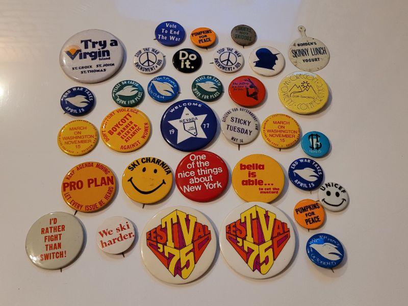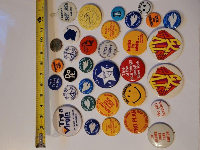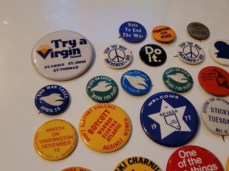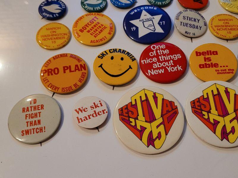 Lot #379: Large Assortment of Vintage Fun Button Pins