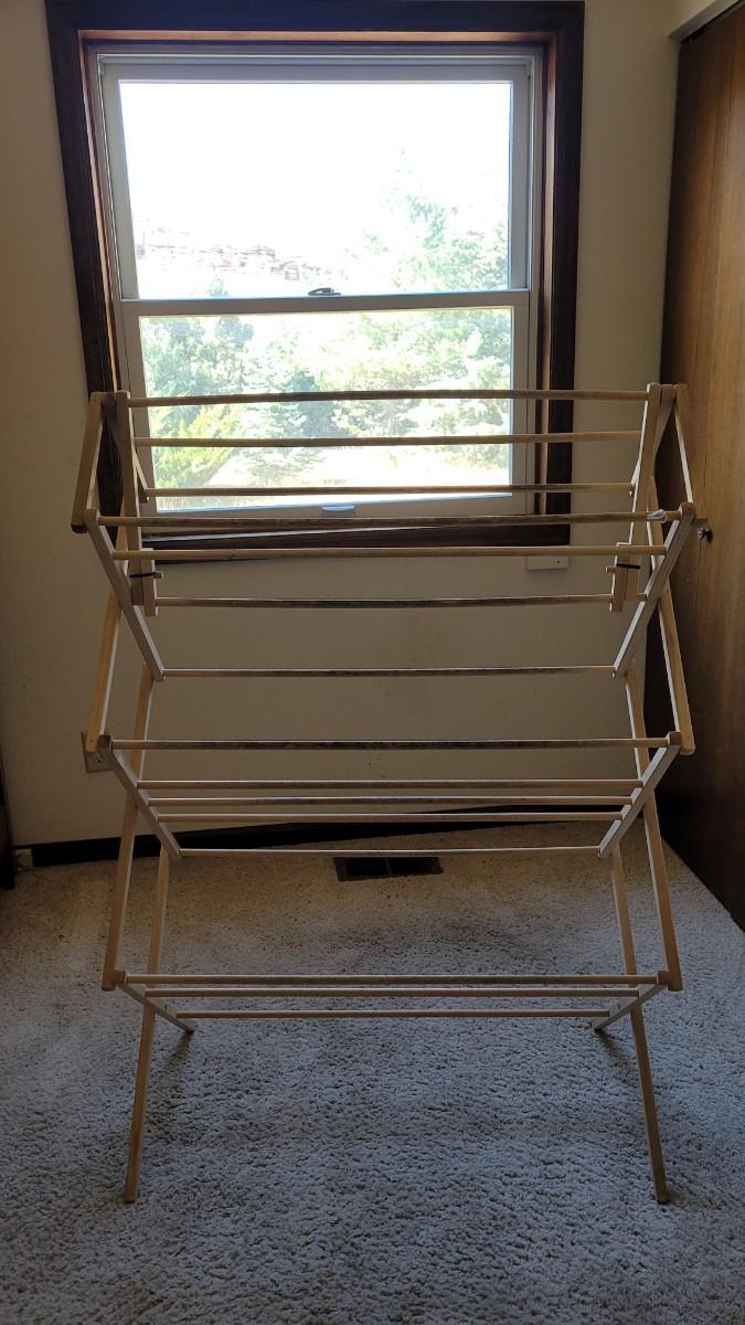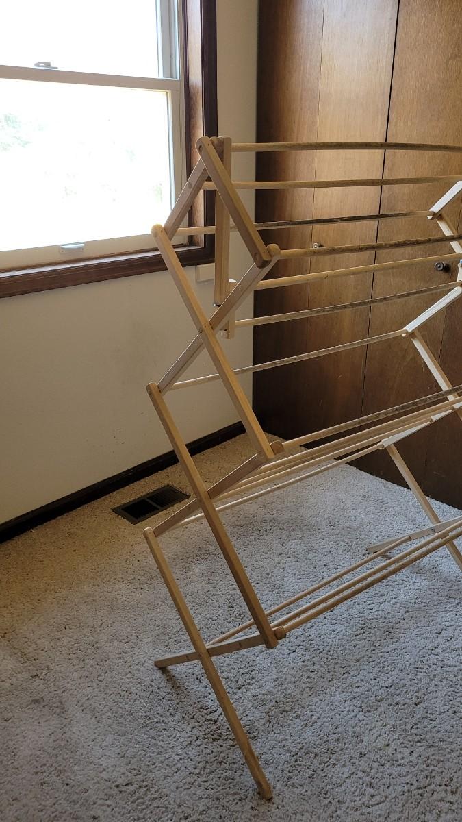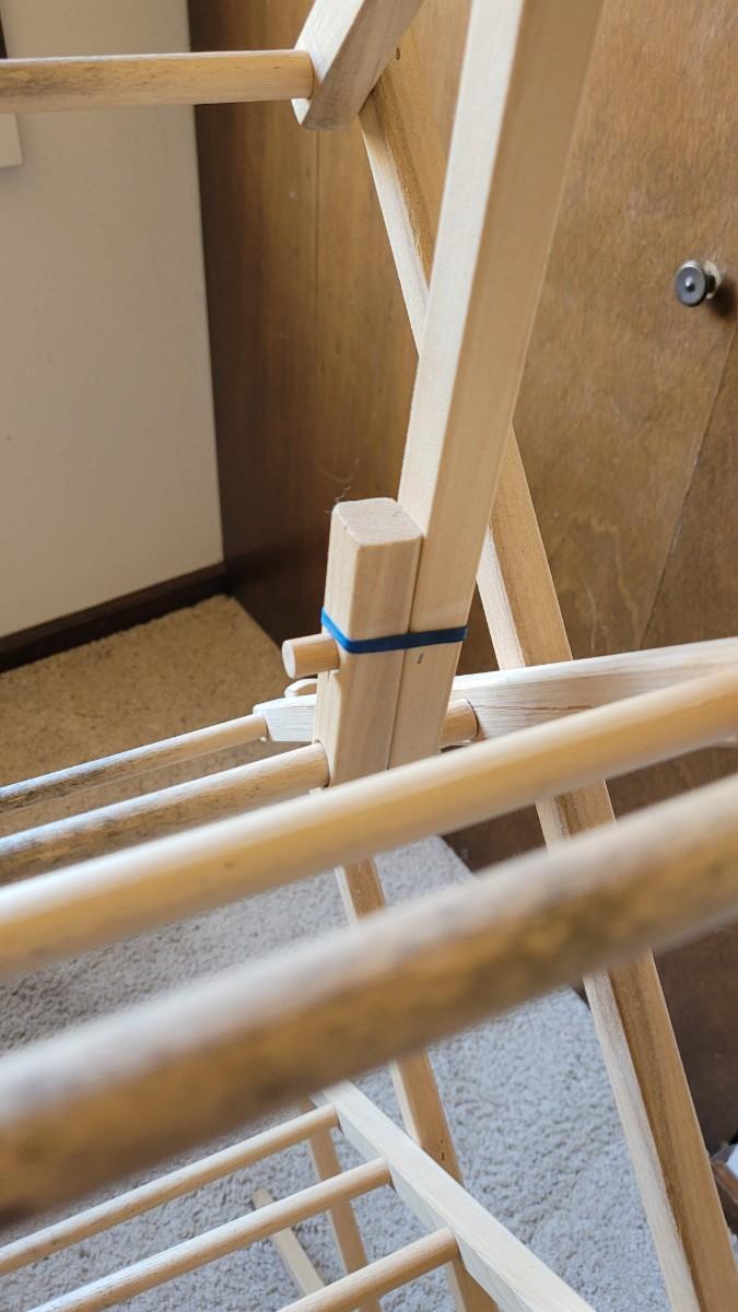 Lot 379: Wood Folding Rack- uses rubber bands to clamp