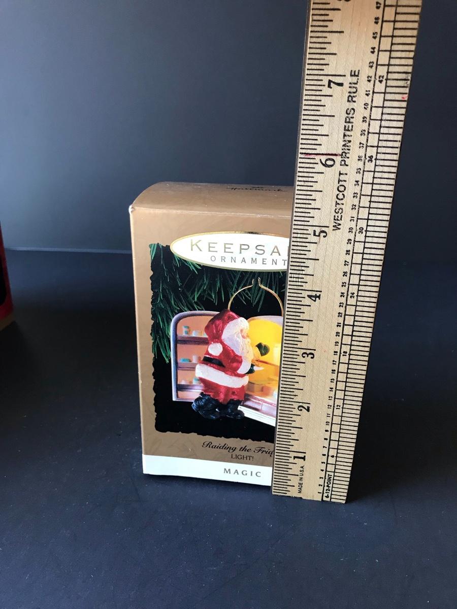 Hallmark Santa Keepsake Christmas Ornaments. All Holiday items in this auction are as-seen. The client collected a lot of holiday pieces and some are new in box, some were displayed once and come with original box, and some have been displayed and come with no box. They are all pre-owned in some fashion and have been stored in an attic or on shelf in library. Please see all pictures. The pictures show condition, measurements if taken, and what is included in the lot. Due to the large amount that we photograph and the time frame, we are not always able to take measurements. All items unless noted, are pre-owned and have been used. Thank you