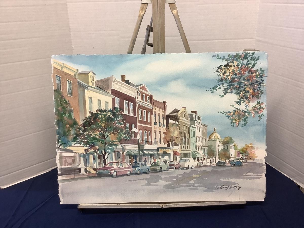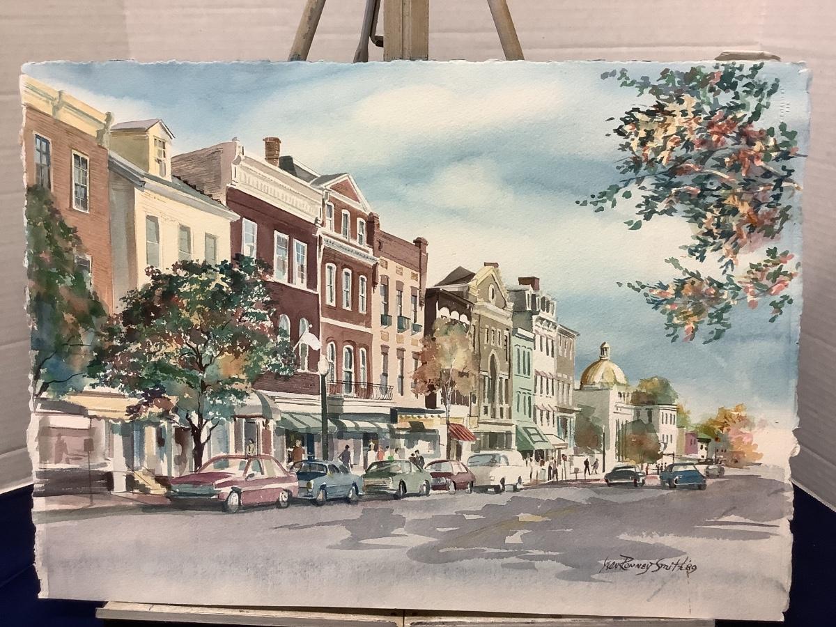Signed Original Watercolor Painting by Jean Rainey Smith “ City Street “