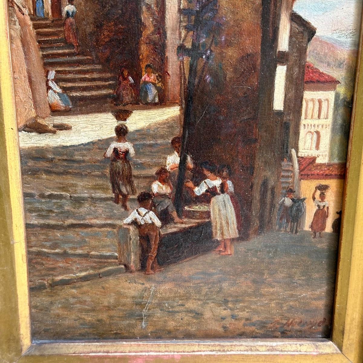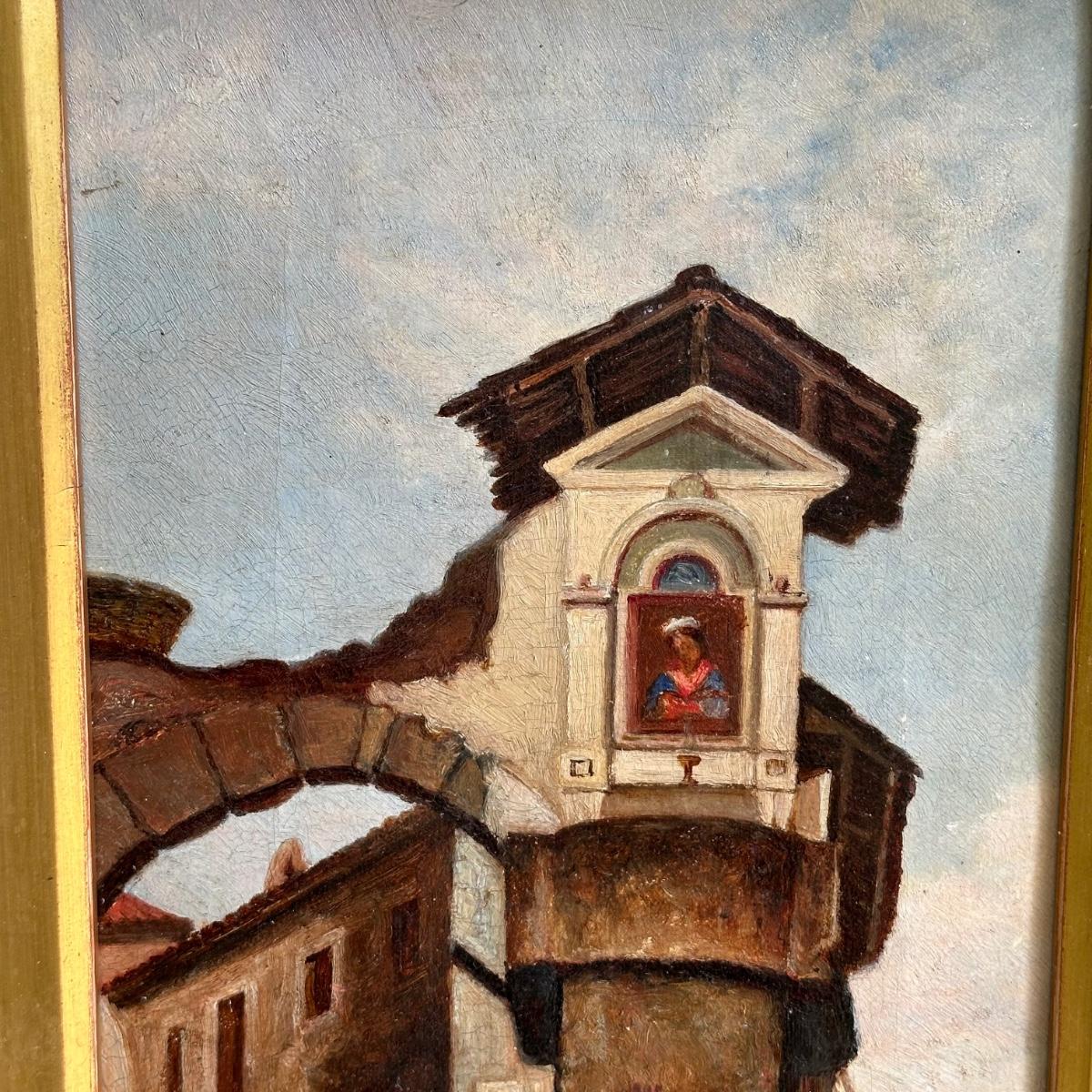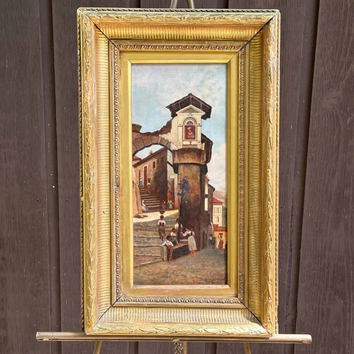 LOT 37G: Framed Antique Original Oil Painting Italian Courtyard