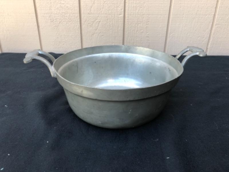 . Lot 37P. Pewter porridge bowl with no lid, large, two handles, stamped London, P. H. Strauss Engl. Blockzinn, monogrammed Von Chr. Kraft, J + B “” $8.75