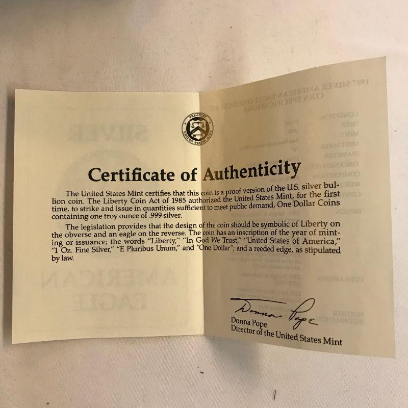 Lot 38 - 1987 Silver Eagles .999