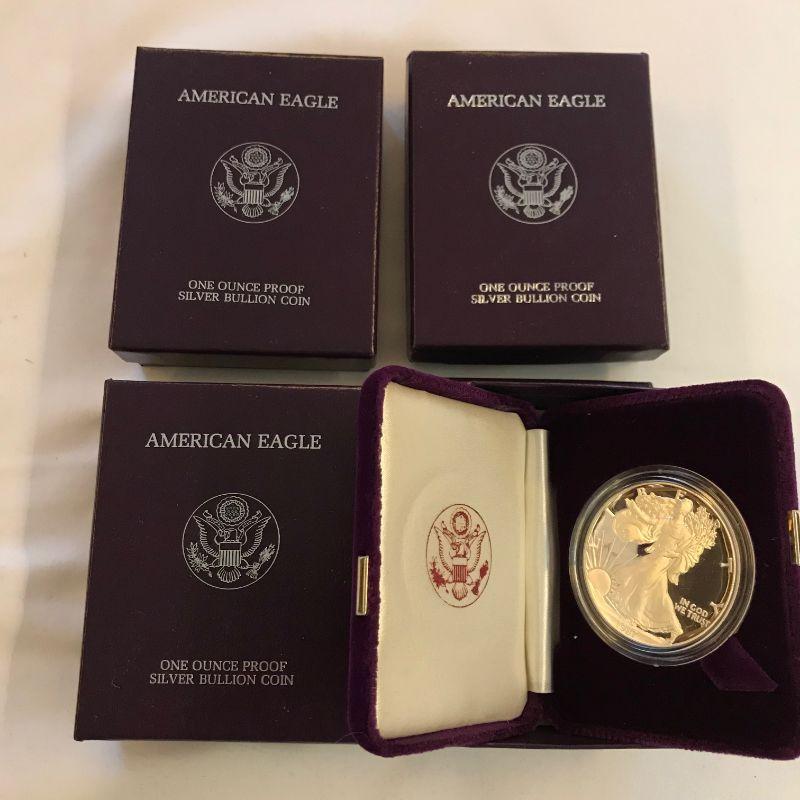 Four 1987 Proof .999 Silver Eagles