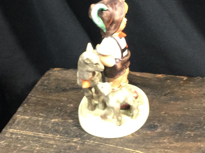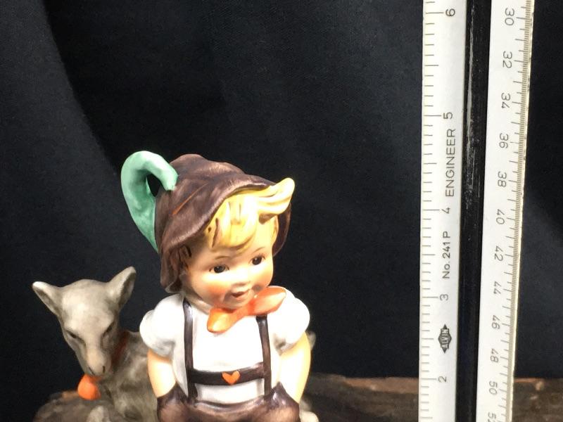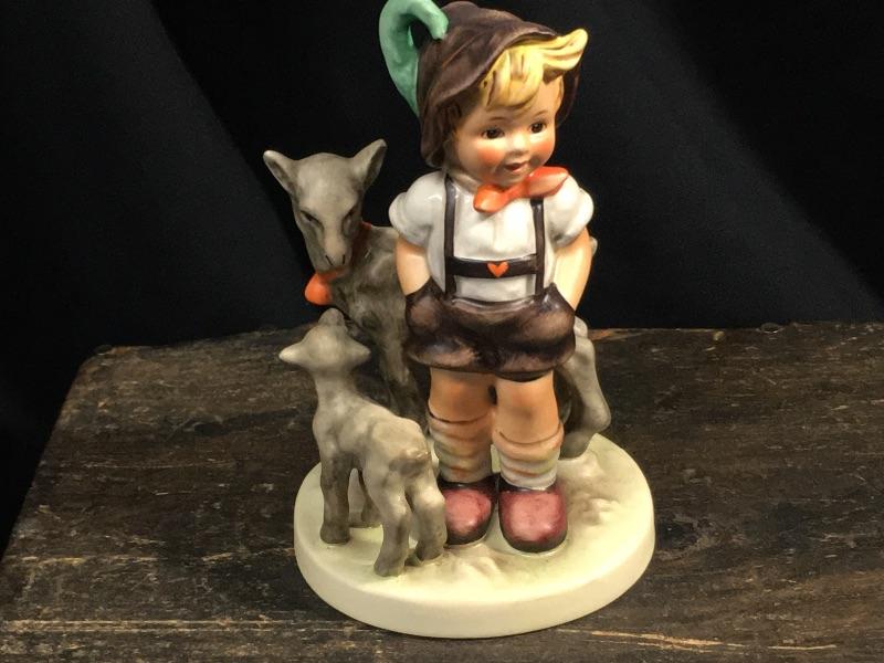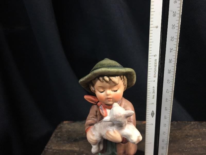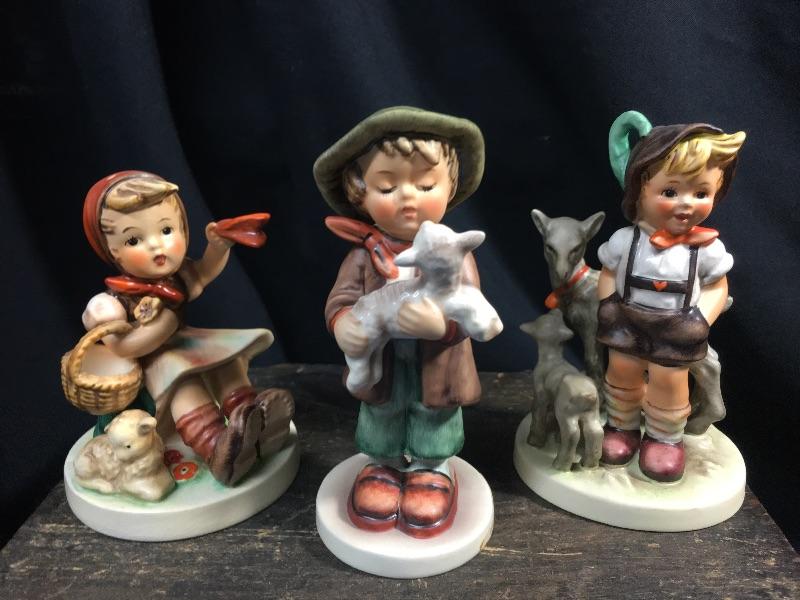 This lot of 3 Hummels contains Hummel #200/I “Little Goat Herder”, #65/I “Farewell”, and #68/0 “The Lost Sheep”. “Little Goat Herder” is a TMK 5 Hummel and and has some minimal crazing, as shown in the pictures. “Farewell” is a TMK 5 Hummel as well, and is lightly crazed as seen in the pictures. “The Lost Sheep” is a TMK 5 Hummel and is in mint condition with no visible crazing