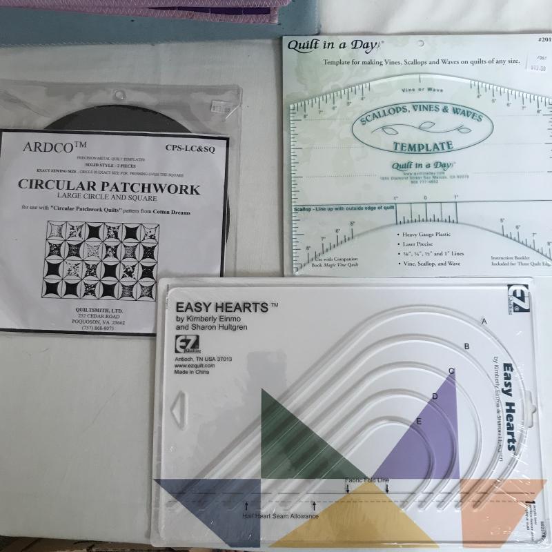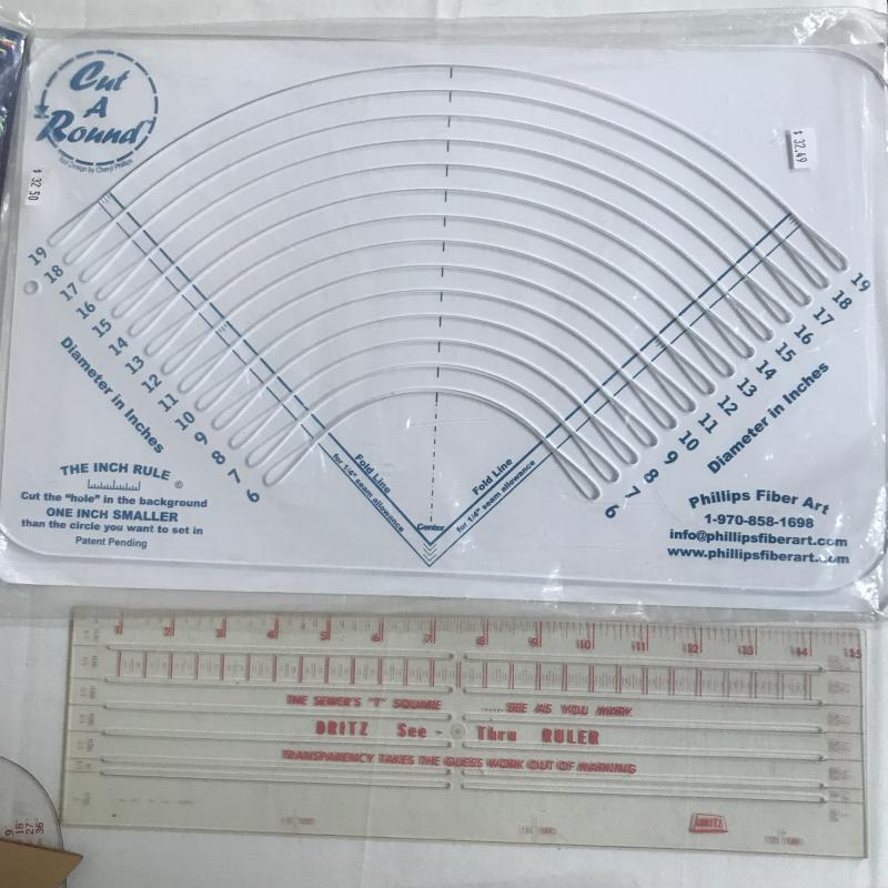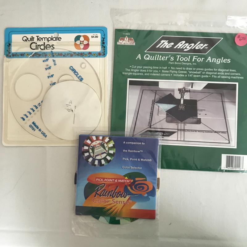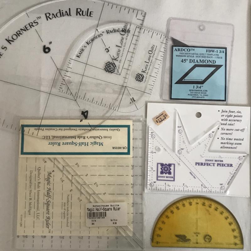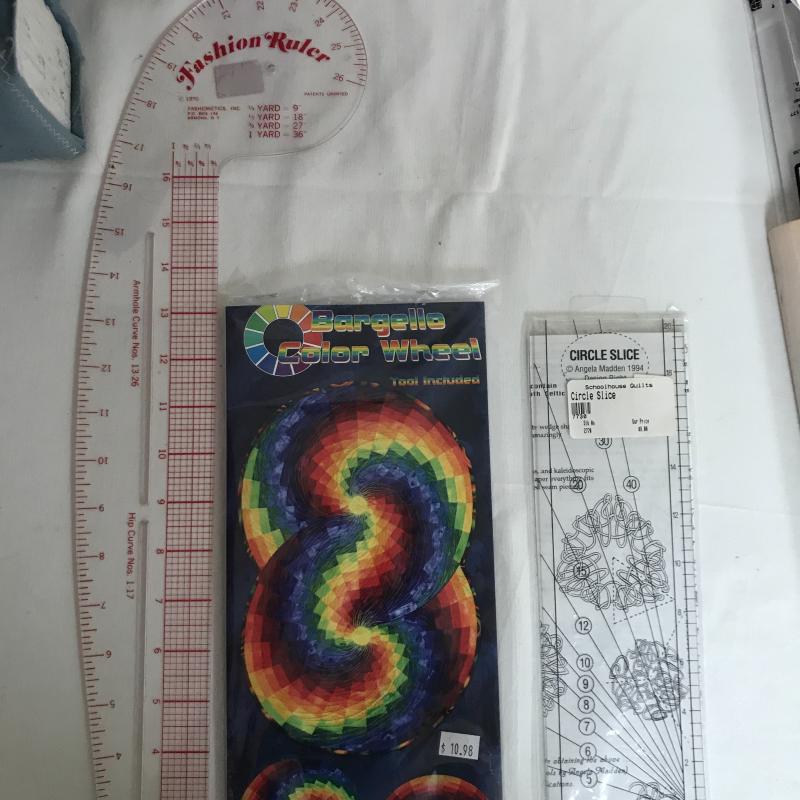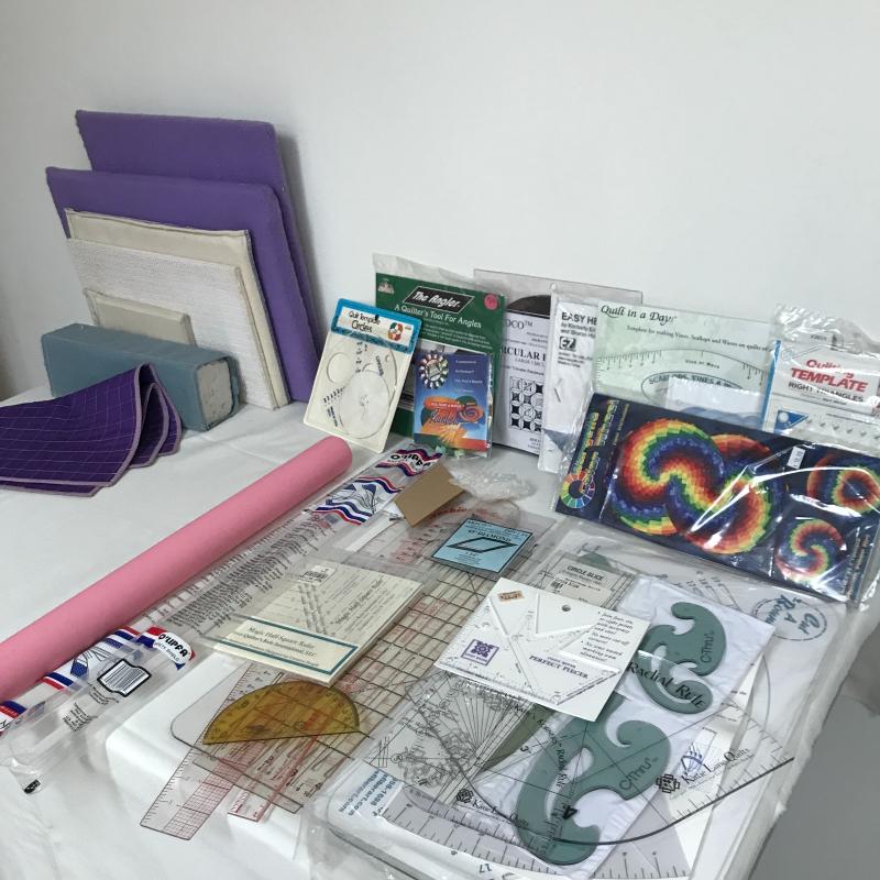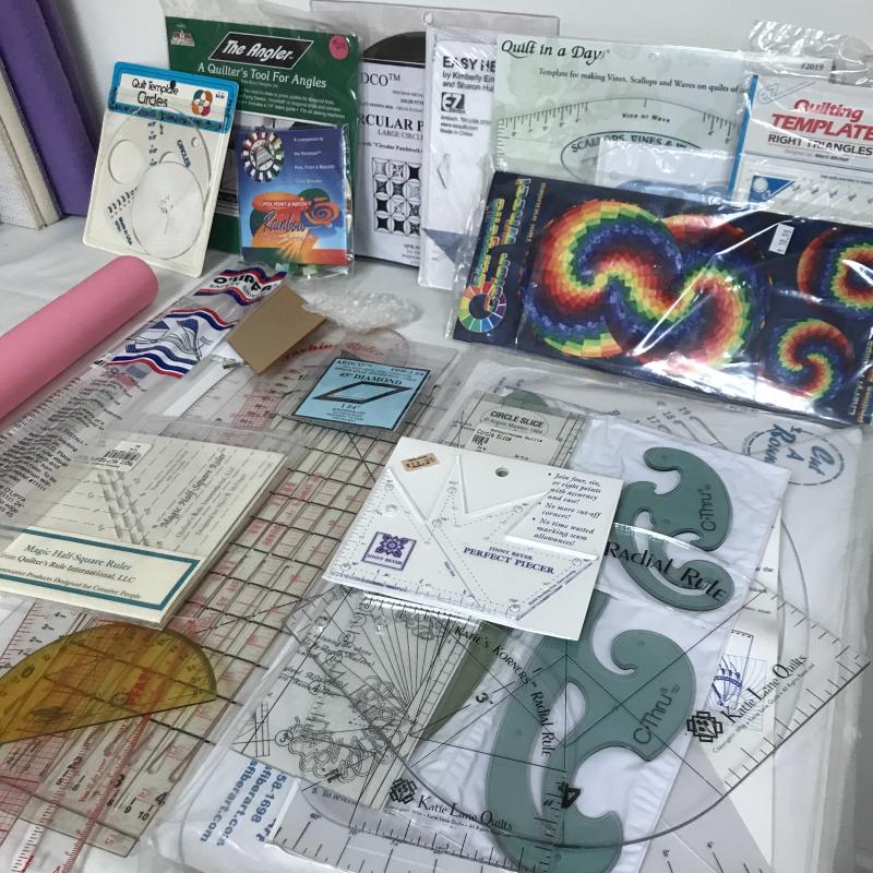 This lot includes a large number of rulers and tools. Most all of them are new in packaging. It also includes some weights and a Sil-Pin silicone rolling pin 20” that is actually for baking but you can use it to smooth out your quilts! See photos for details. No shipping.
