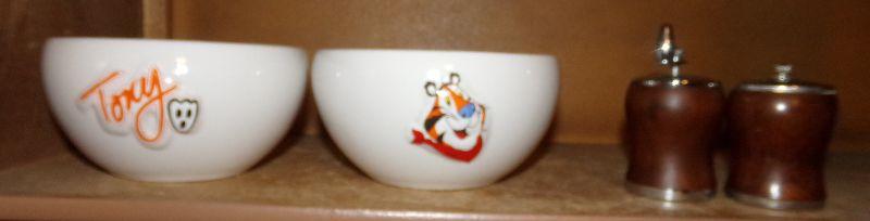 AND 2 "TONY THE TIGER" CEREAL BOWLS "THEY'RE GREAT"!