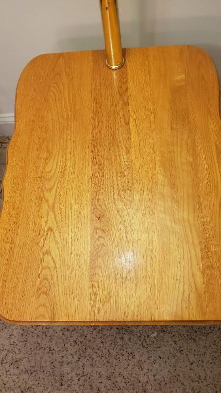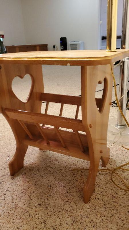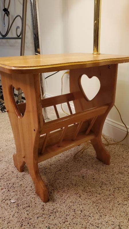Table Lamp with storage for magazines, and a chrome and lucite floor lamp with no shade. Untested.