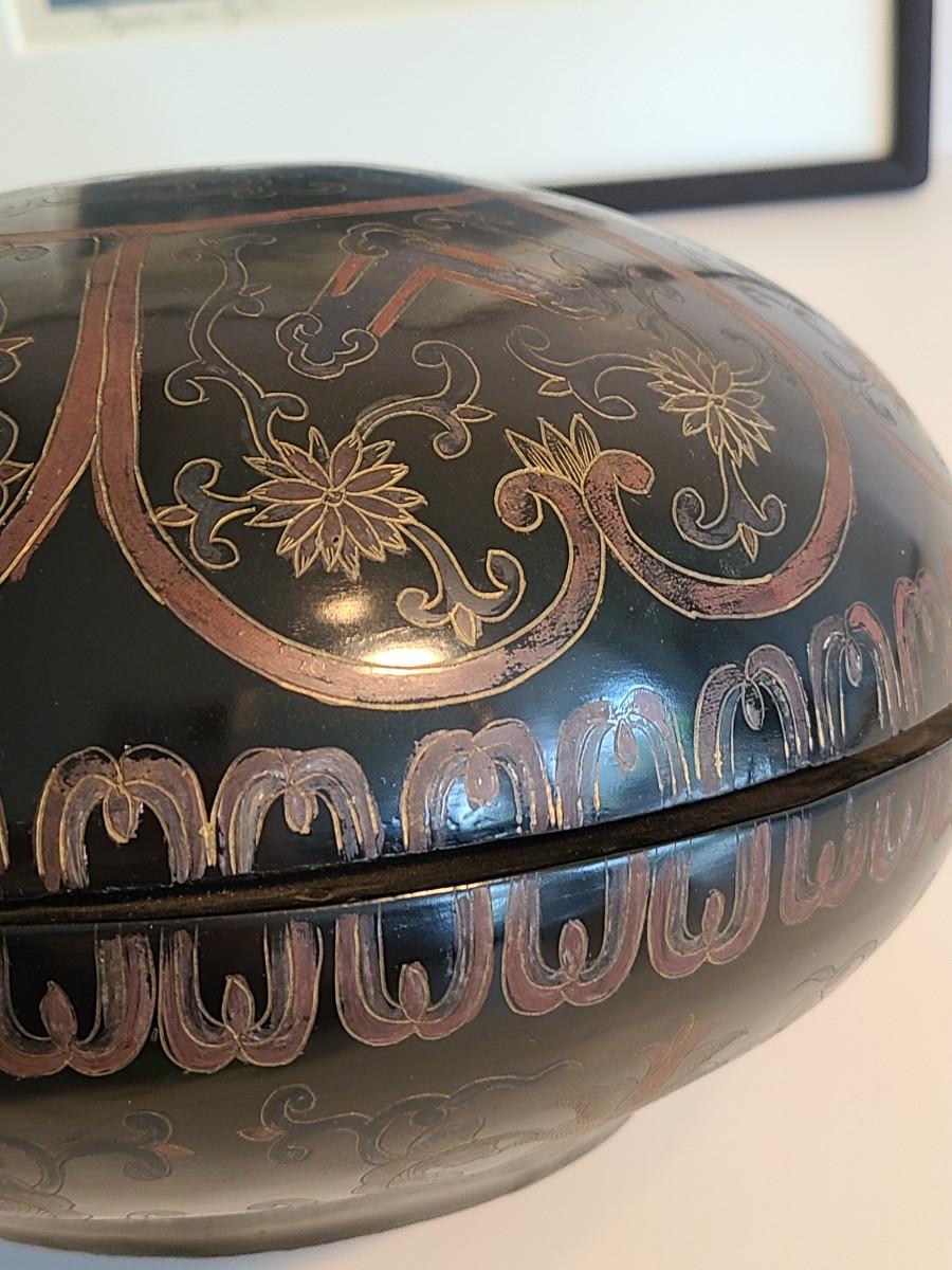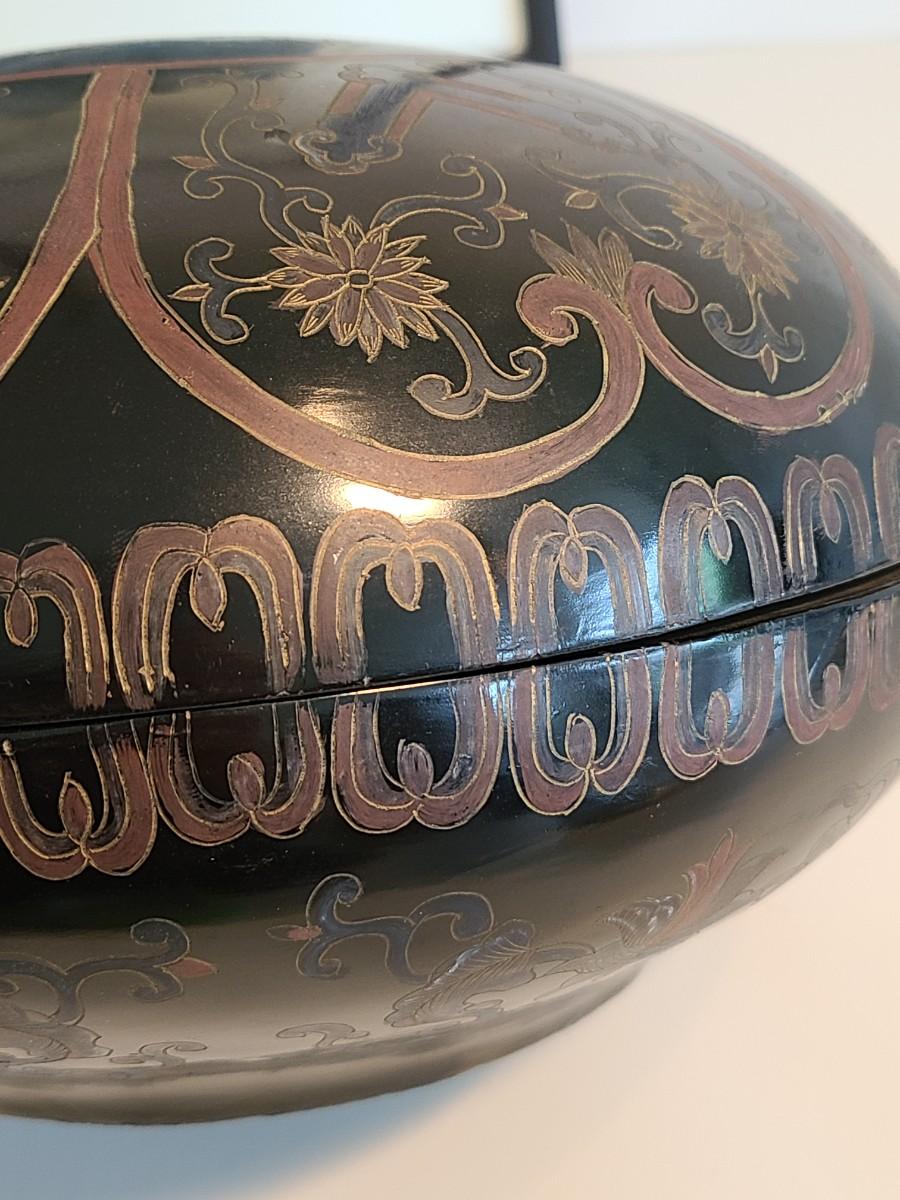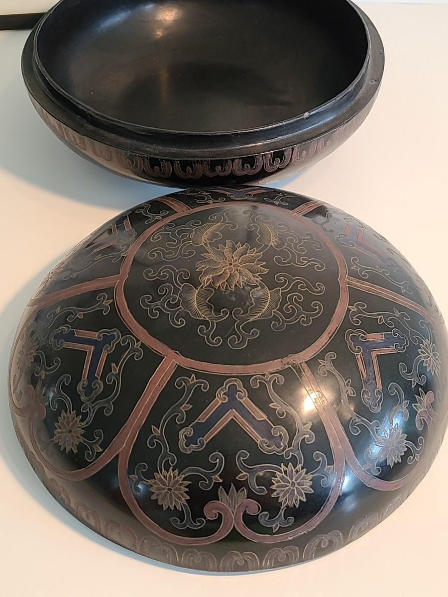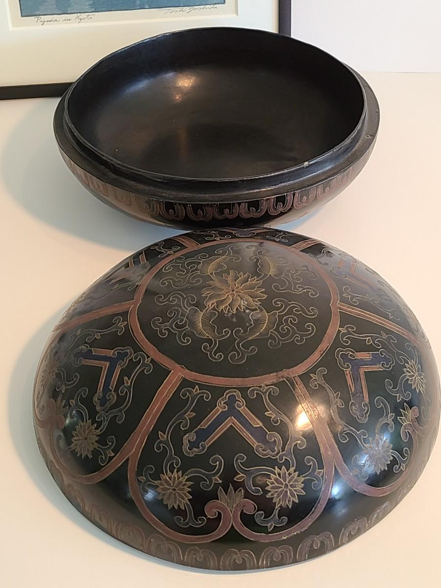 Large ornately designed lacquerware lidded bowl/container, and artist signed "Pagoda in Kyoto" framed and matted, in glass artwork. Please see all pictures for content of the lot, condition of the lot, and measurements if taken. Pictures are the best representation of the items listed and items are untested unless indicated in description. Thank you for looking and have fun bidding!