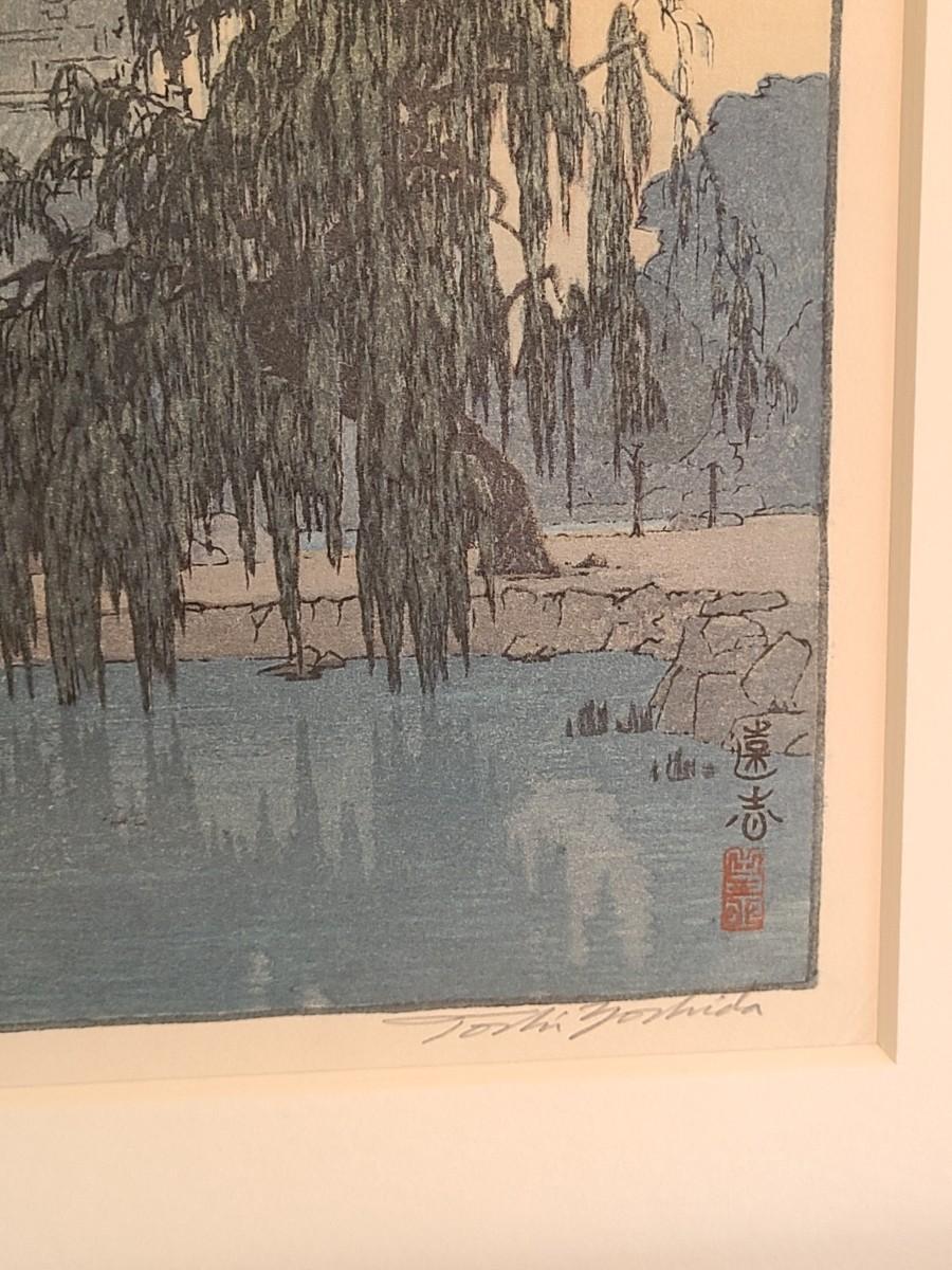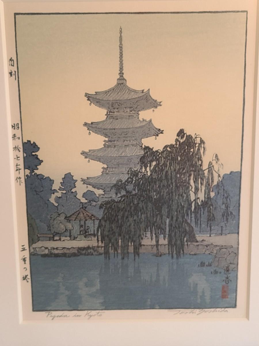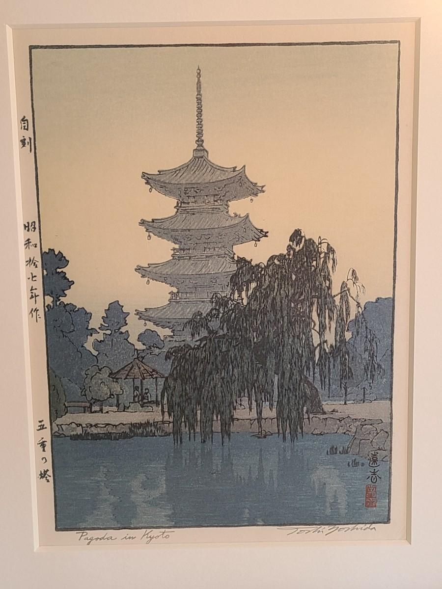 Lot 38: Toshi Yoshida Signed Pagoda Artwork & Large Asian Lacquerware Lidded Canister