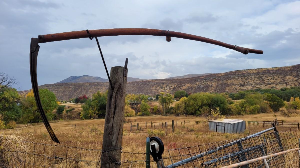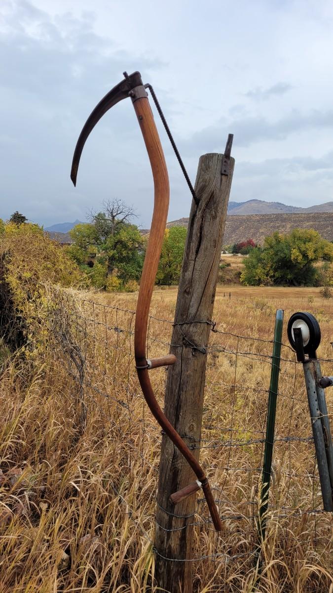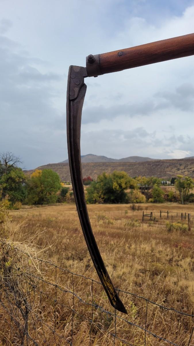 Lot 38: Vintage Farm and Garden Scythe Grim Reaper Halloween Accessory FARMHOUSE
