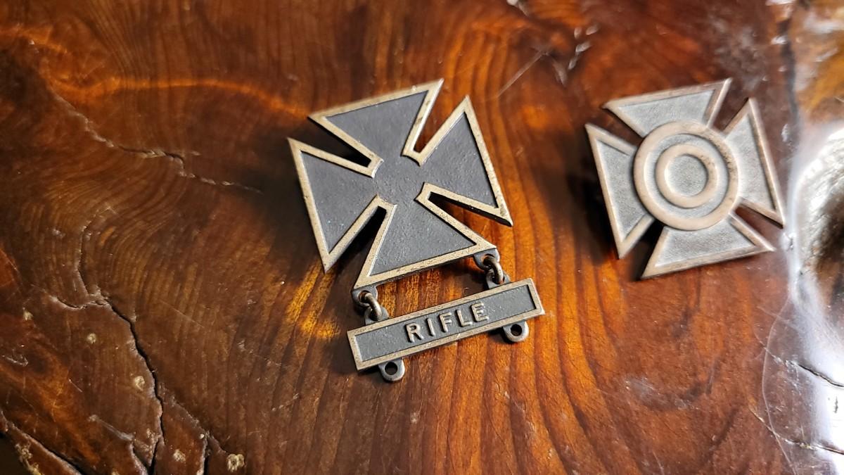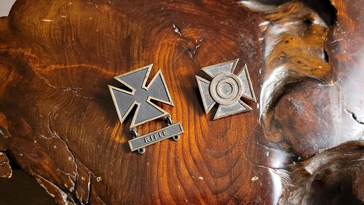 Lot 38: (2) Vintage Military STERLING SILVER Sharpshooter Rifle Pins