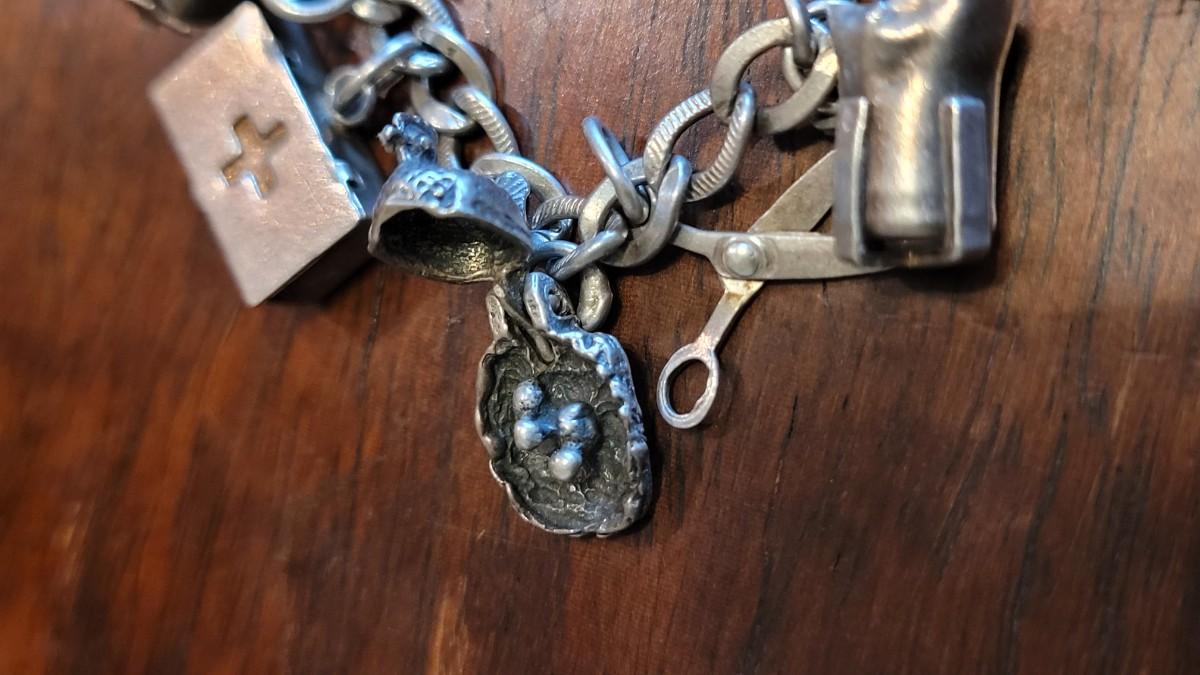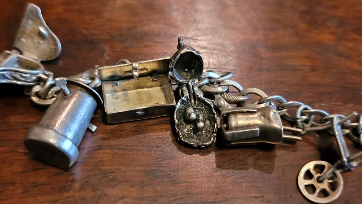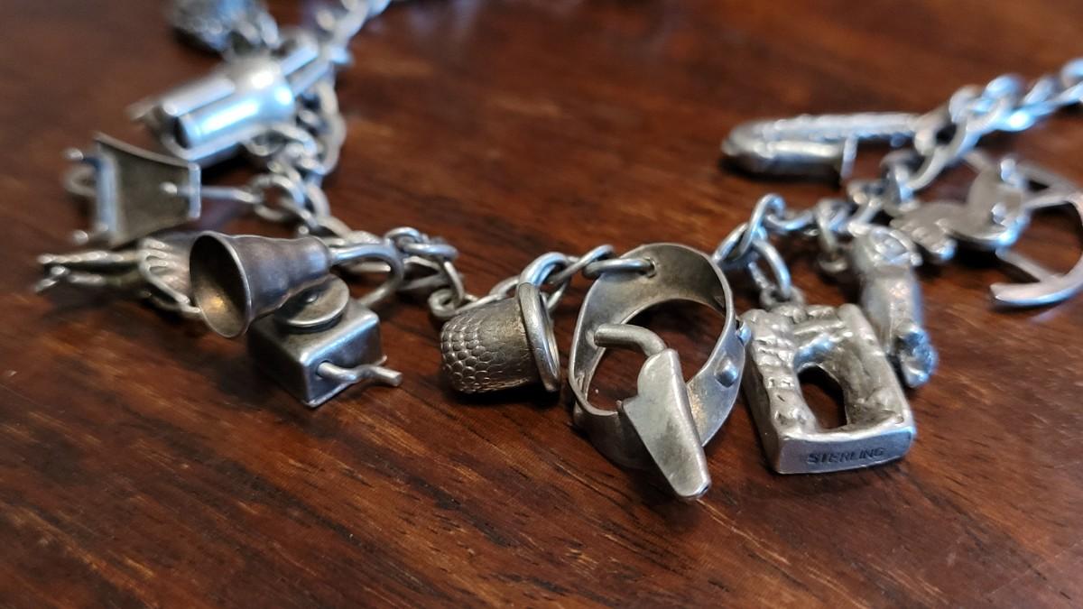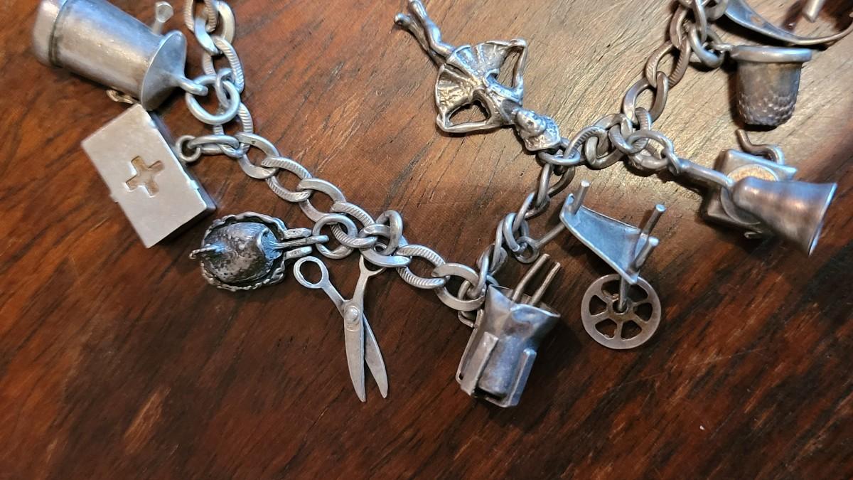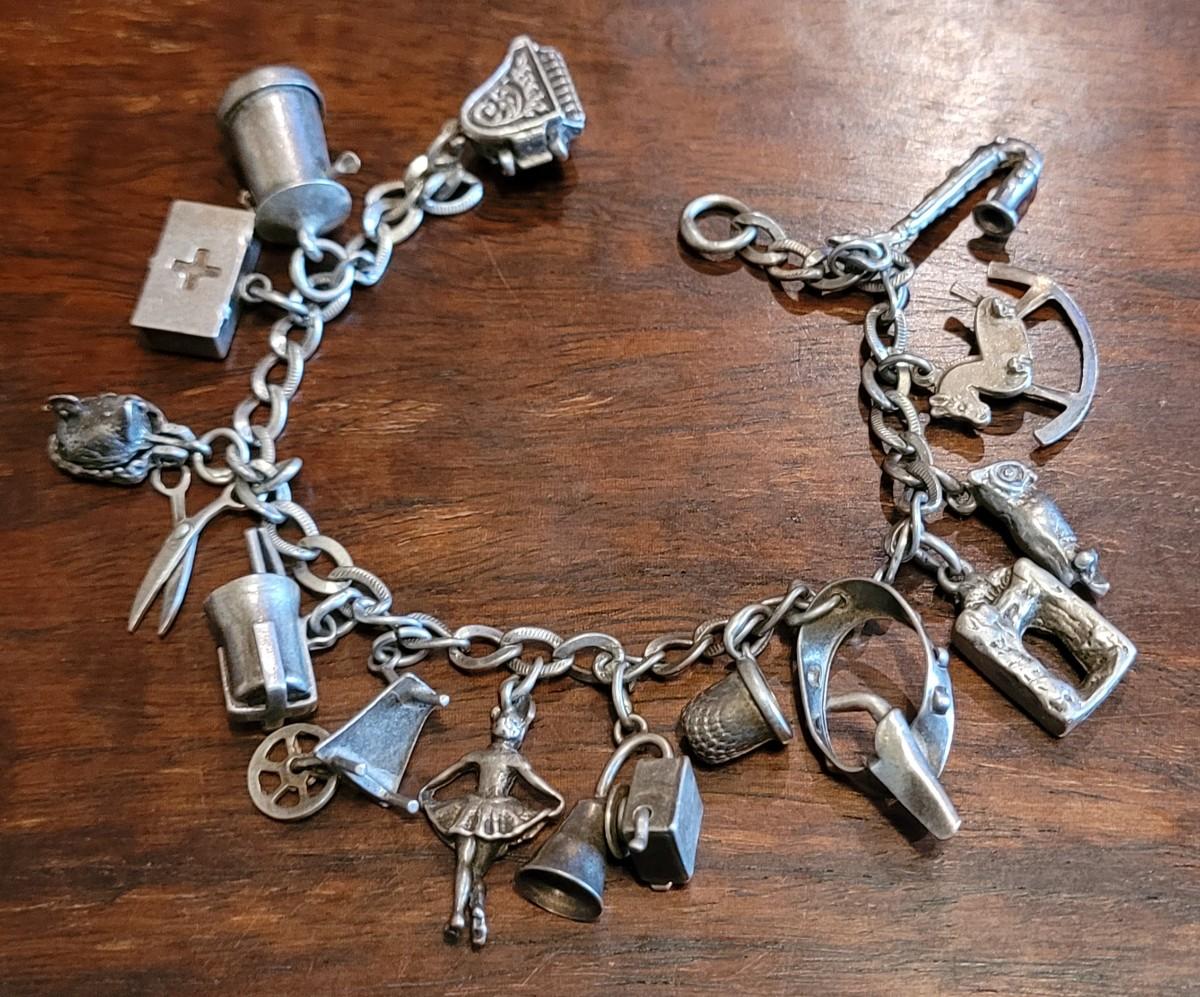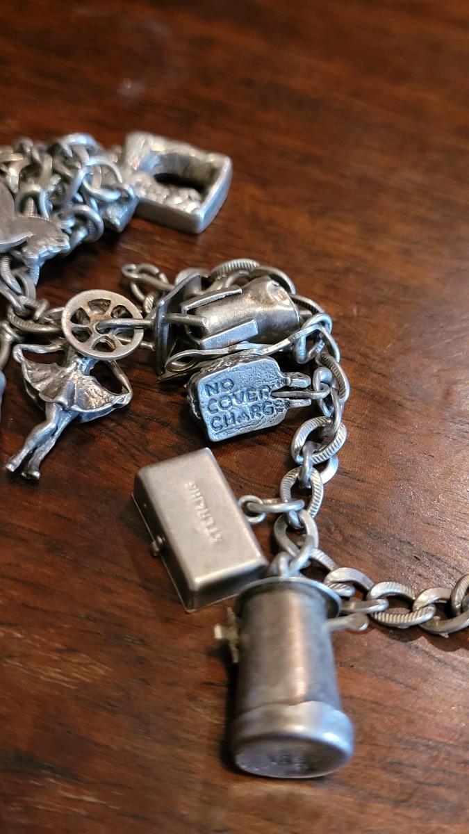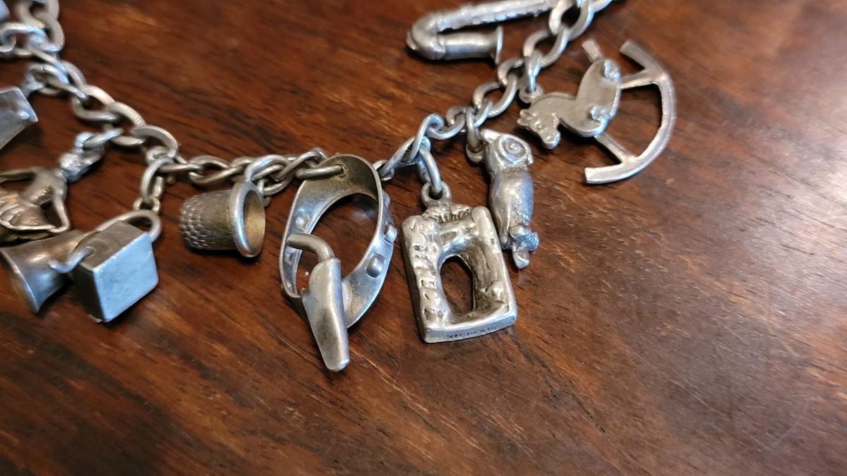 Charms include a couple "Box" Charms. Many of the Charms are marked Sterling.