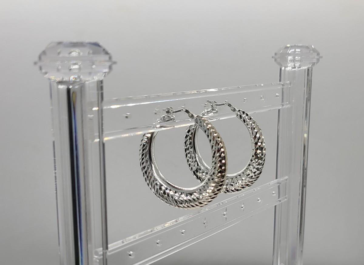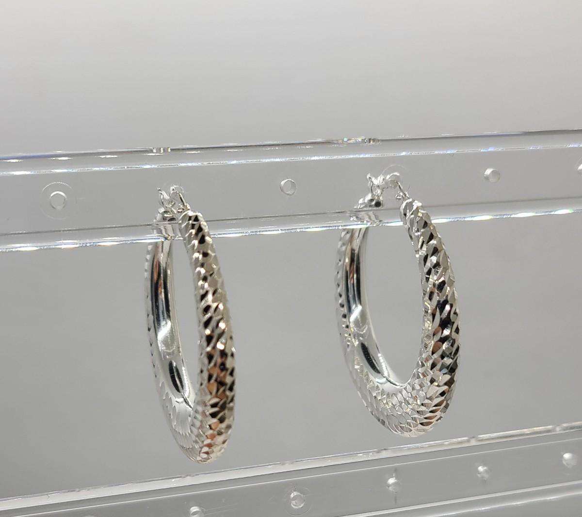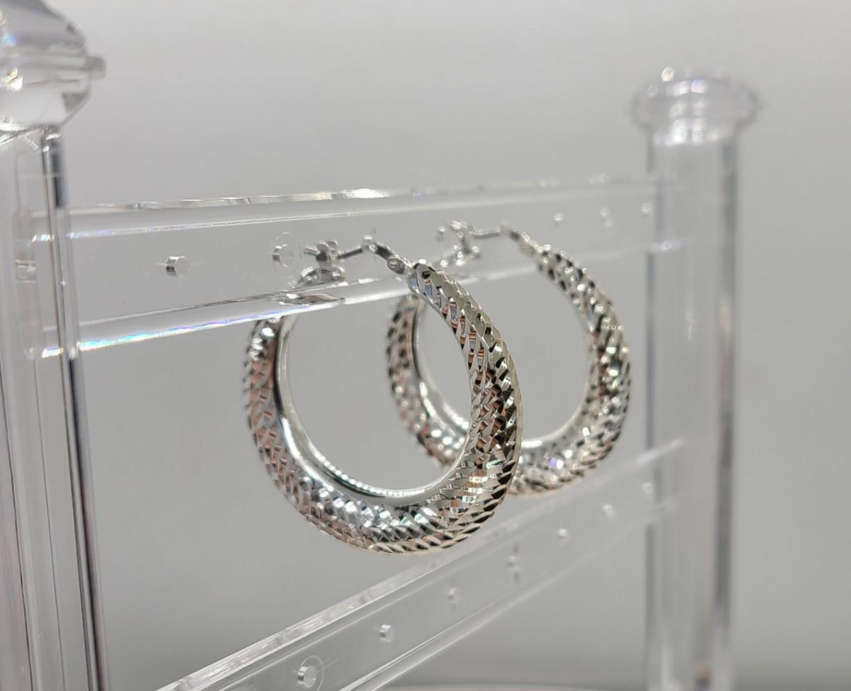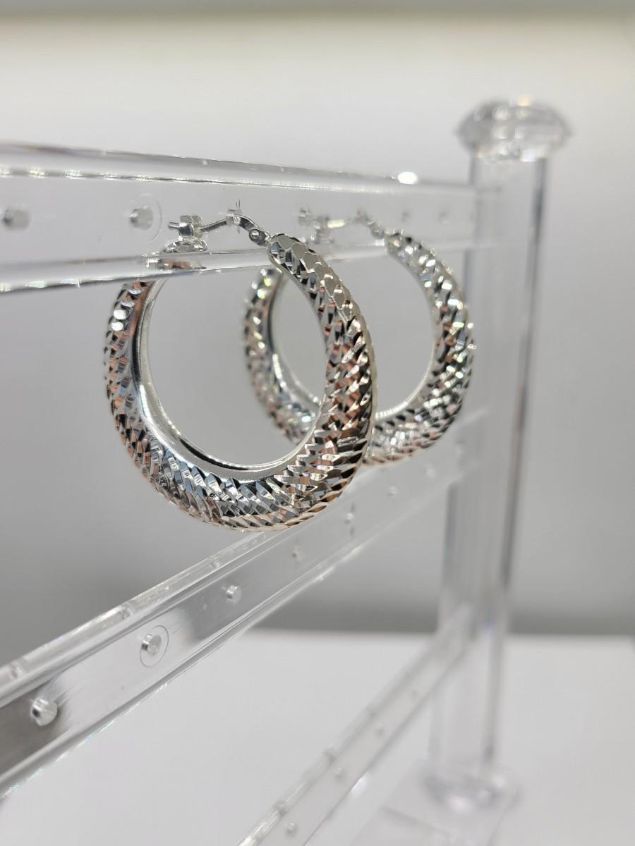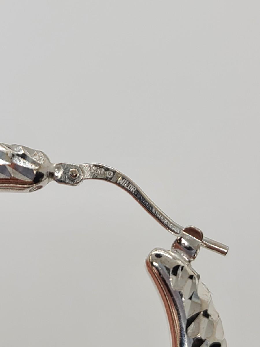 Lot 38: Ultrafine Milor Italy 950 Sterling Silver textured Hoop Earrings NEW