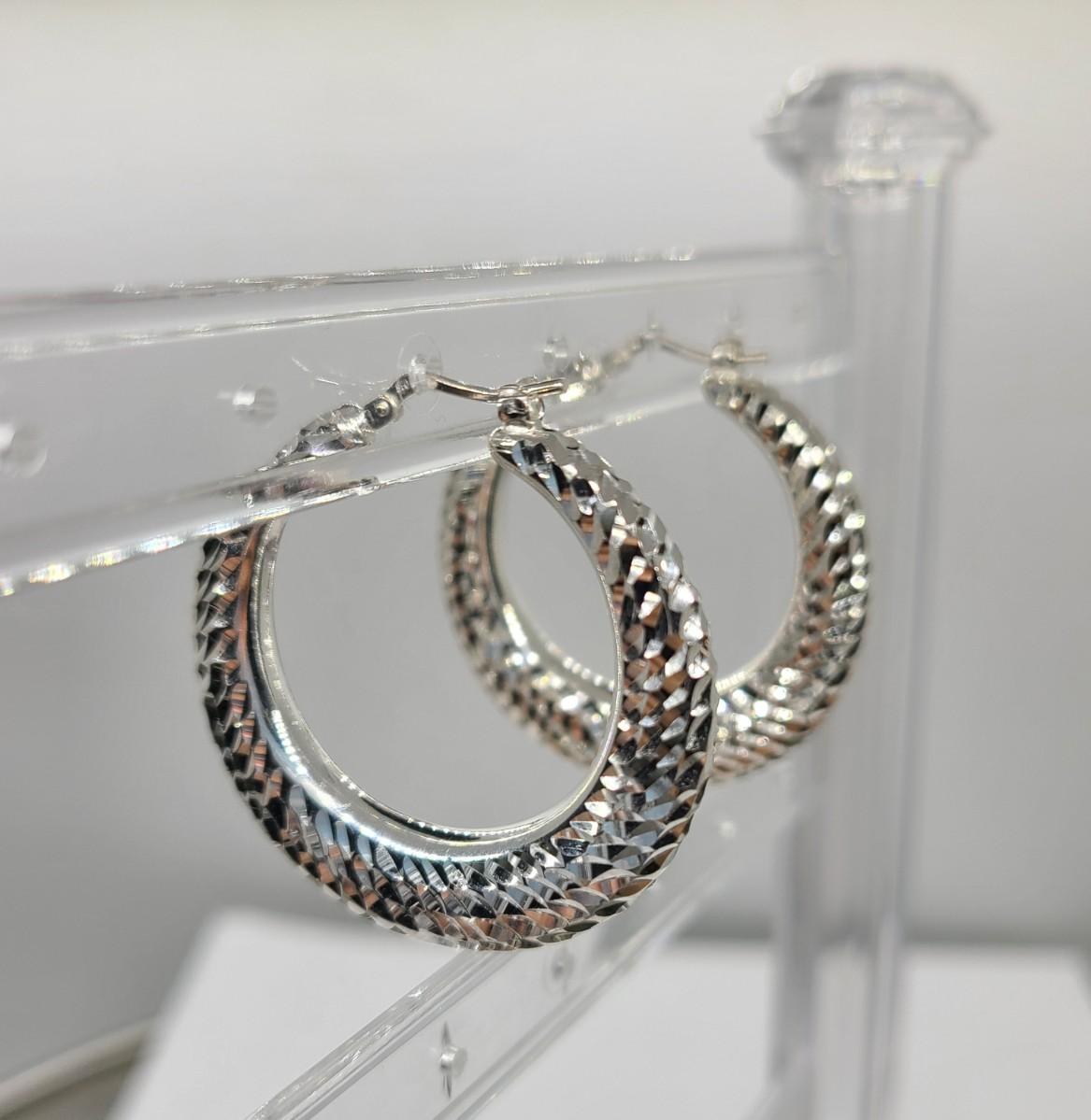 Milor Italy (950) ultrafine textured sterling silver hoop earrings. New. Perfect gift.