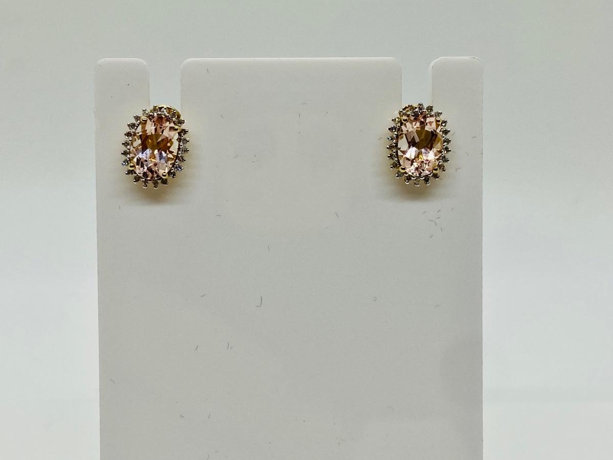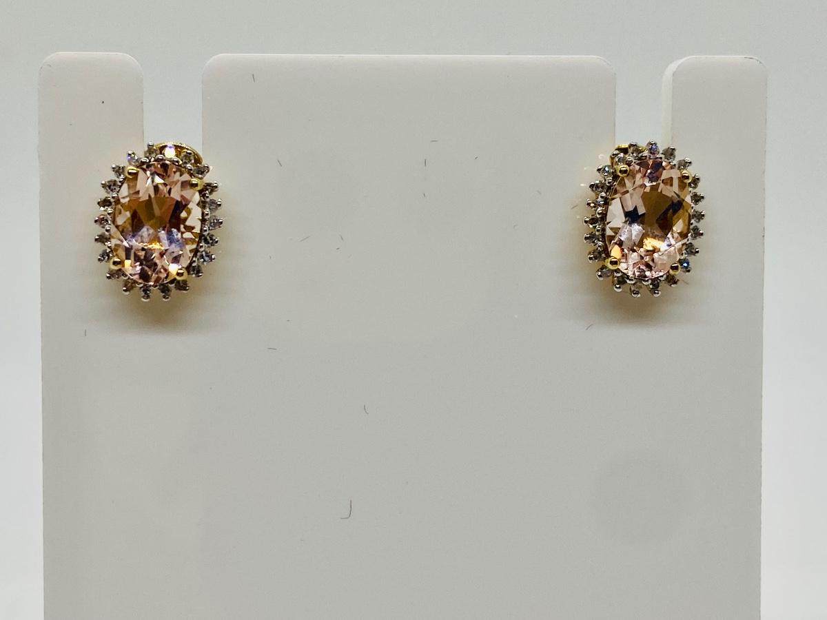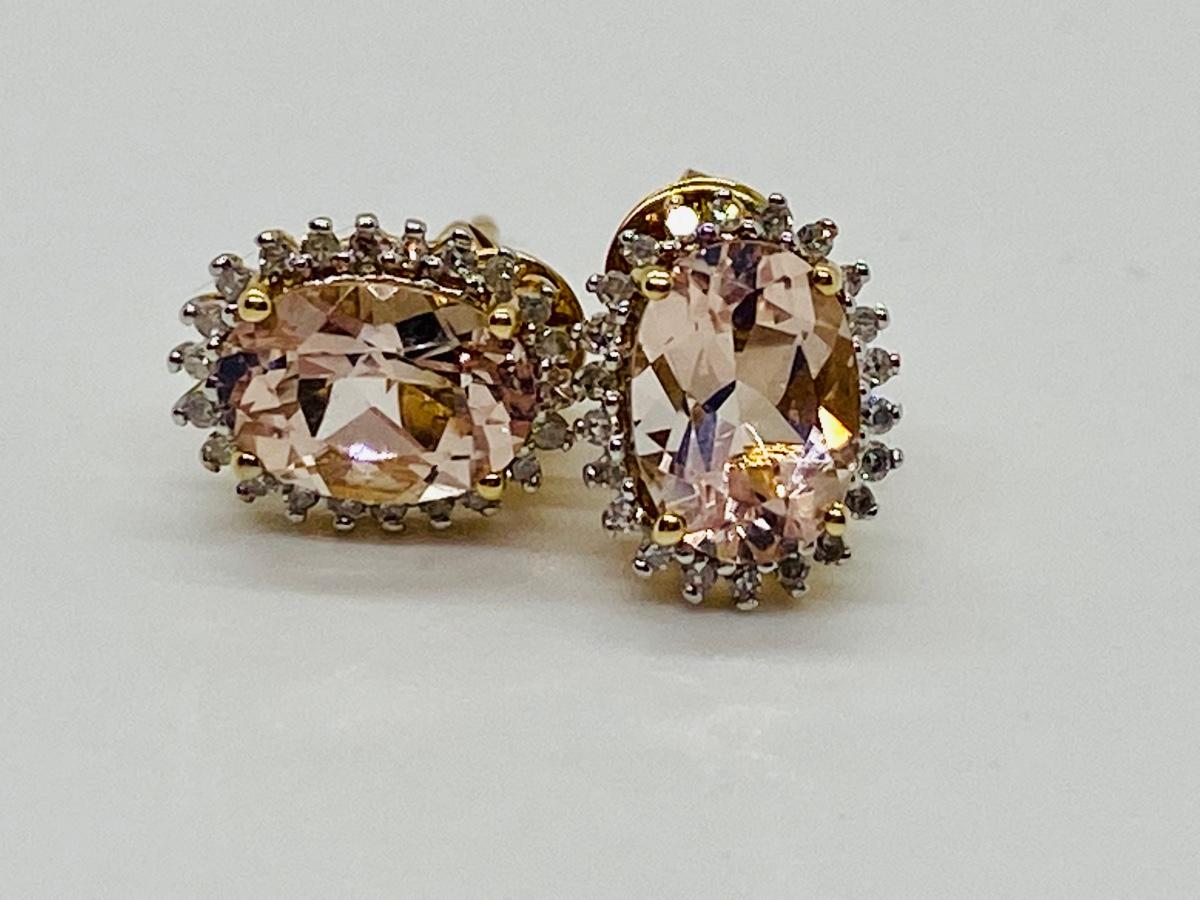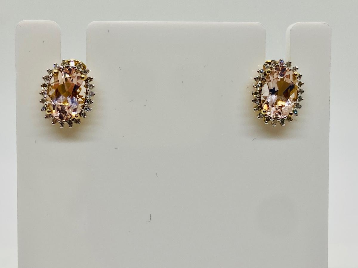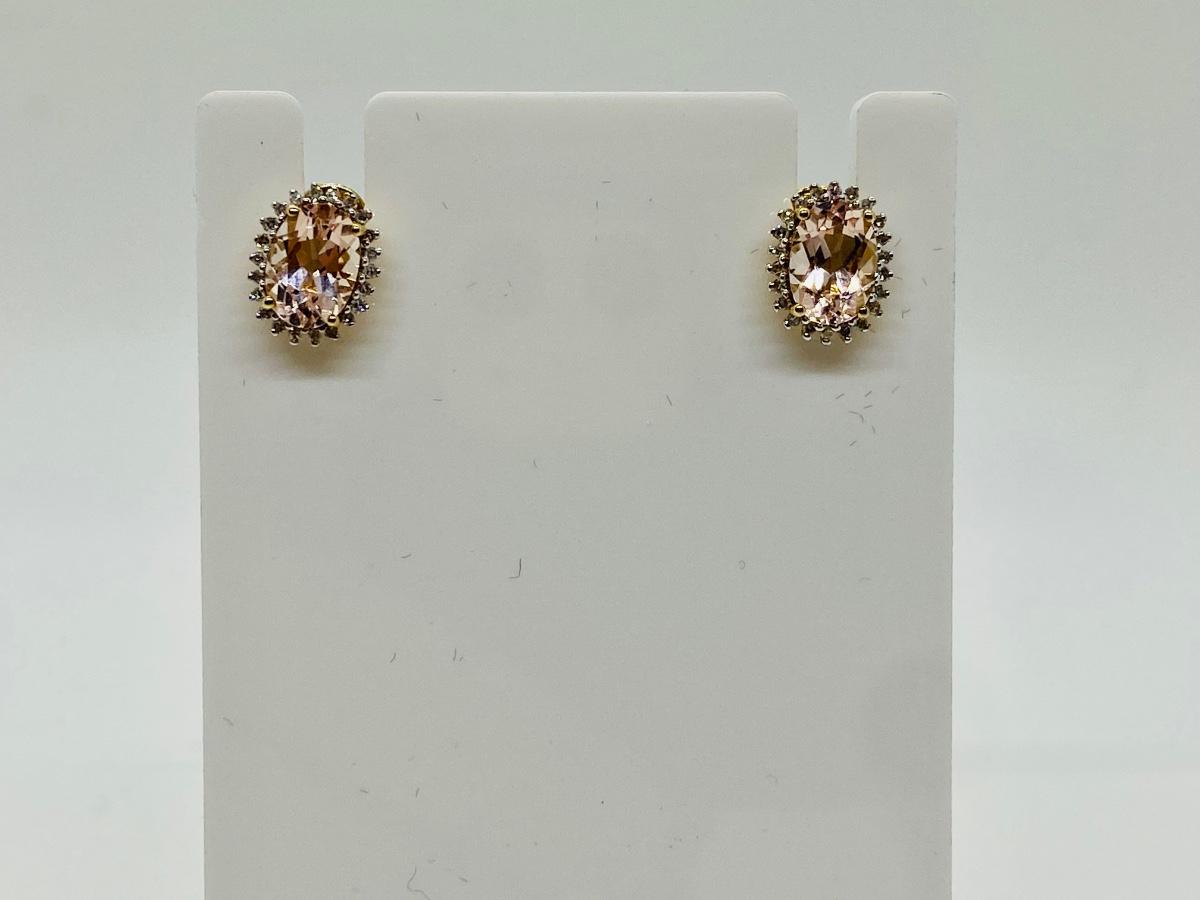 Lot 38: 14k Morganite Gemstone Pierced Earrings w/ Halo Diamond Chips
