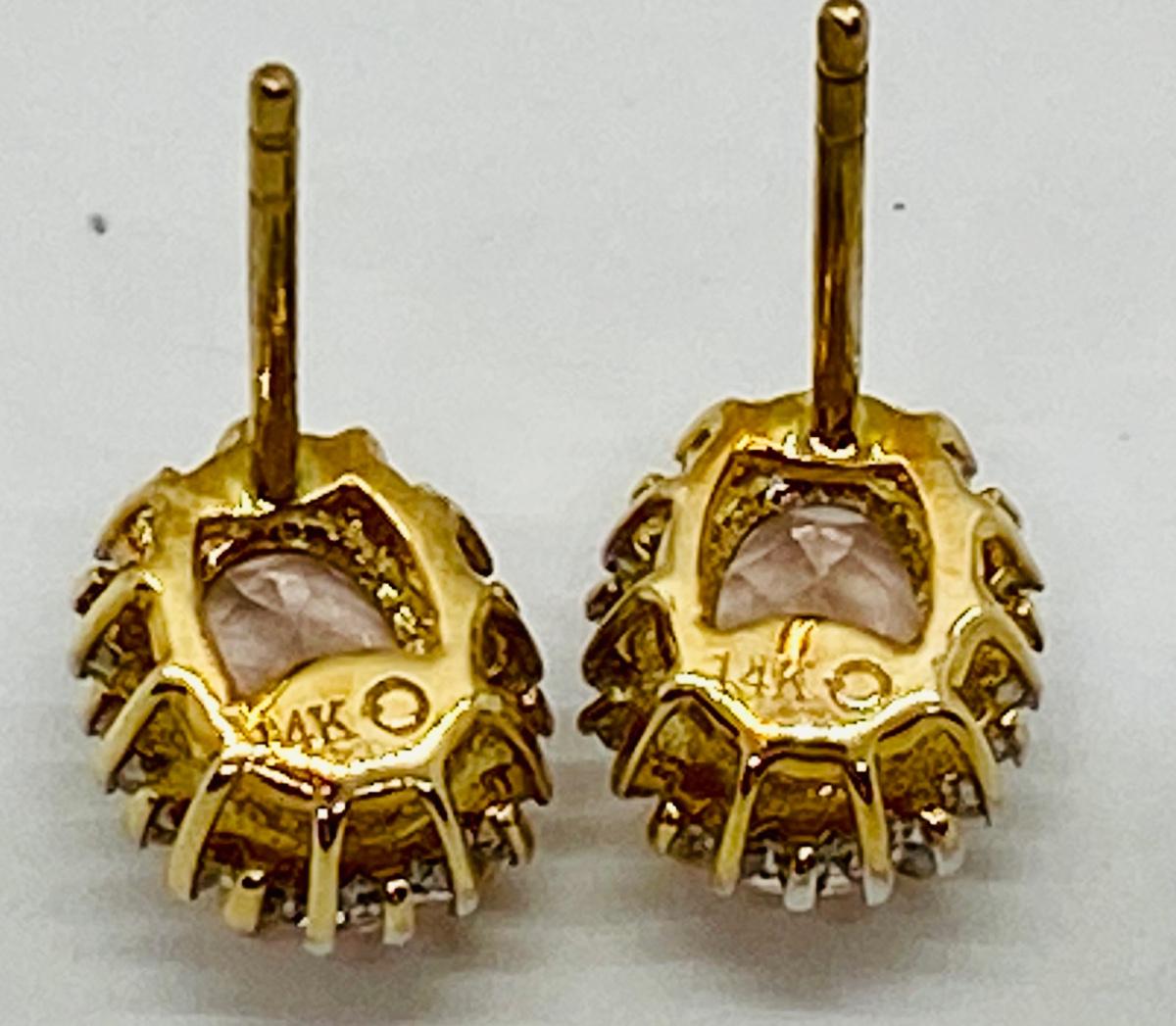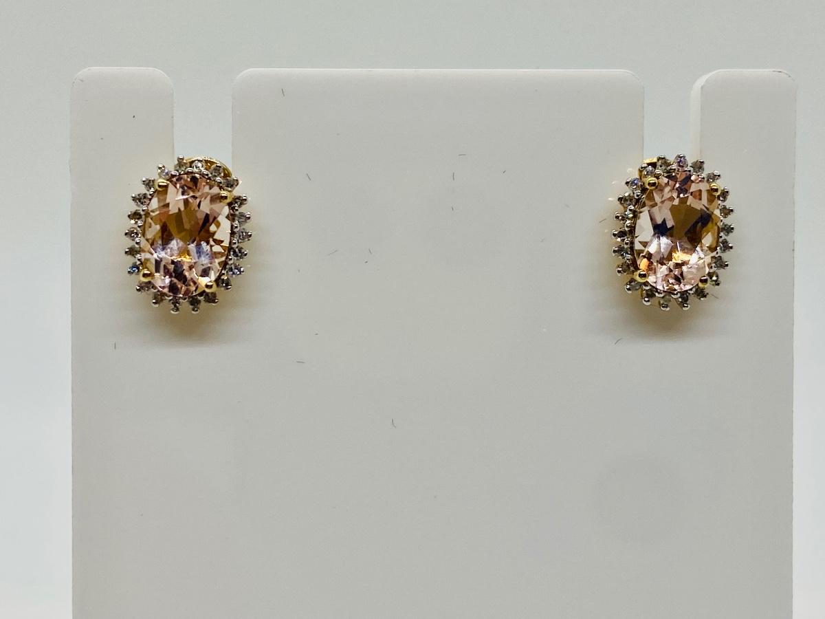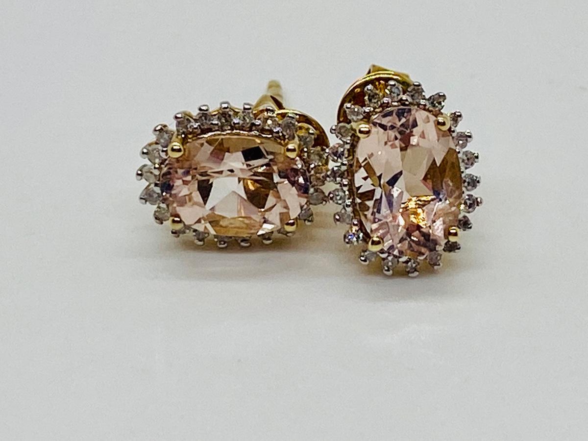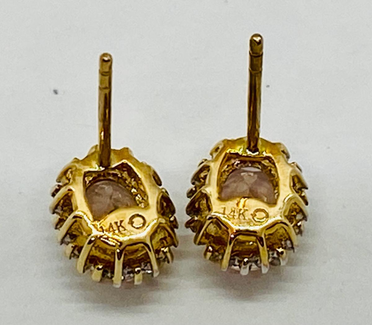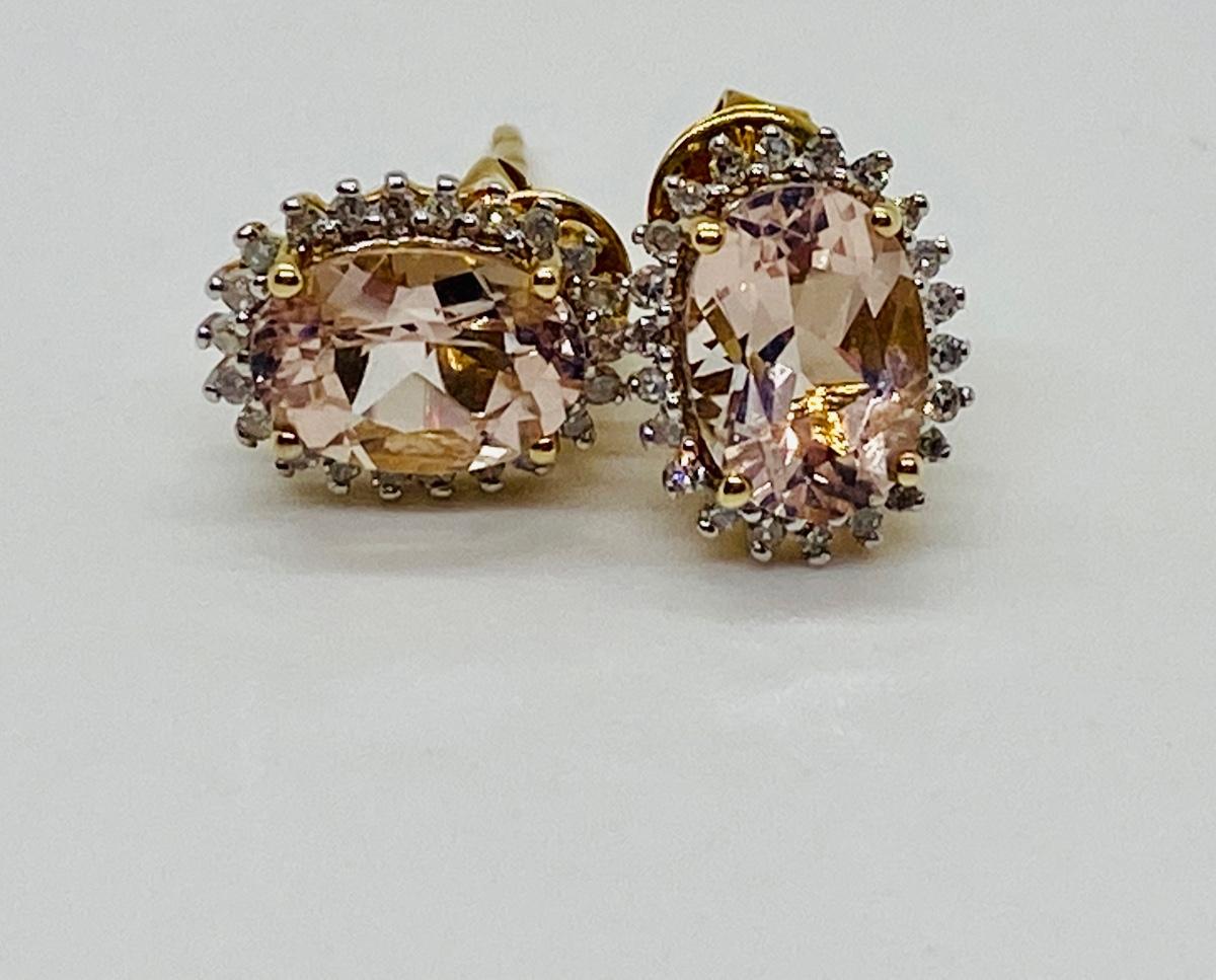 Lot 38: 14k Morganite Gemstone Pierced Earrings w/ Halo Diamond Chips