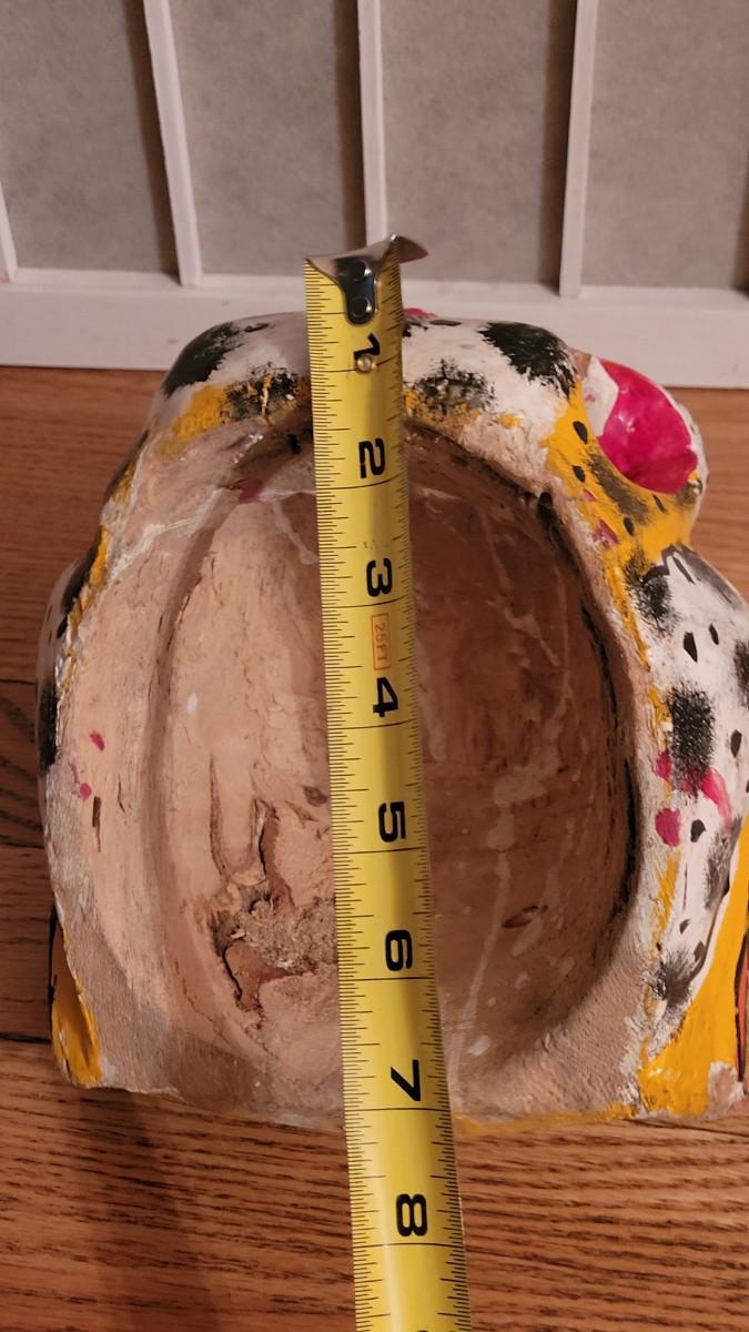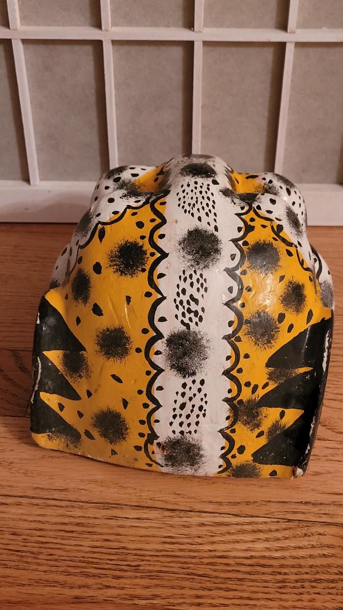 This is a decorative mask that can hang or sit on a shelf. Light weight