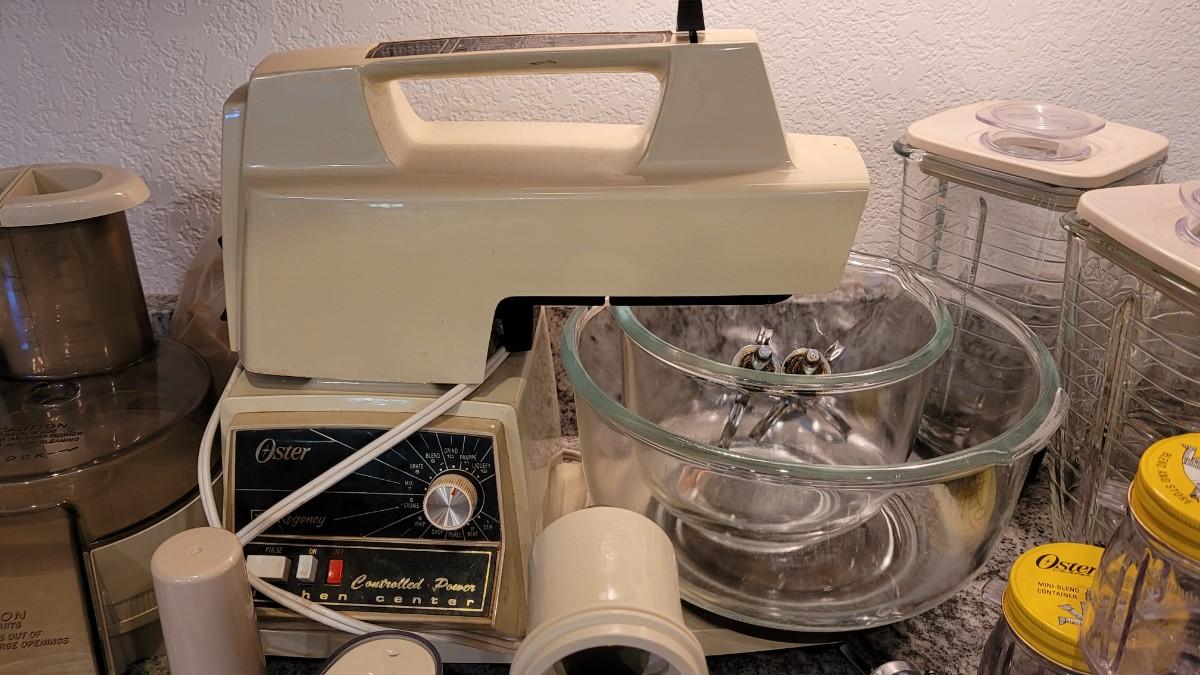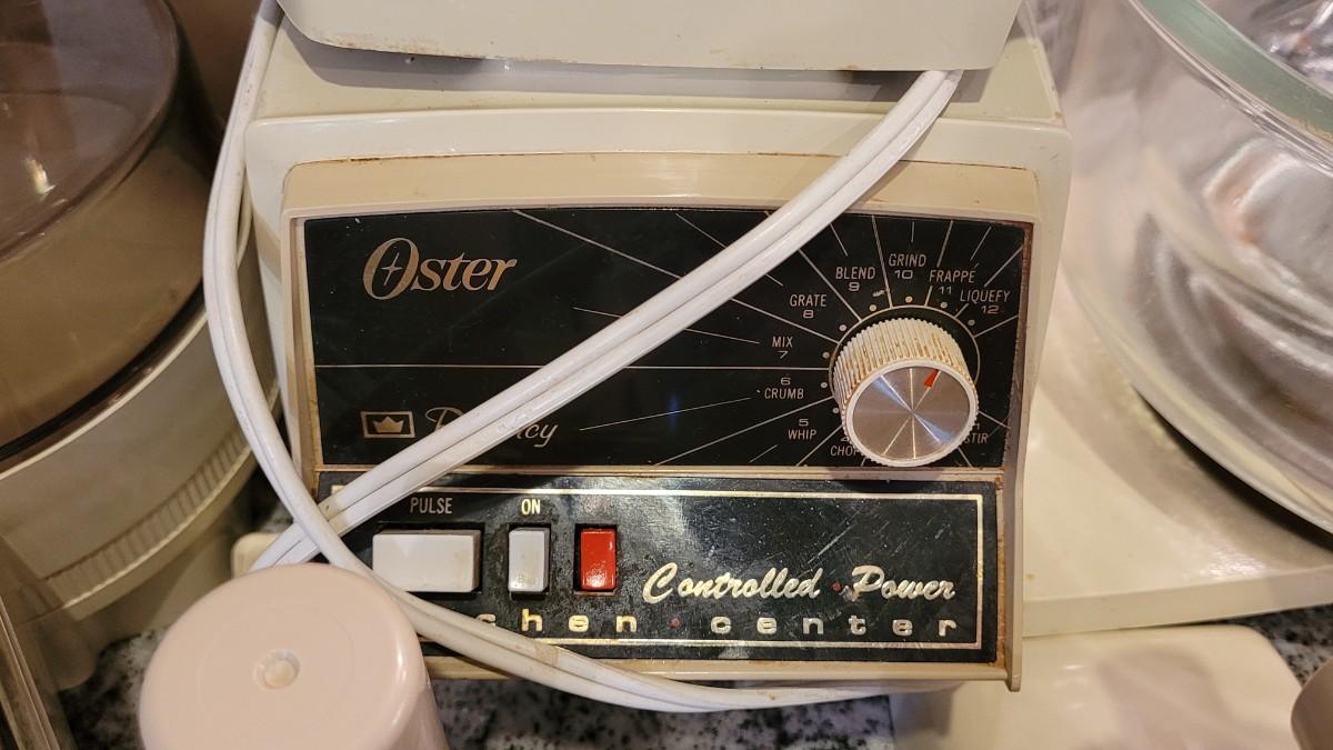 Lot 38: Vintage OSTER Kitchen Center with Many Attachments