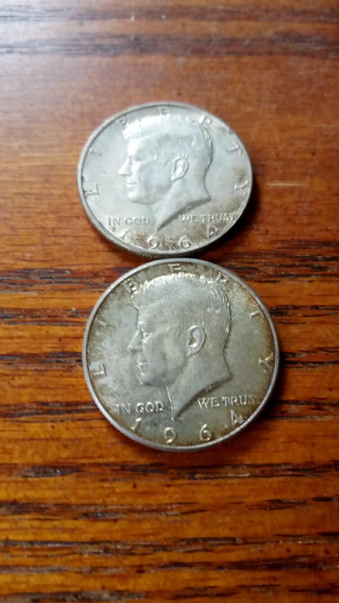 LOT 38 TWO SILVER 1964 KENNEDY HALF DOLLARS