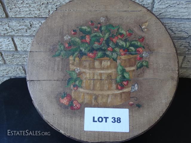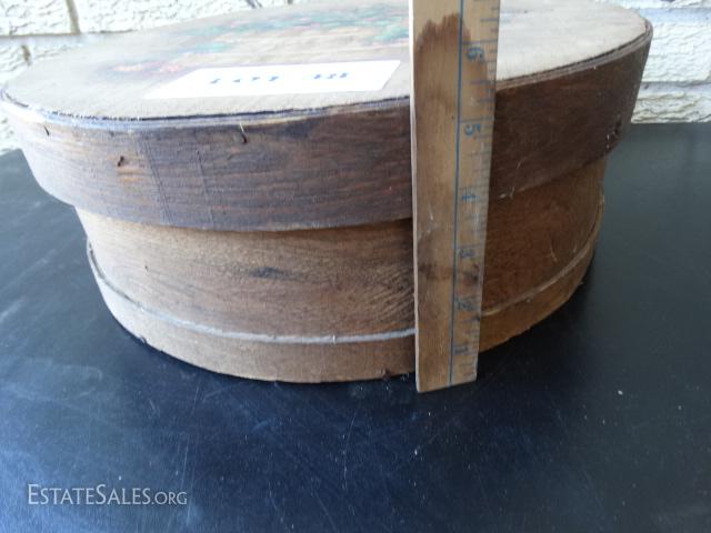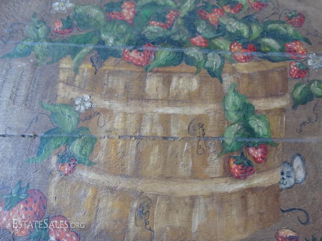 Round wooden box - folk art, strawberry's in a basket w/mice