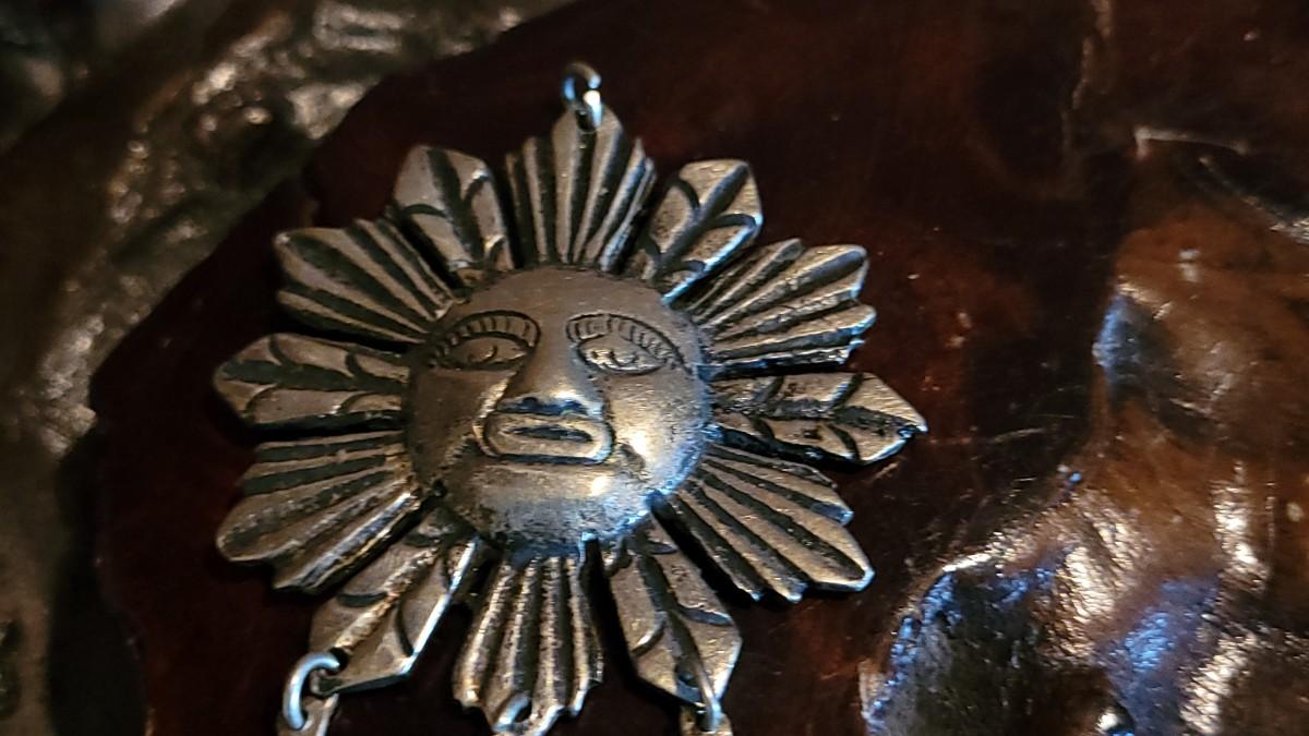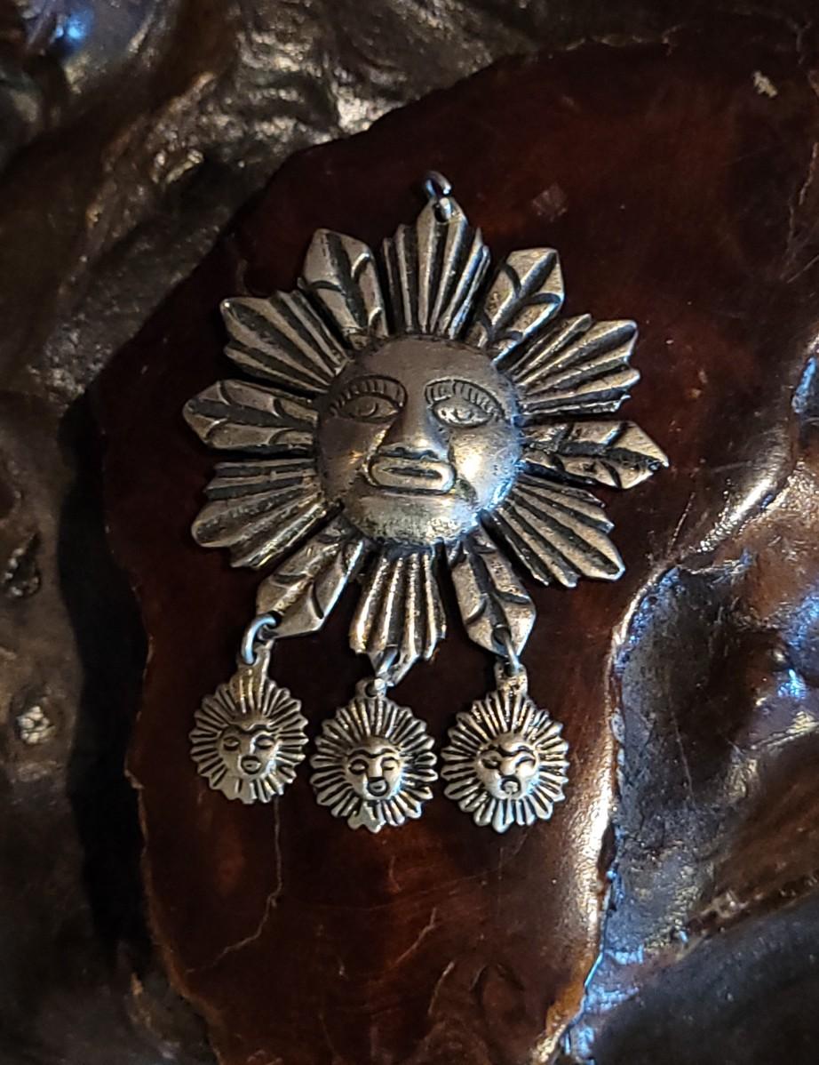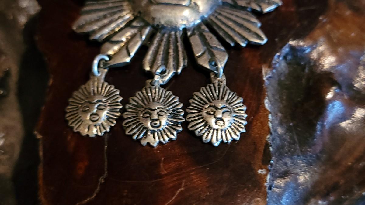 Heavy, Artist Made Pendant with 3 small Suns dangling from the large Sun