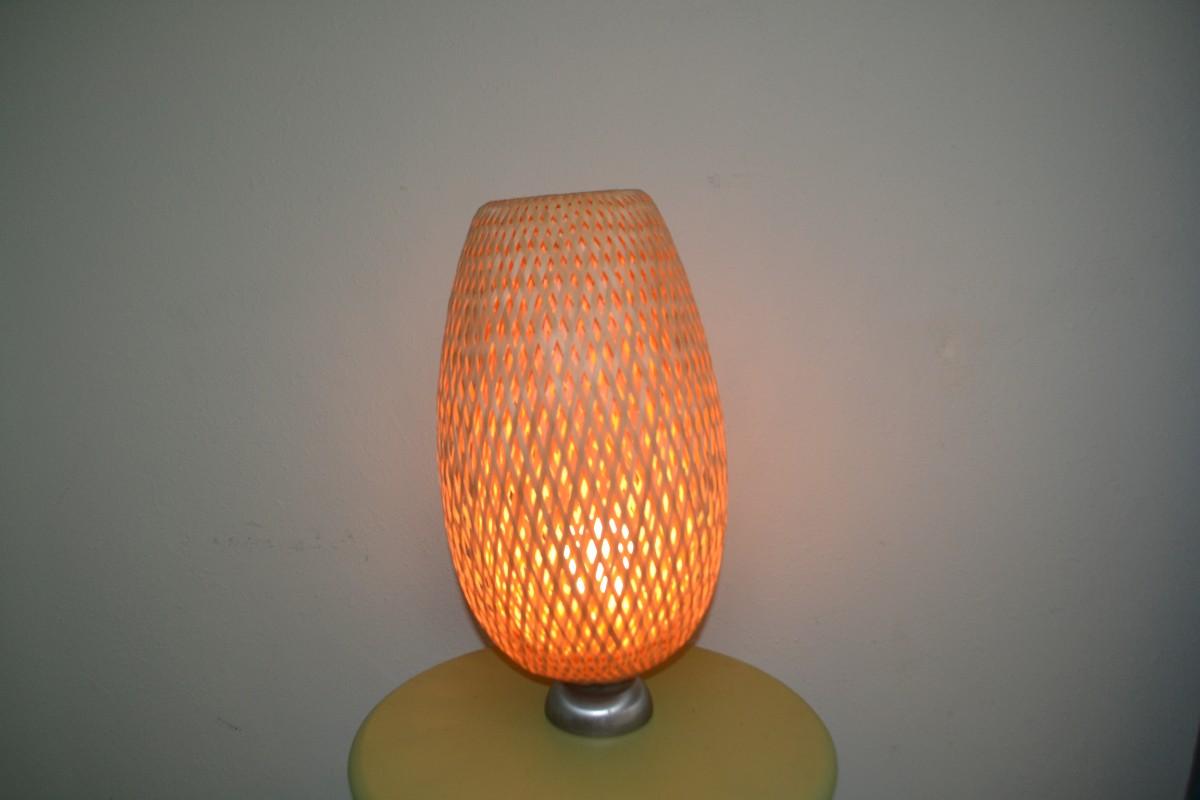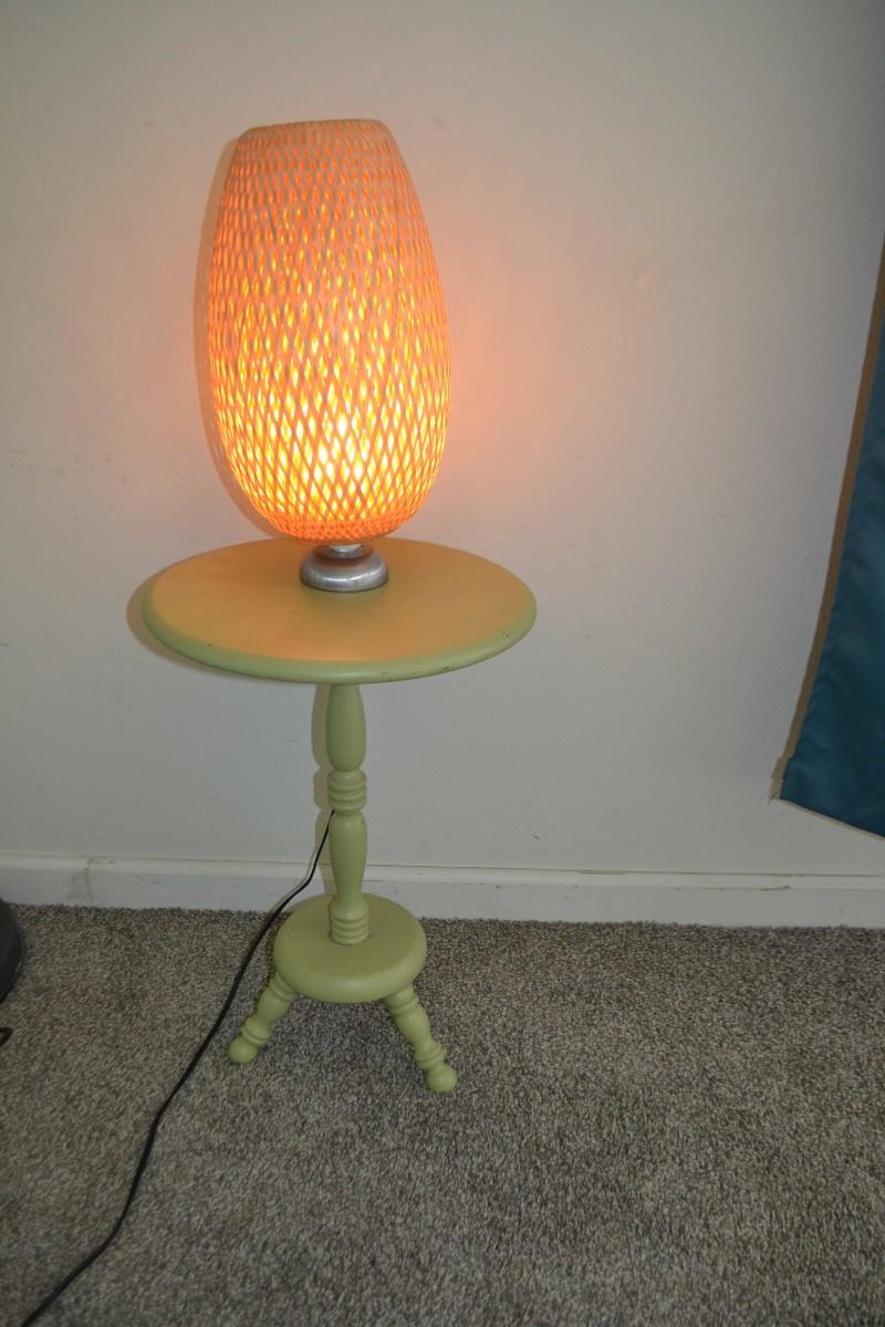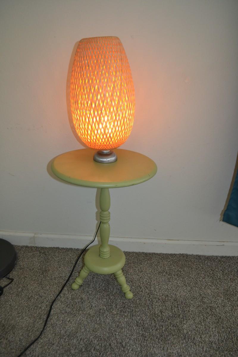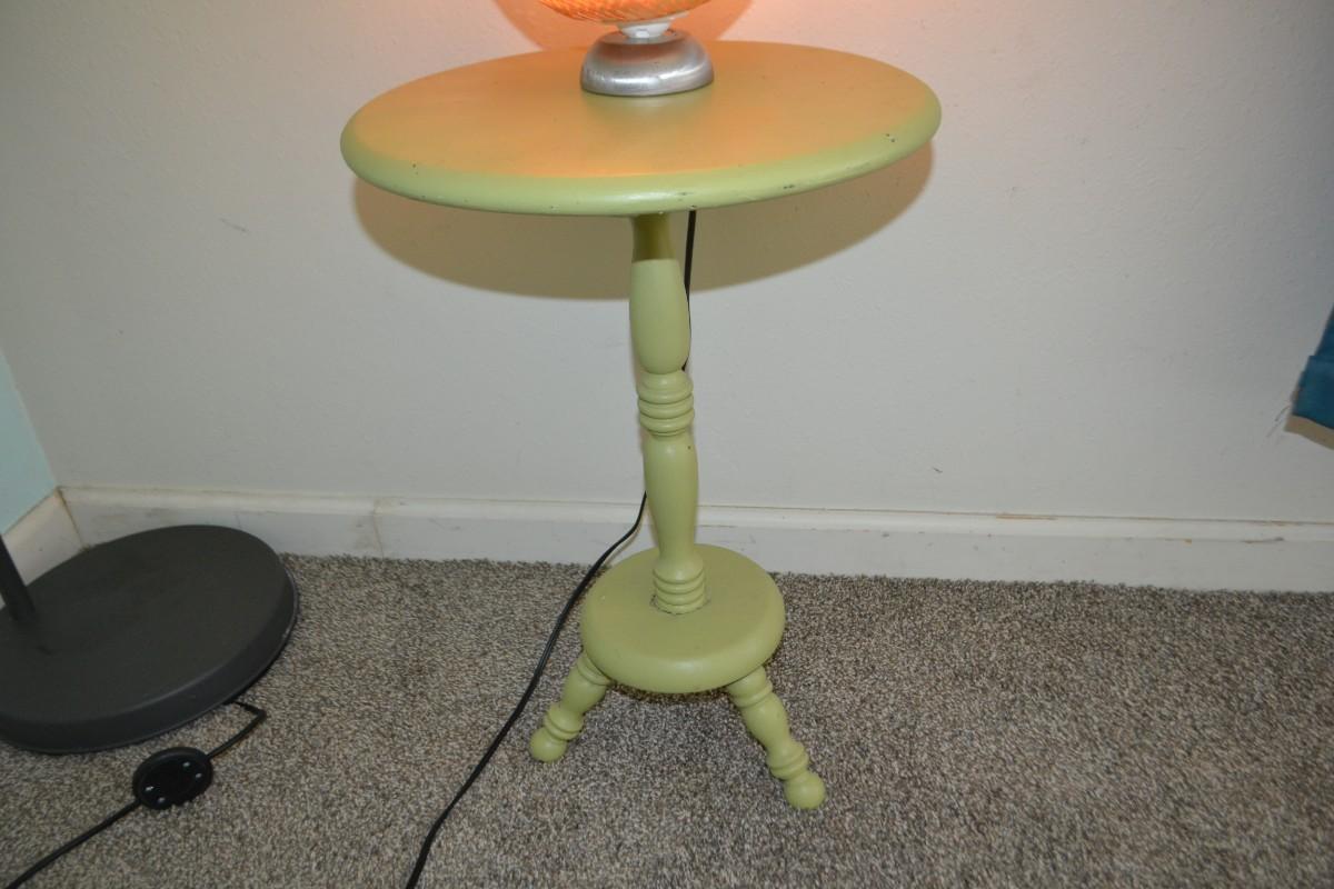 LOT 38. SMALL WOOD SIDE TAABLE AND LAMP