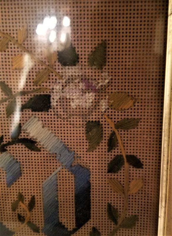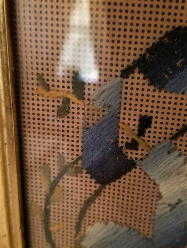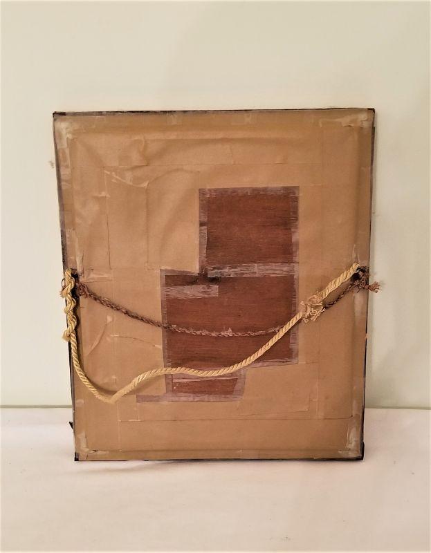 Items like this used to grace every middle class or "genteel" parlor in the Victorian era. Carved wooden frame, paper punch motto worked by the lady of the house with wool thread. Color still good. She missed a few spots (as shown). Still a great example of this type of craft. Measures 14.5" x 12". Circa 1890.