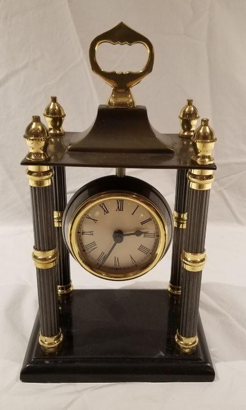 Vintage Bombay Company Mantle Clock. Runs on a battery. A handsome piece that measures about 6" wide and 4.3/4 " deep.