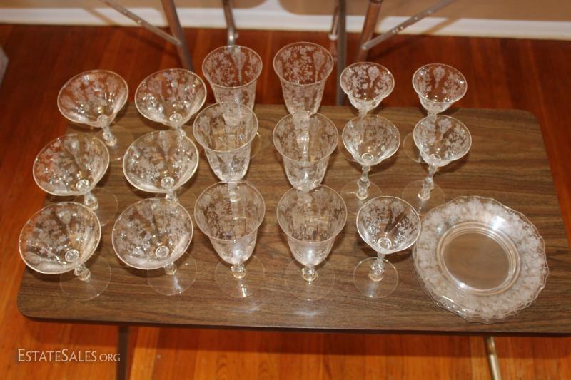 Lot #38 Cambridge Crystal 21pc Set, Rosepoint Pattern