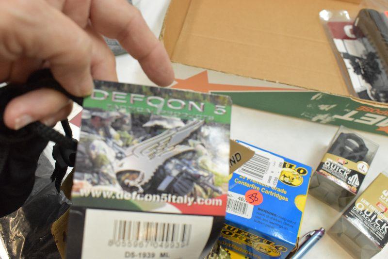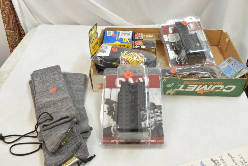 Rifle socks, grips, bandoleers, gun locks, and camo head and face protection.
