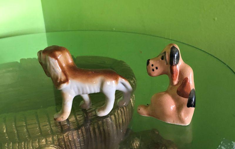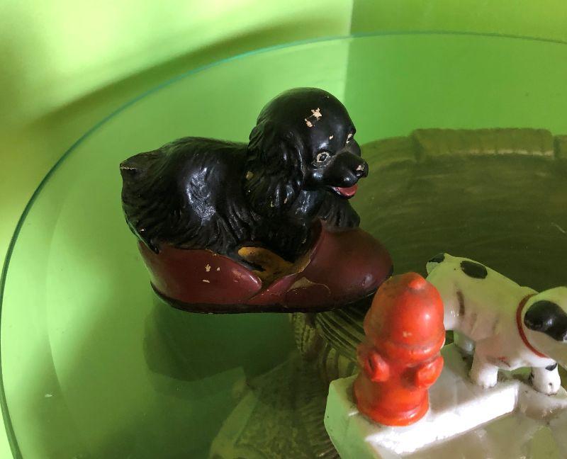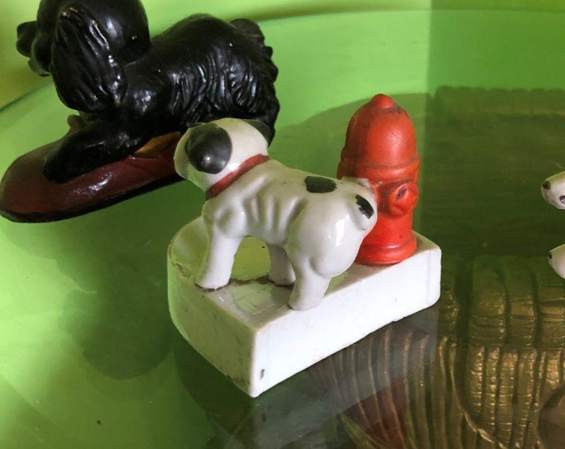 You don't have to walk these, feed these, or clean up after them! The dog with the shoe has some issues as shown in the pictures, but he's still adorable. The dog with the fire hydrant is vintage Made in Japan. They just need a good bath.