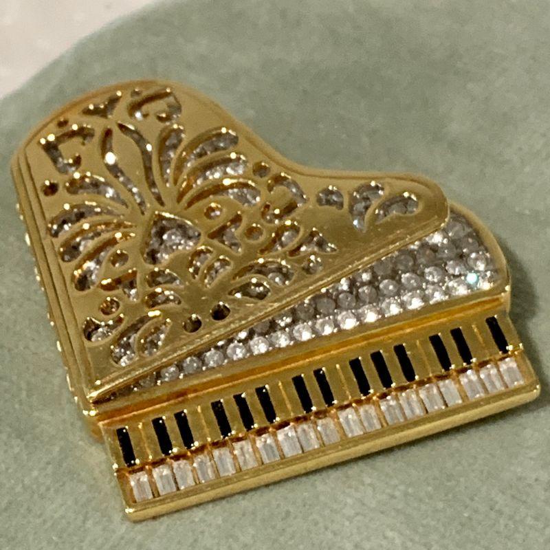 Large lapel brooch. Grand piano set with Swarovski crystals. 2 1/4"x 2 1/2"
