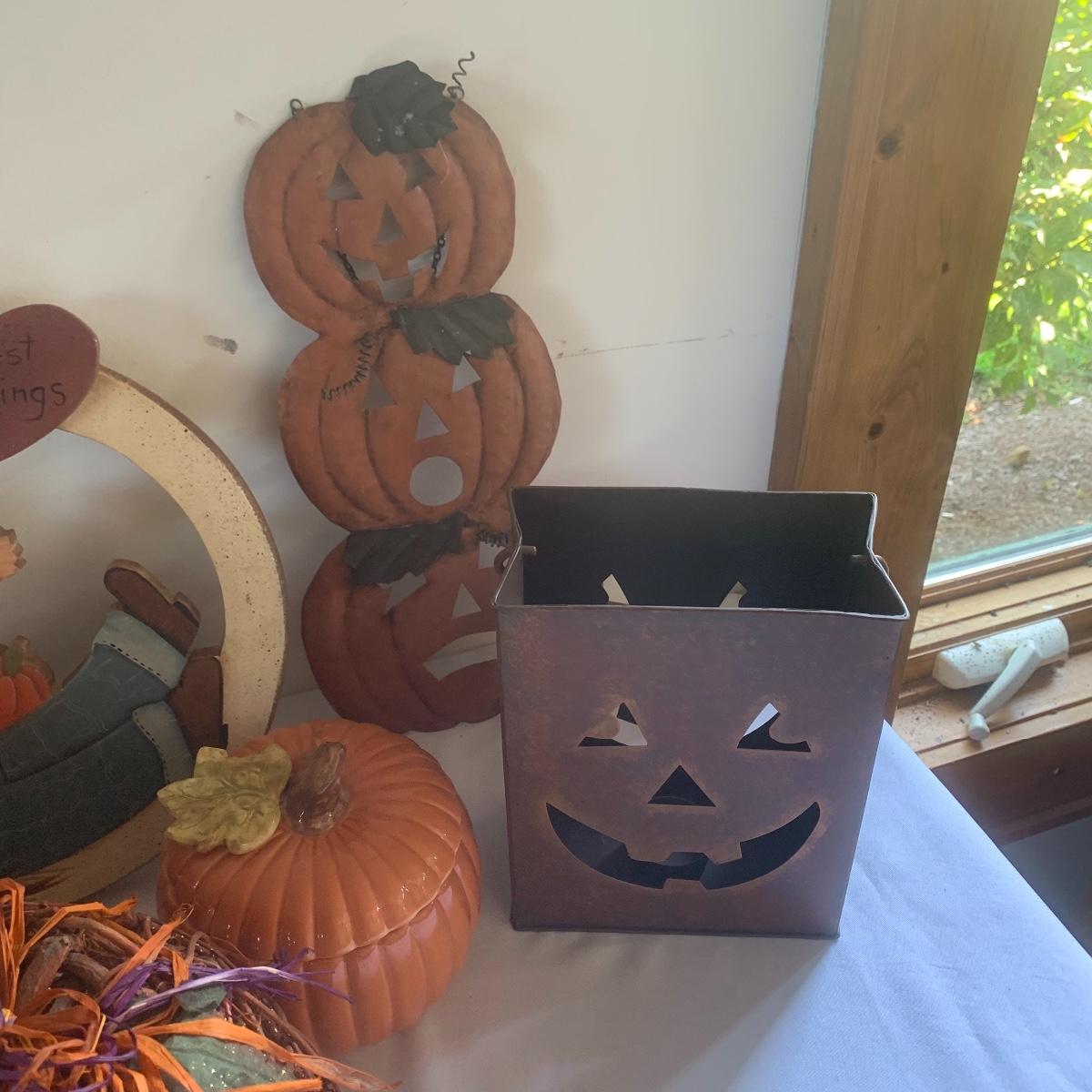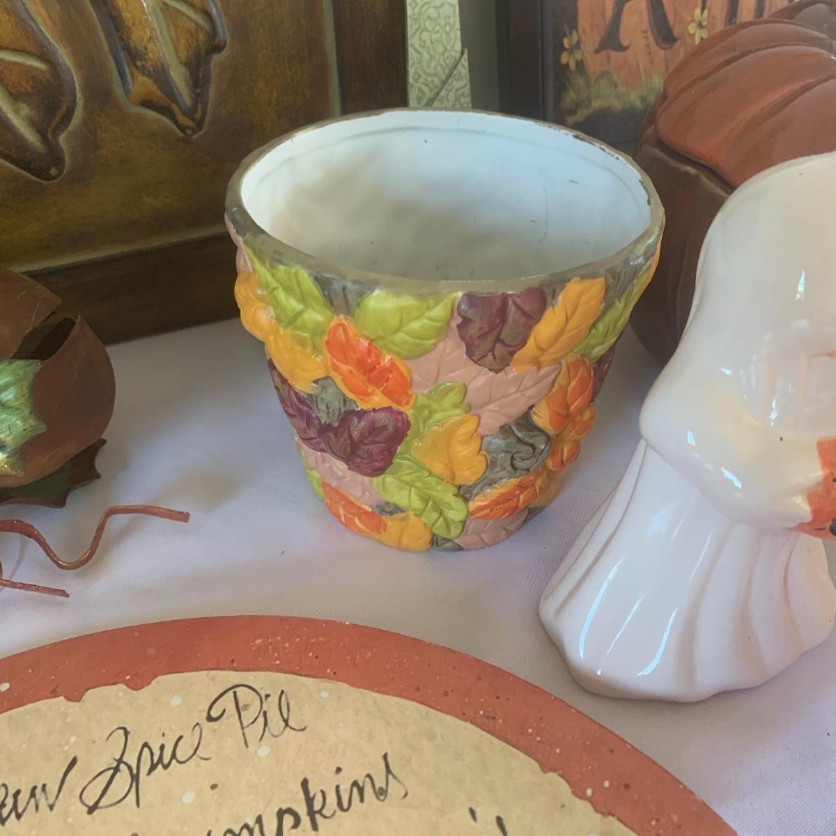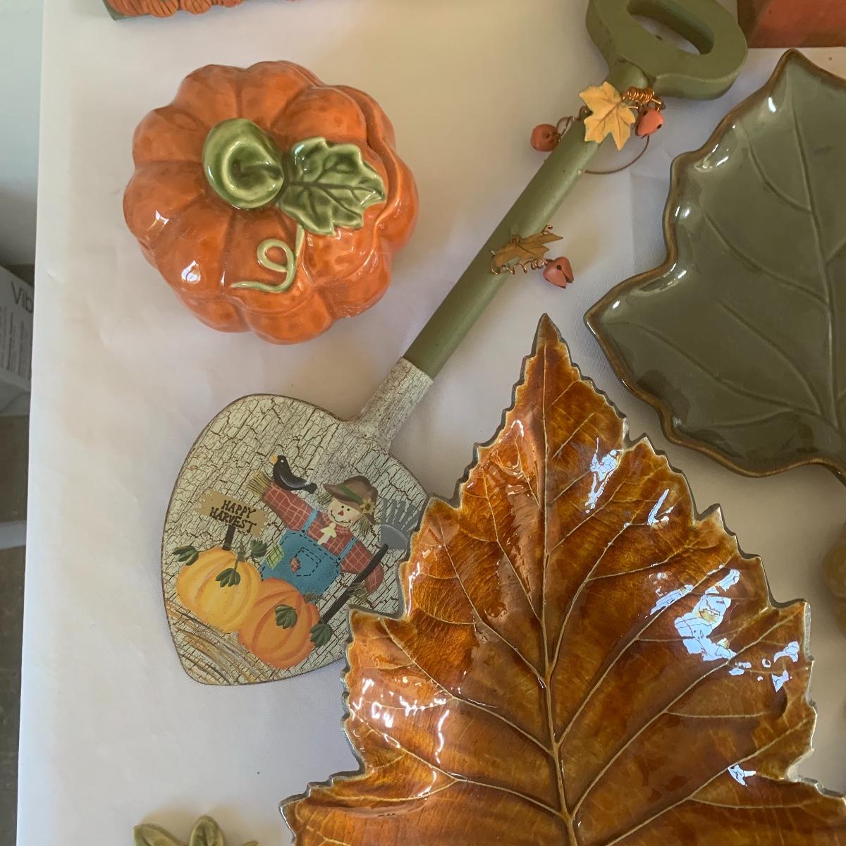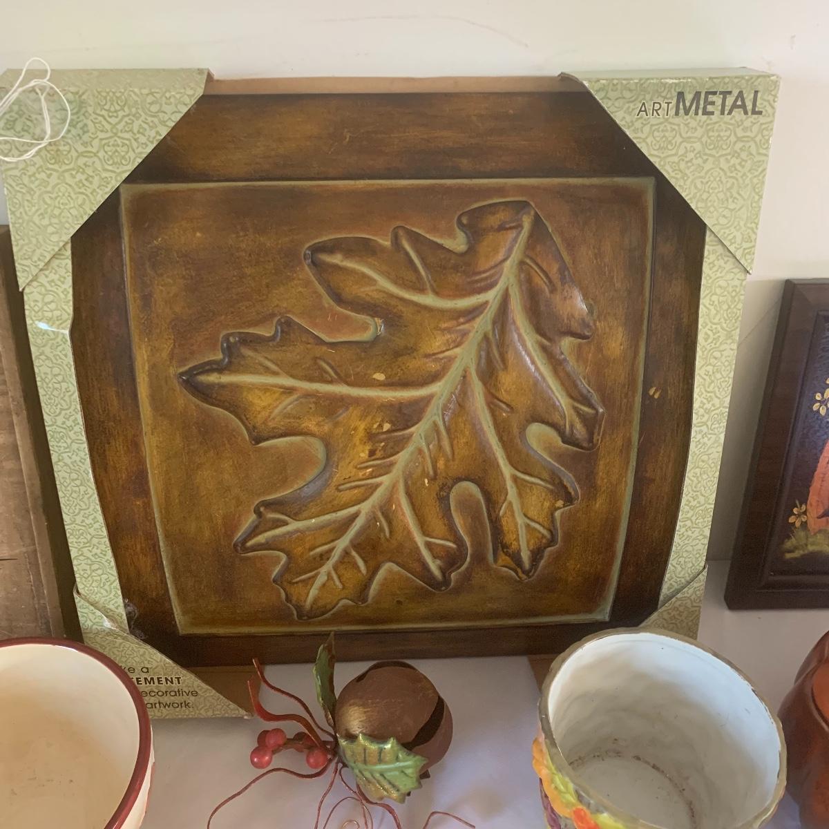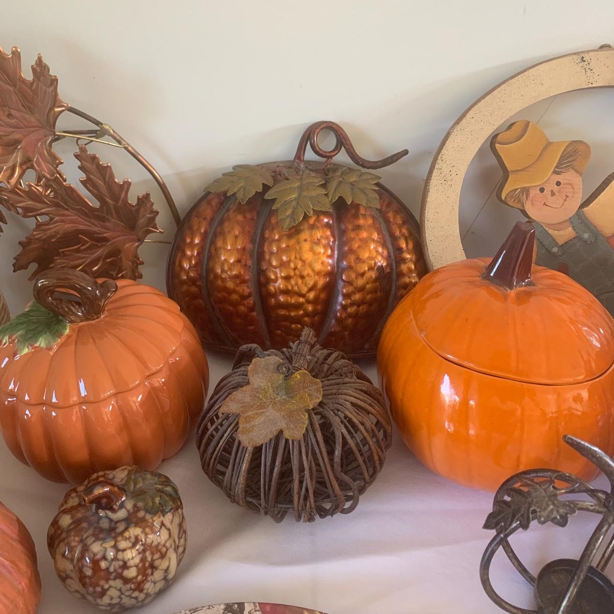 It’s Fall Y’all!! This group features all kinds of fall decorations. Included are ceramic pumpkins, wooded pumpkins, fall themed plates and trays, wall hanging, decorative yard art, leaf shaped candles, several ceramic leaf shaped bowls, and much more. If you love to celebrate the fall season, you’ve come to the right place. Local pick up only.