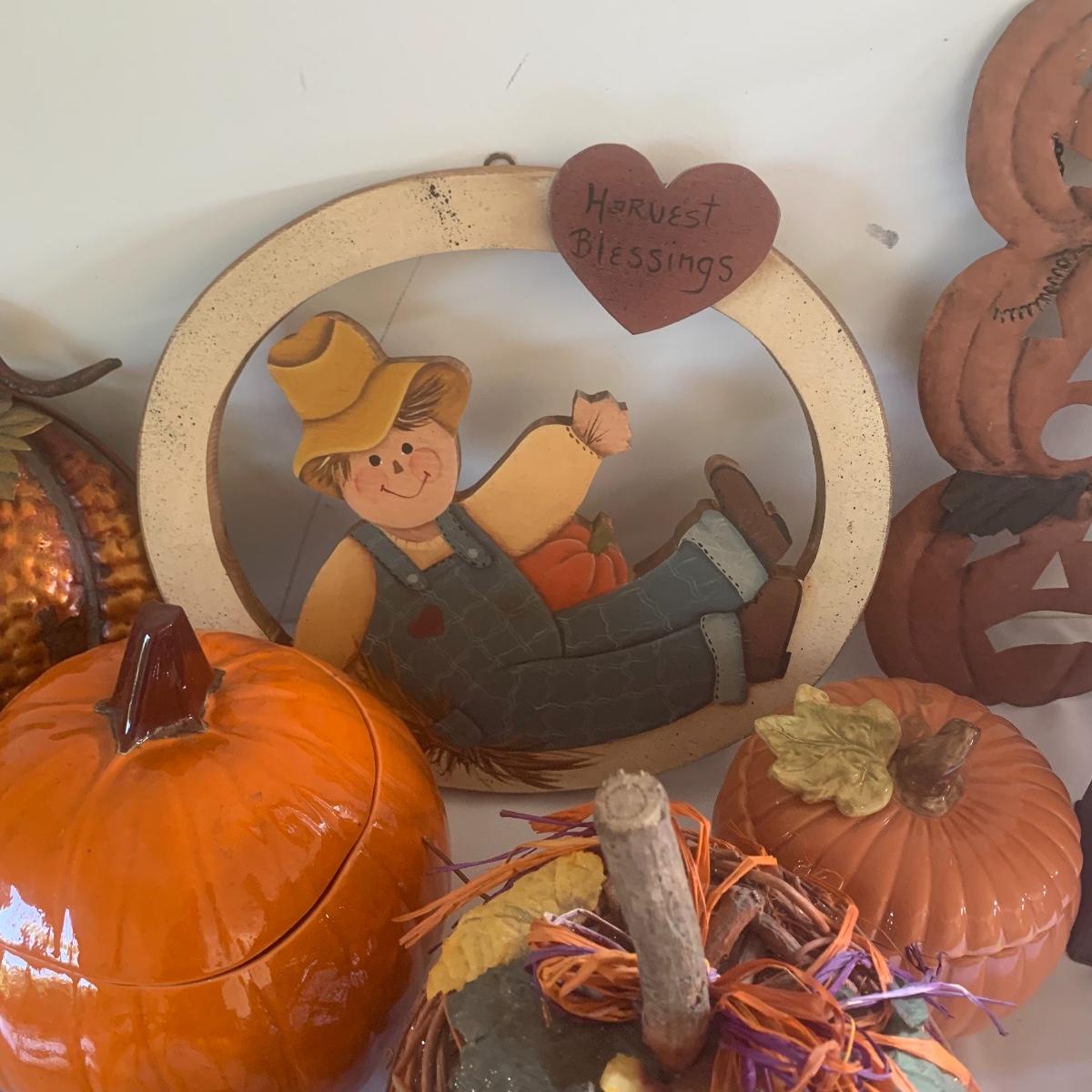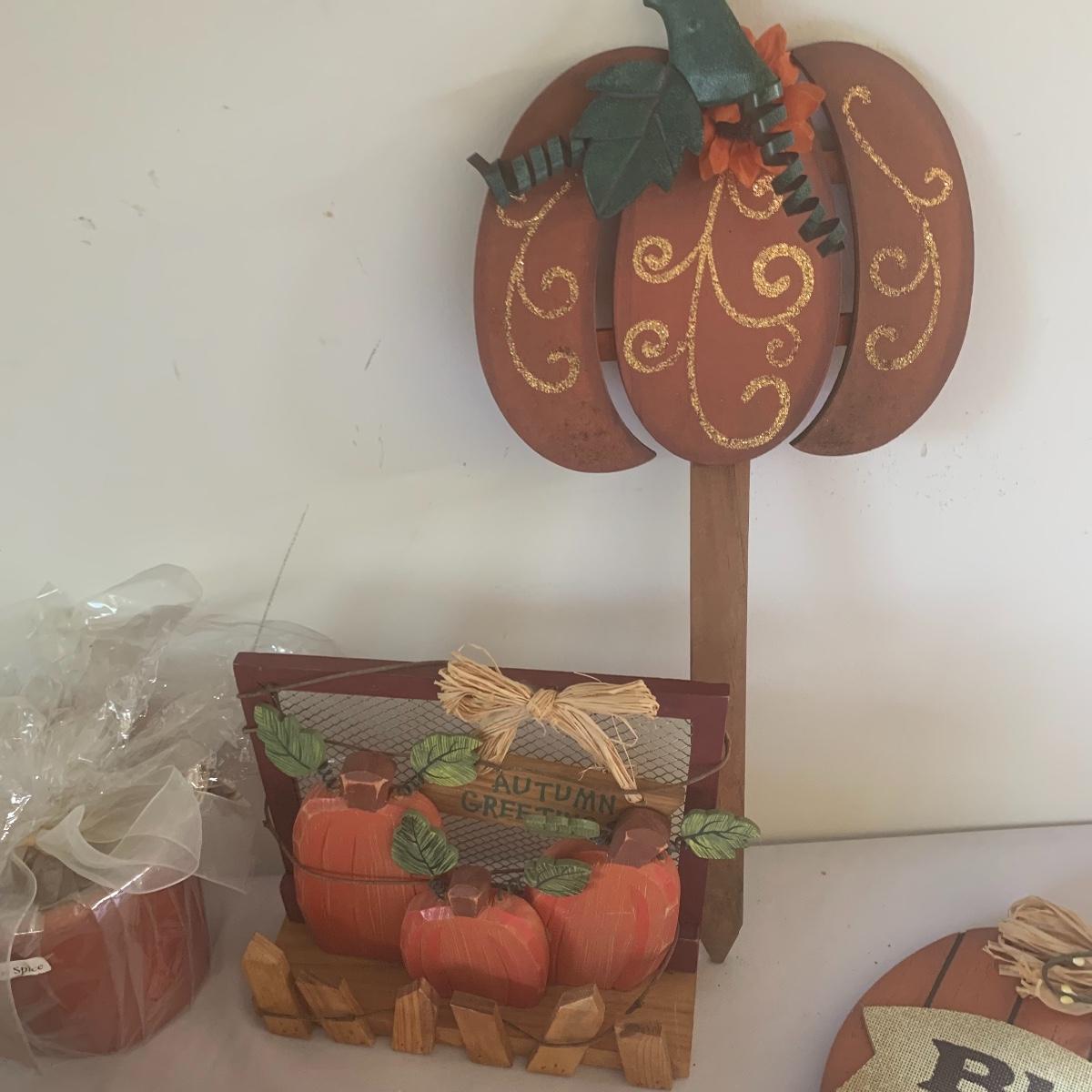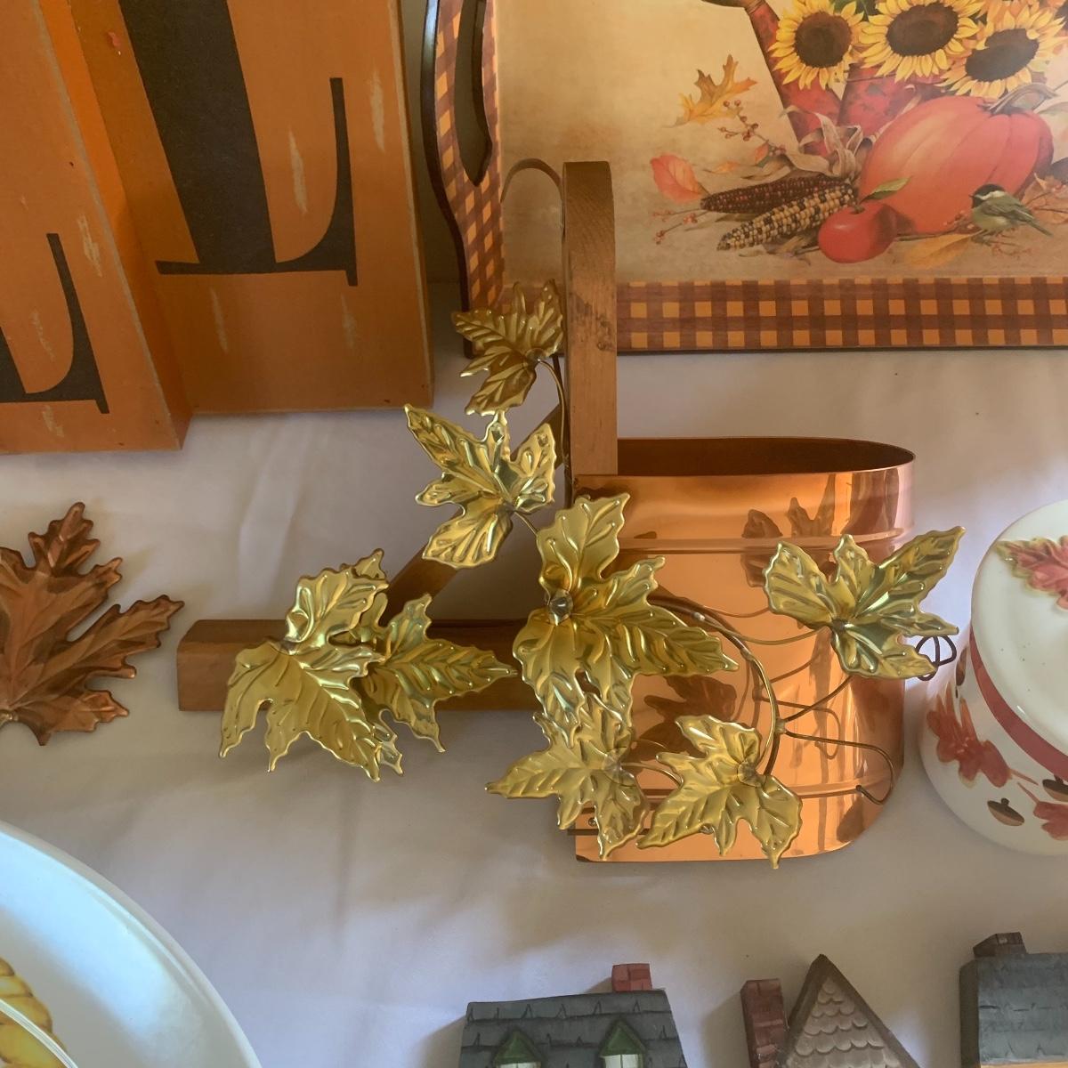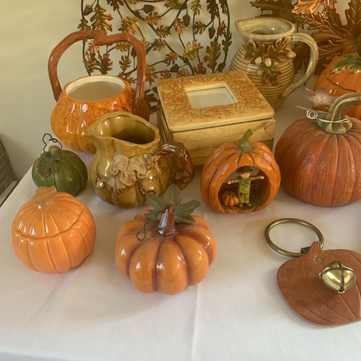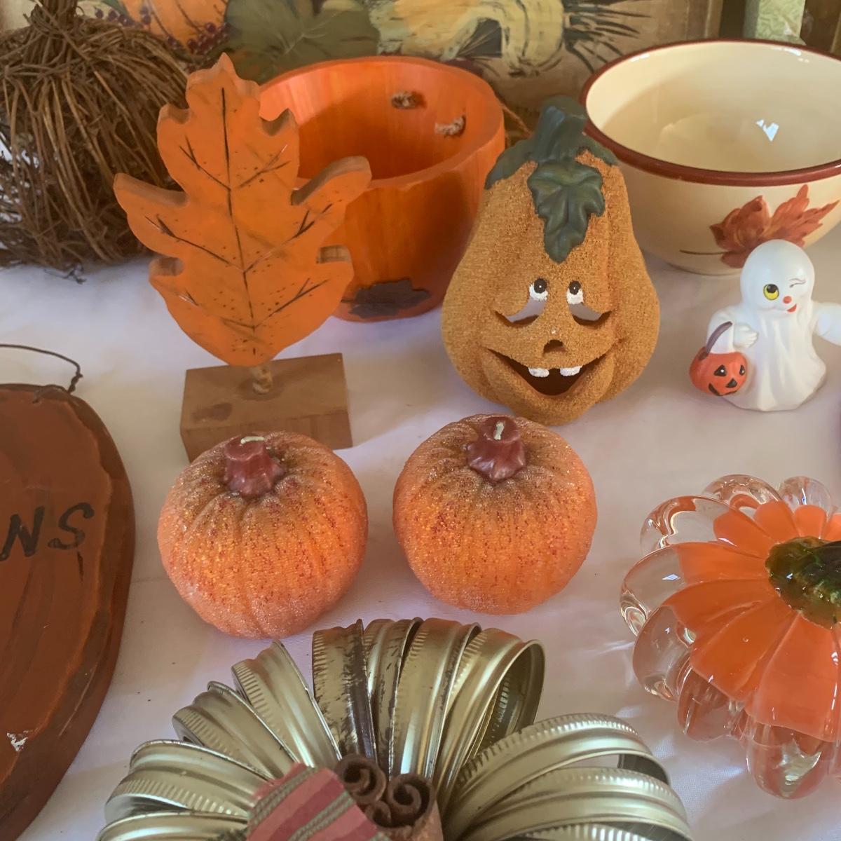It’s Fall Y’all!! This group features all kinds of fall decorations. Included are ceramic pumpkins, wooded pumpkins, fall themed plates and trays, wall hanging, decorative yard art, leaf shaped candles, several ceramic leaf shaped bowls, and much more. If you love to celebrate the fall season, you’ve come to the right place. Local pick up only.