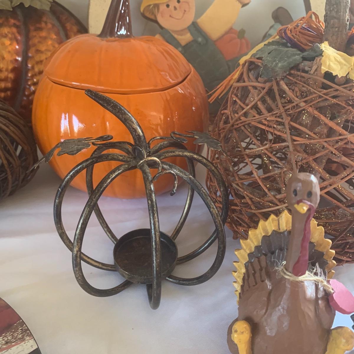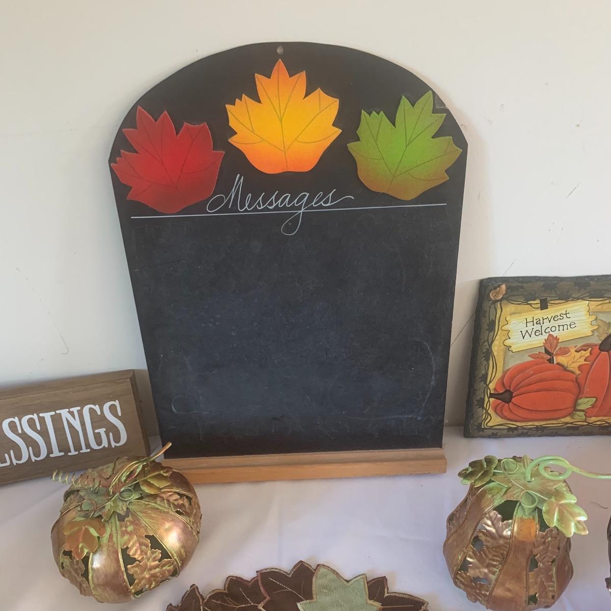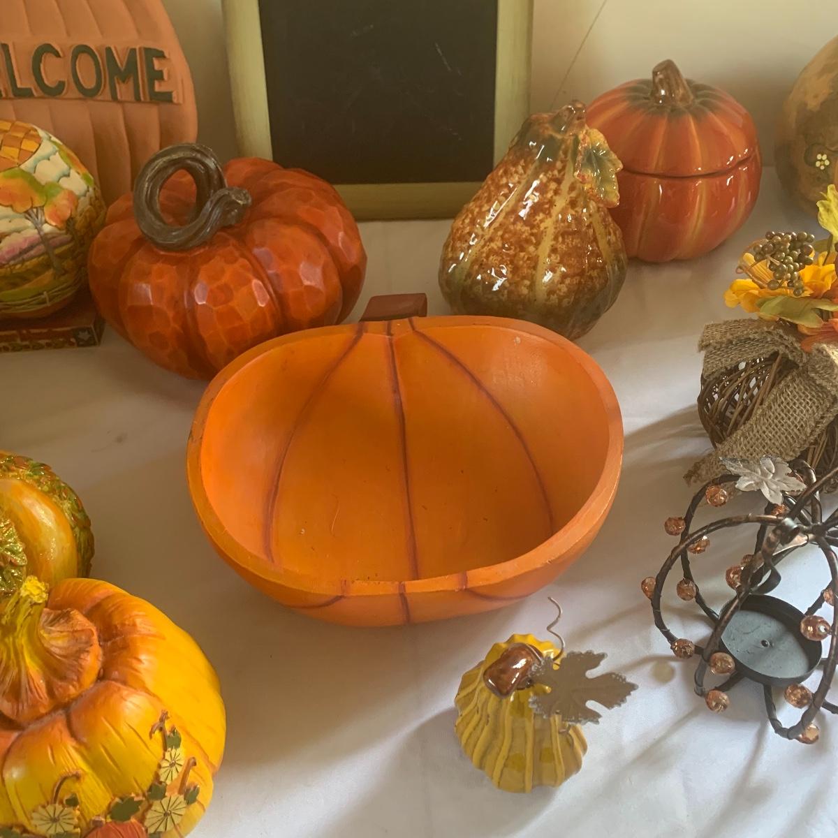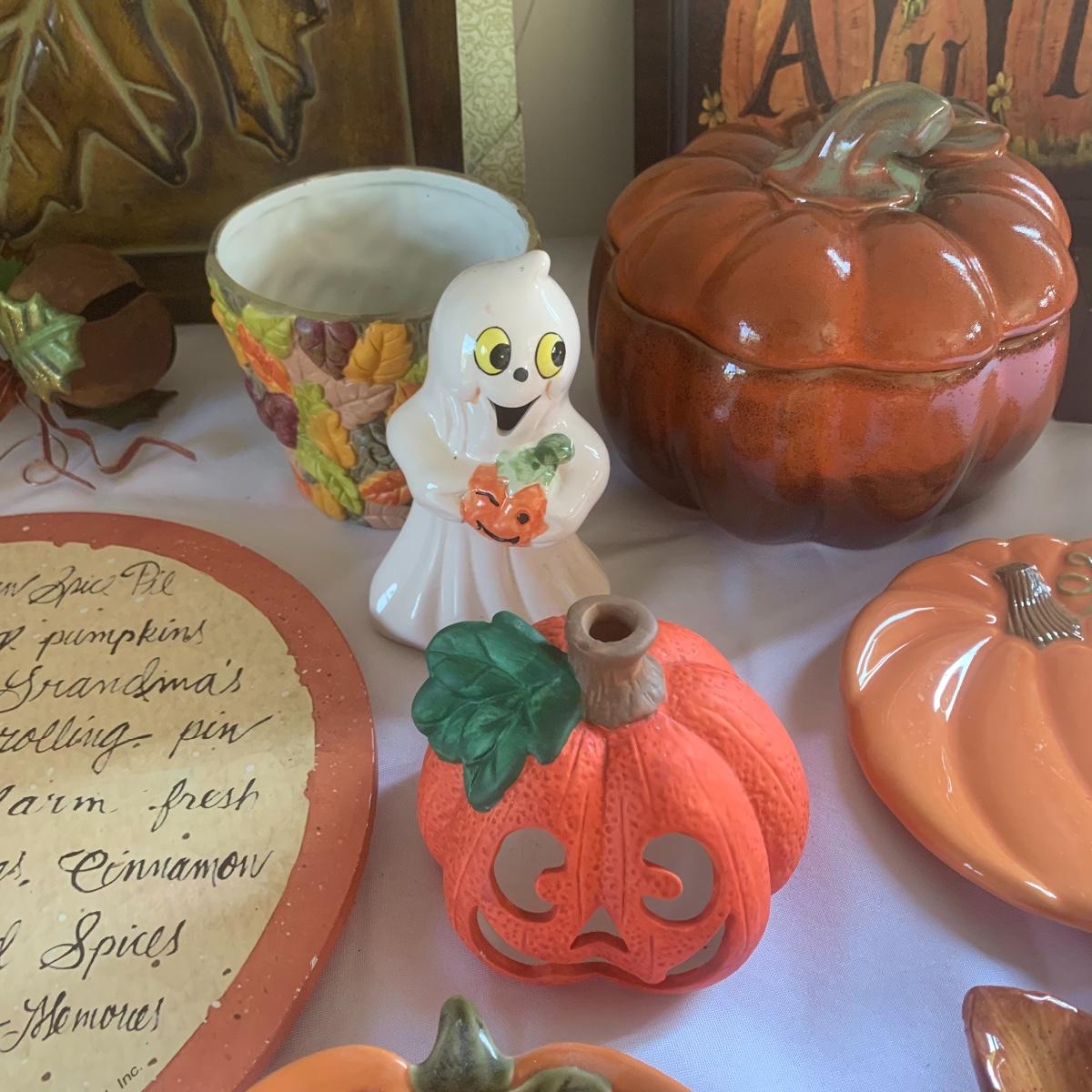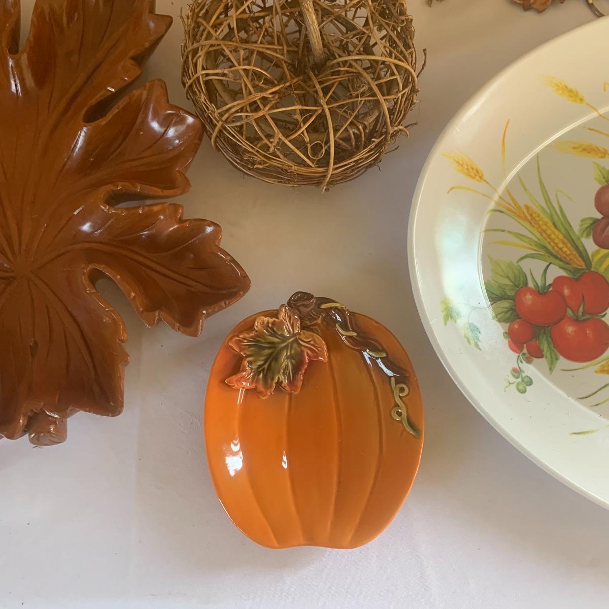 It’s Fall Y’all!! This group features all kinds of fall decorations. Included are ceramic pumpkins, wooded pumpkins, fall themed plates and trays, wall hanging, decorative yard art, leaf shaped candles, several ceramic leaf shaped bowls, and much more. If you love to celebrate the fall season, you’ve come to the right place. Local pick up only.