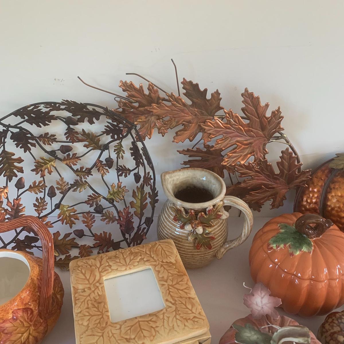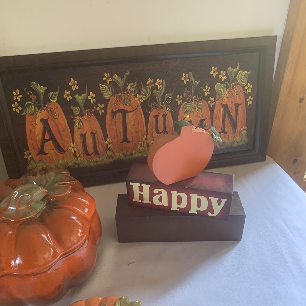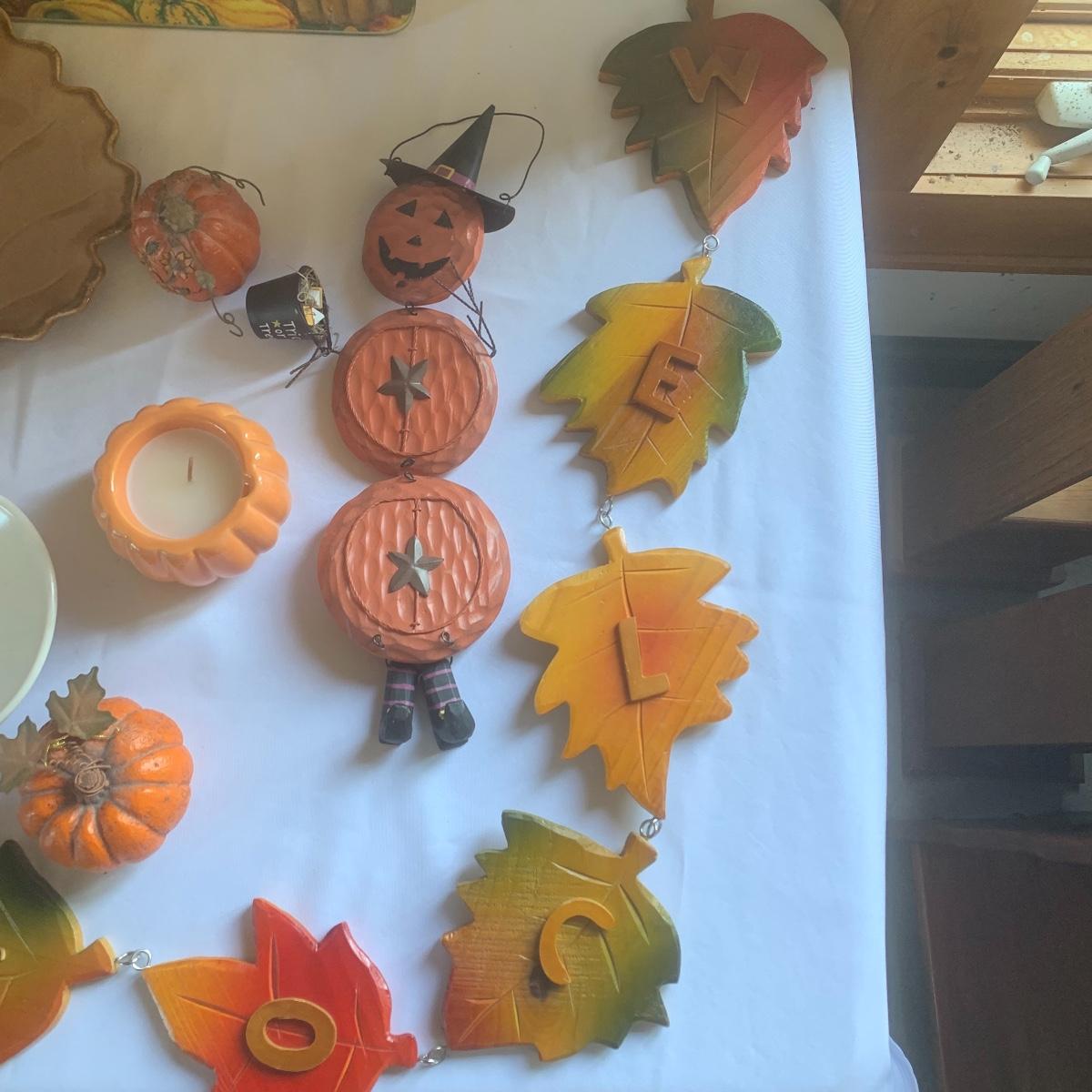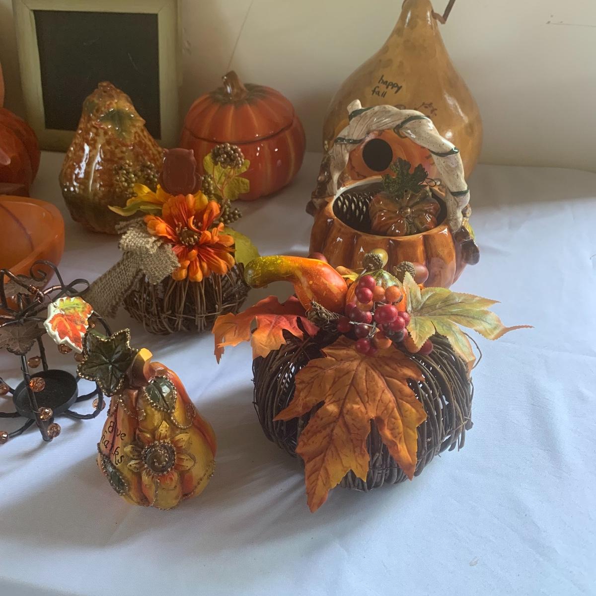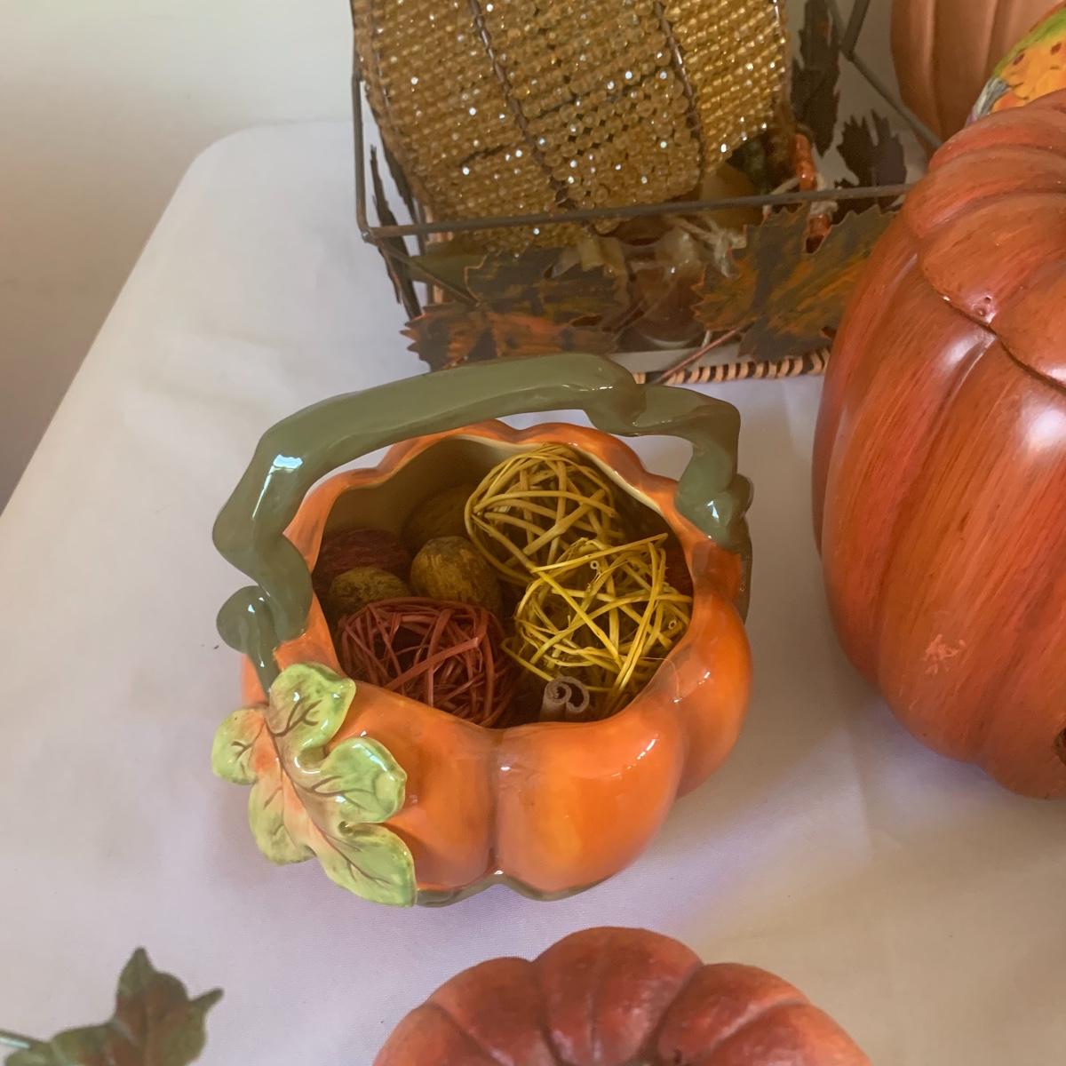 It’s Fall Y’all!! This group features all kinds of fall decorations. Included are ceramic pumpkins, wooded pumpkins, fall themed plates and trays, wall hanging, decorative yard art, leaf shaped candles, several ceramic leaf shaped bowls, and much more. If you love to celebrate the fall season, you’ve come to the right place. Local pick up only.