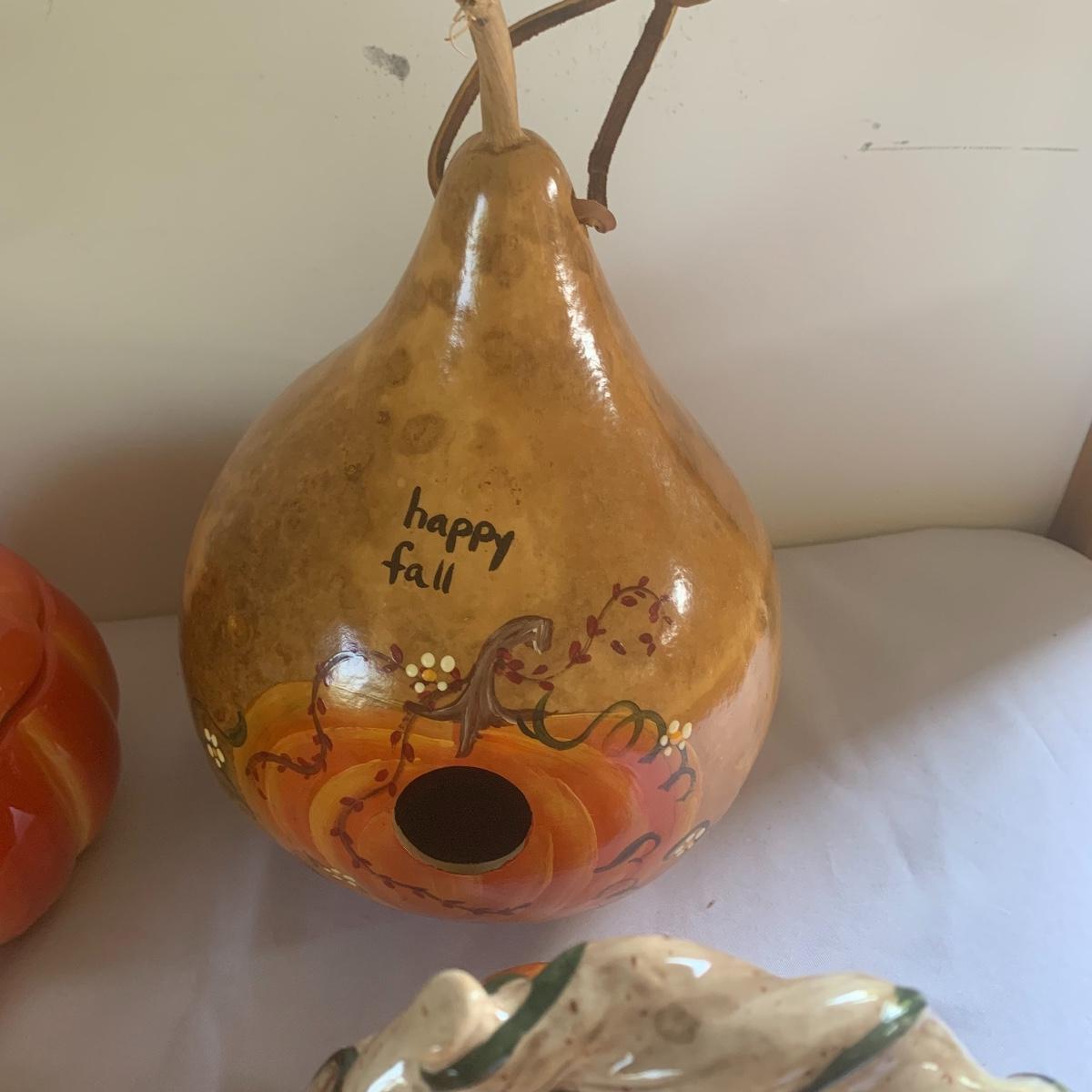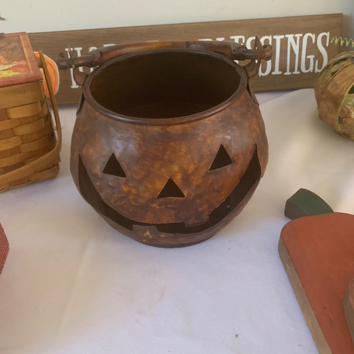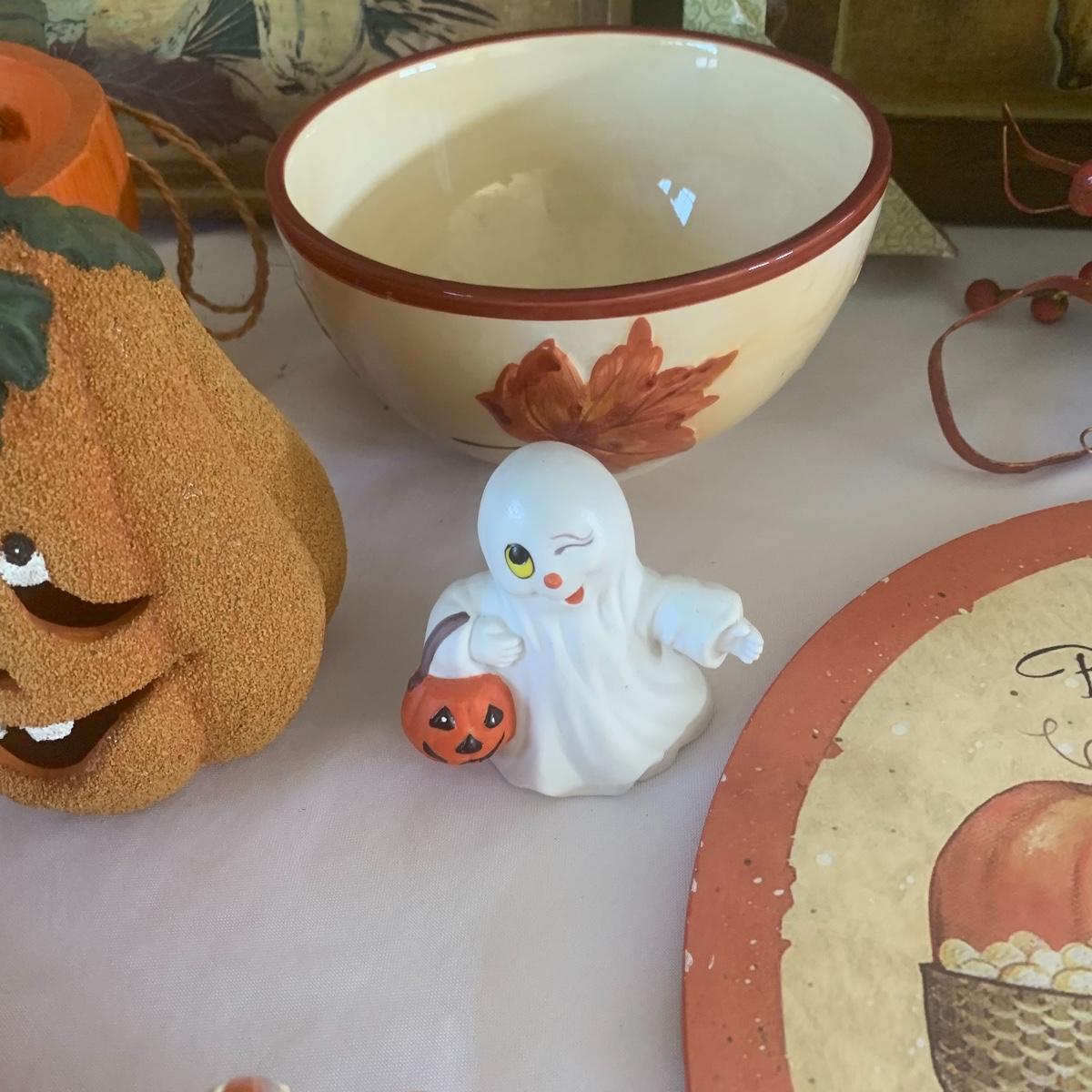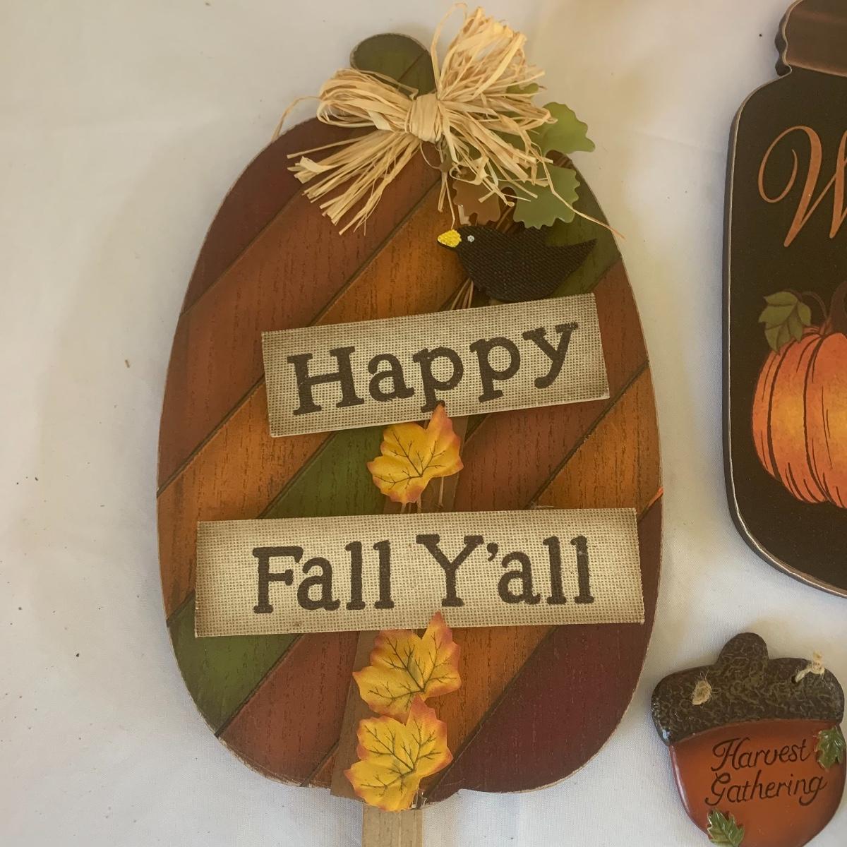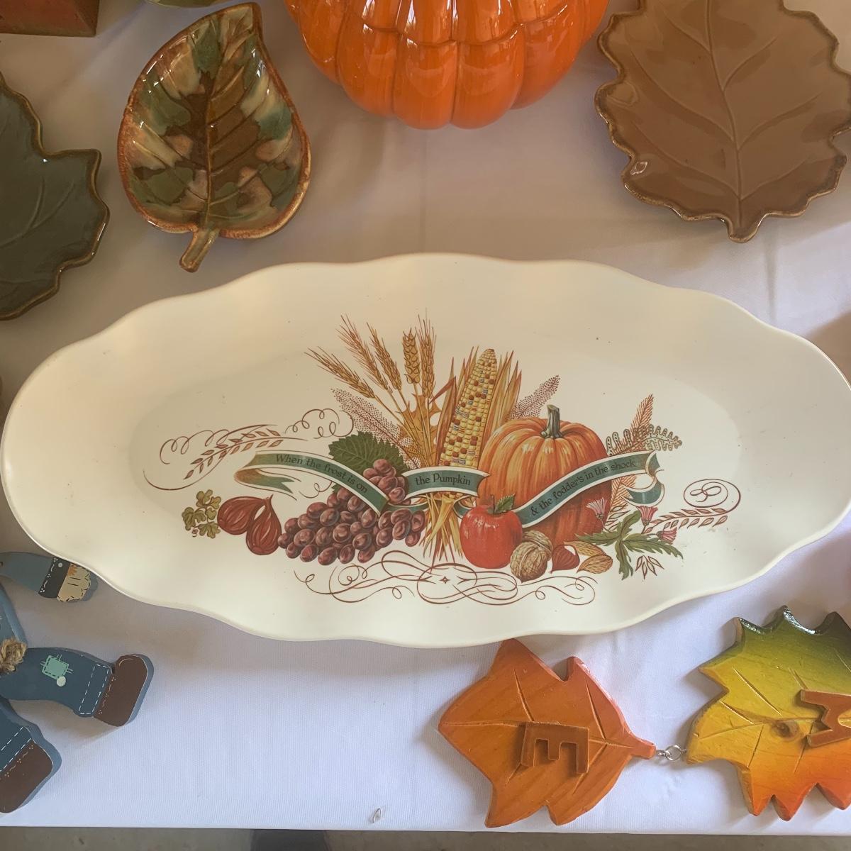 It’s Fall Y’all!! This group features all kinds of fall decorations. Included are ceramic pumpkins, wooded pumpkins, fall themed plates and trays, wall hanging, decorative yard art, leaf shaped candles, several ceramic leaf shaped bowls, and much more. If you love to celebrate the fall season, you’ve come to the right place. Local pick up only.