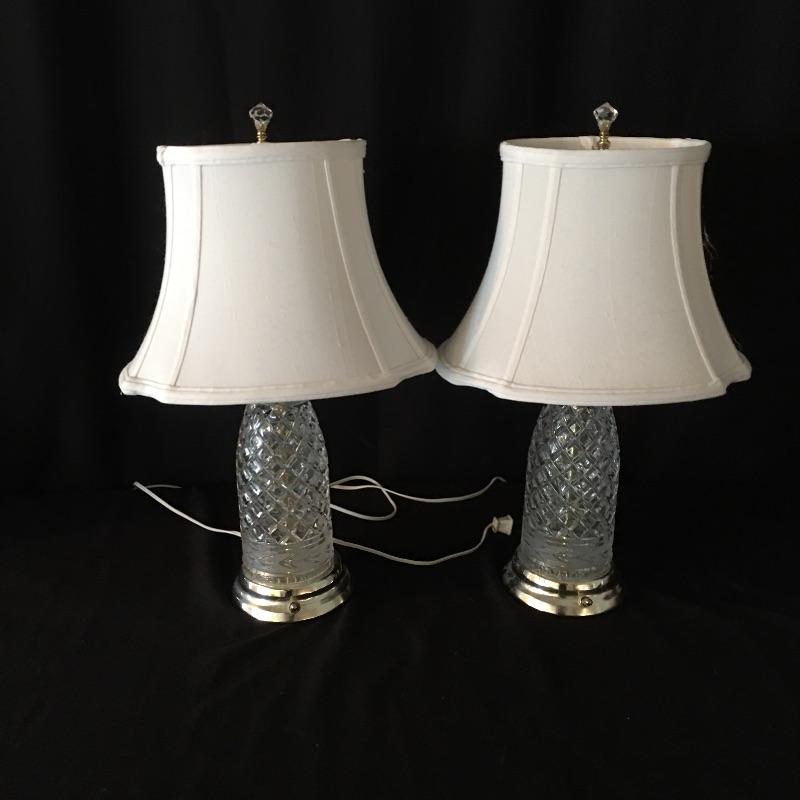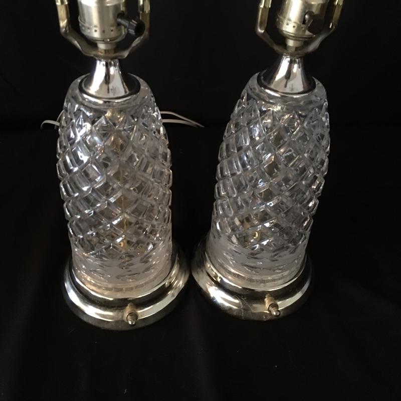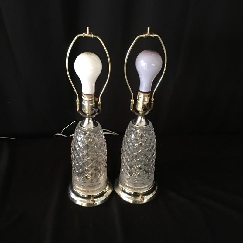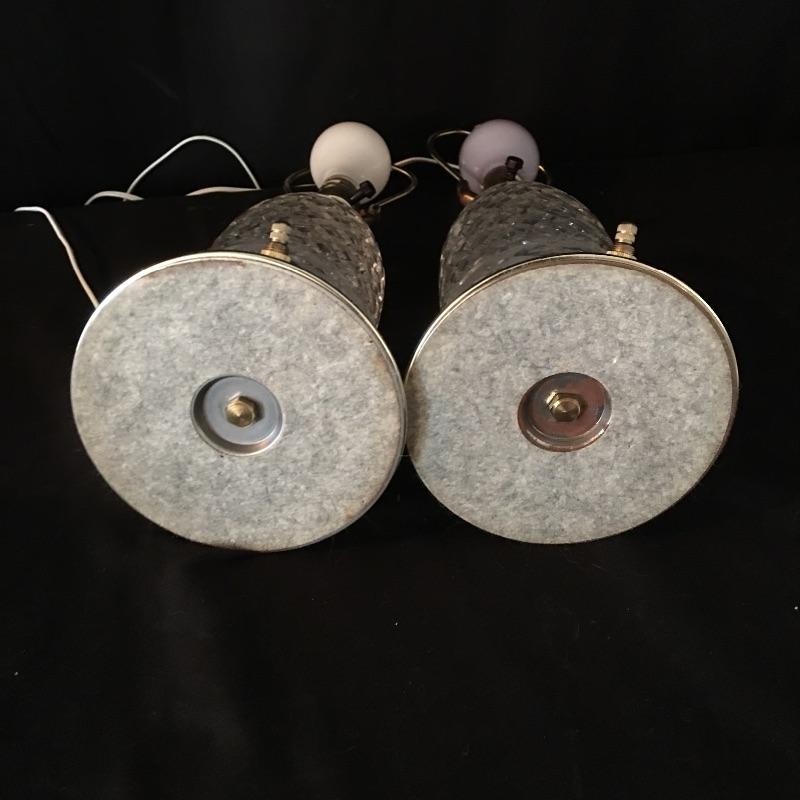 Add a little bling to your home with these four glass lamps. Includes two matching lamps with three way bulbs, one smaller lamp and a taller lamp all in the same look. All shades are in good condtion. All lamps worked when tested.