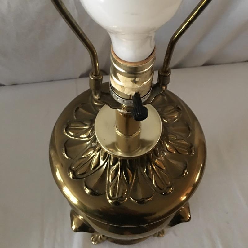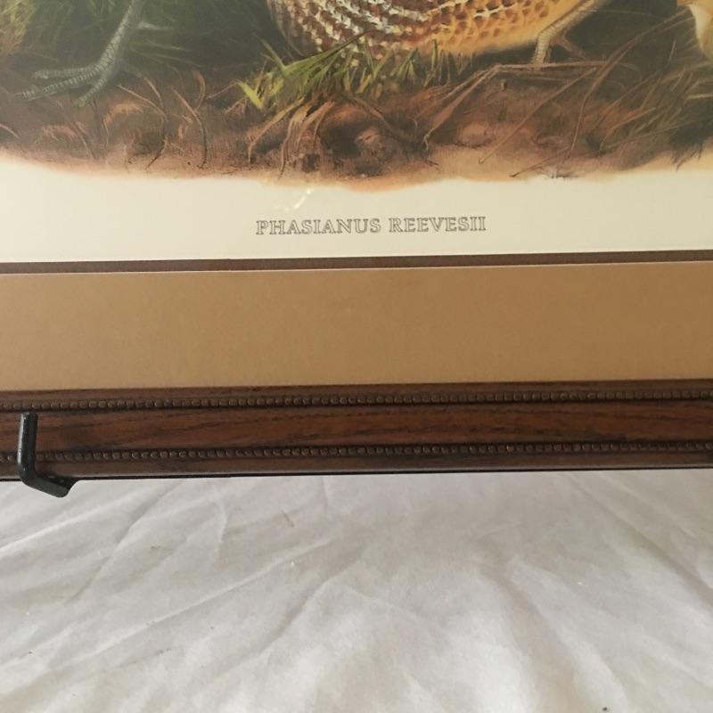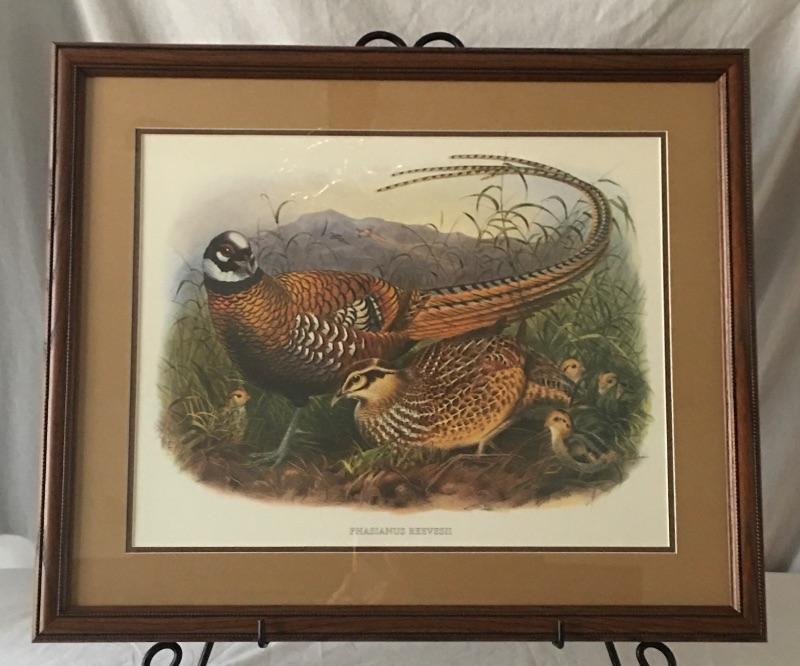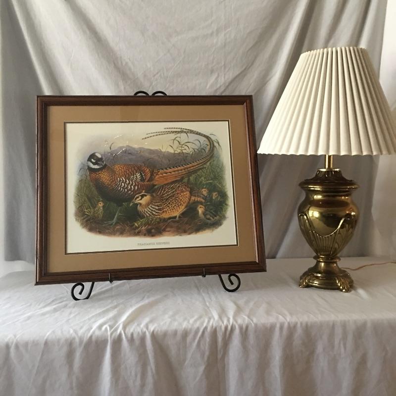 Matted and framed print titled Phasianus Reevesii. Frame measures 23” x 27”. Lot also includes a heavy brass lamp. Add some classic lighting to your room. Lamp worked when tested.