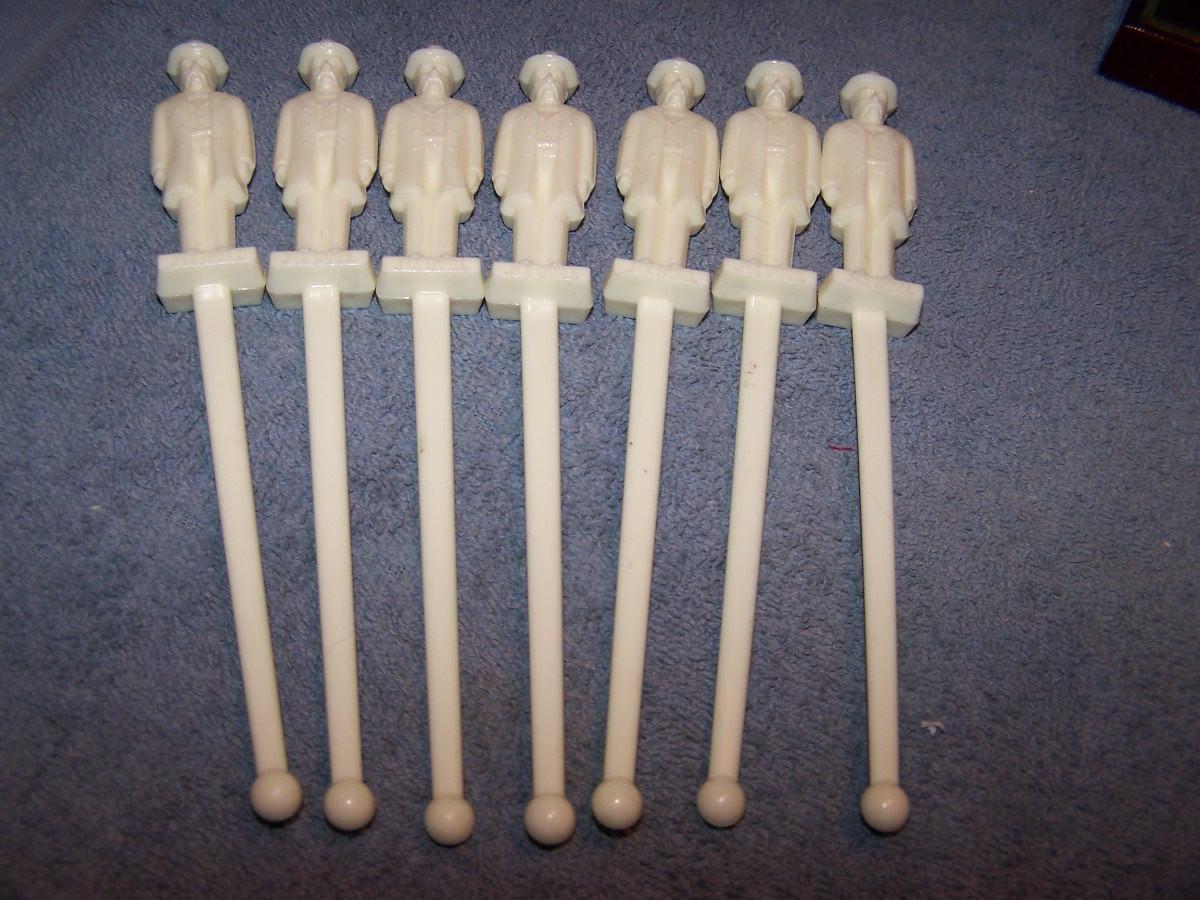 GREAT COLLECTION OF VINTAGE SOUVENIR/ADVERTISING ITEMS!!! 7 SWIZZLE STICKS--6 3/4'' TALL''' LIGHT WEAR...