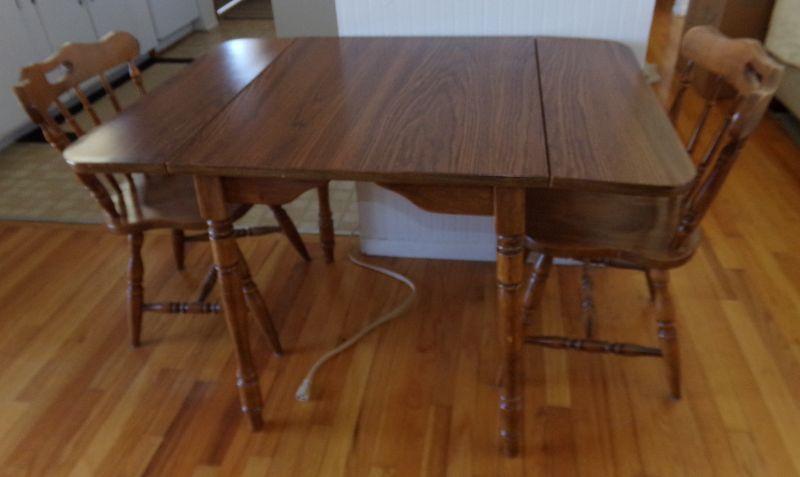 DROP LEAF KITCHEN TABLE MEASURES 44" X 29" FULLY OPEN 2 CHAIRS INCLUDED FAIR-GOOD SHAPE