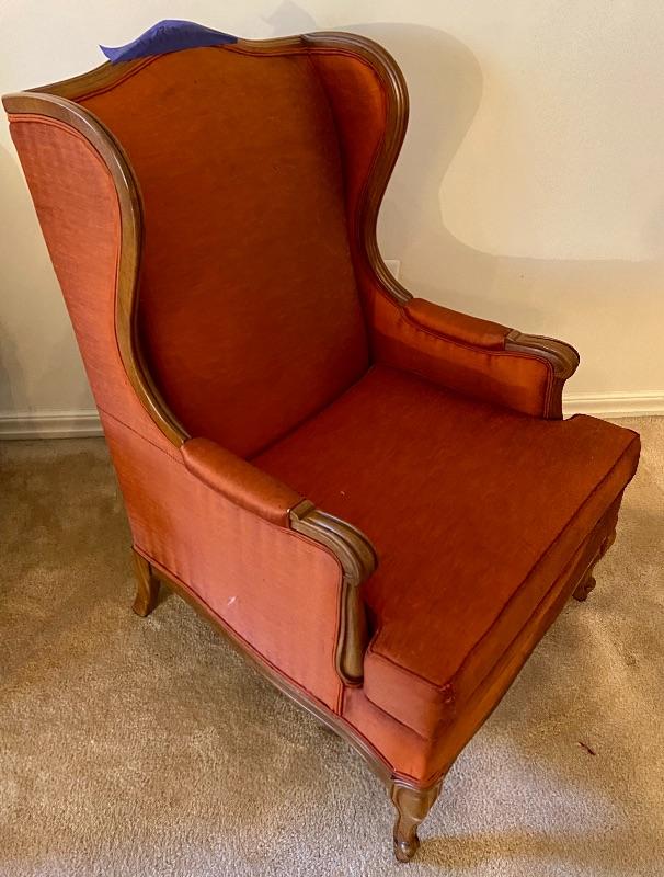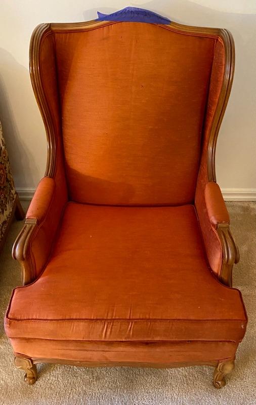 Lenoir Orange cushioned chair with wooden trimming 25Lx3Wx39H. MHW