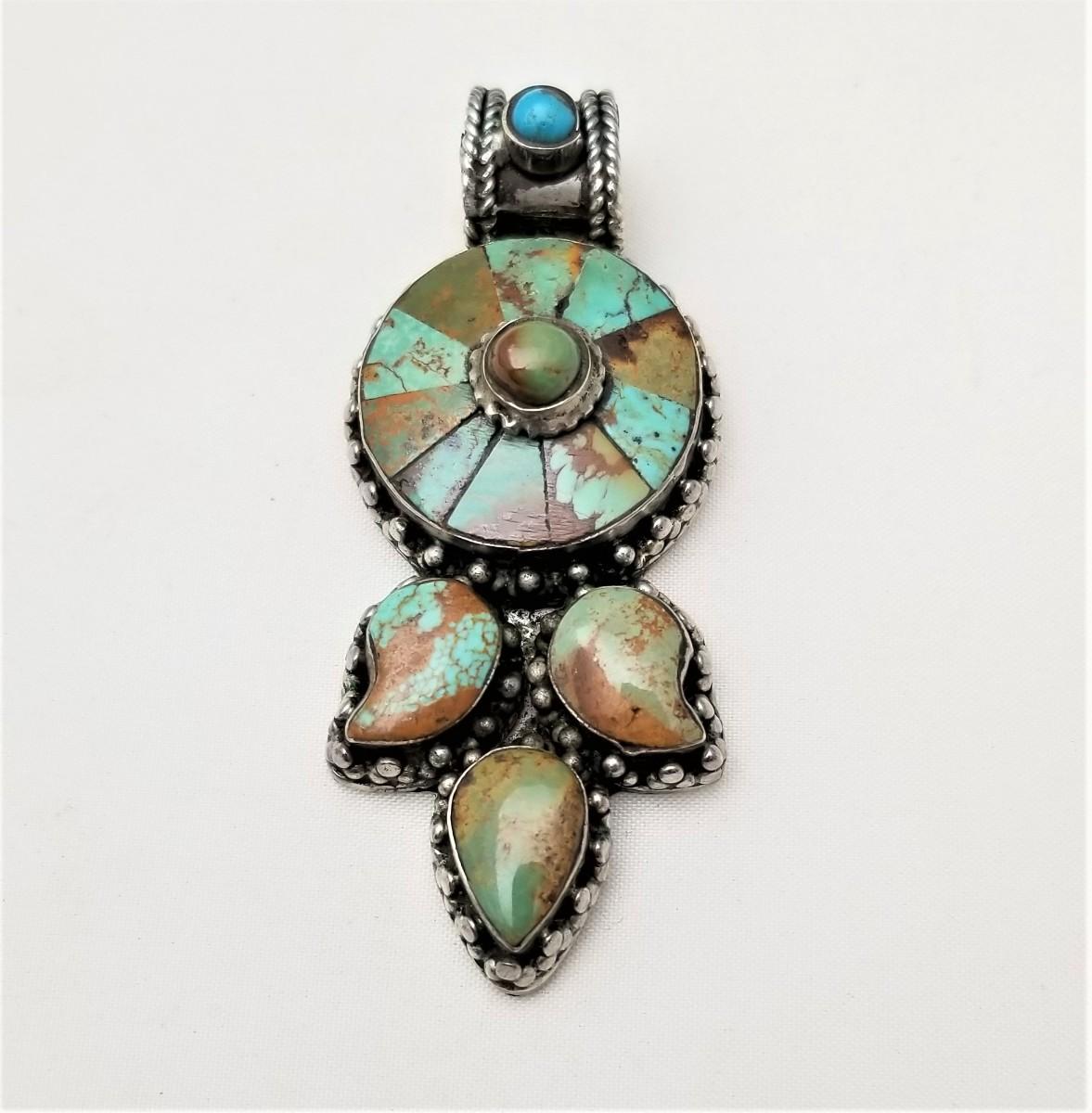 Lot #38  Lovely Southwest Style Sterling Silver and Turquoise Pendant