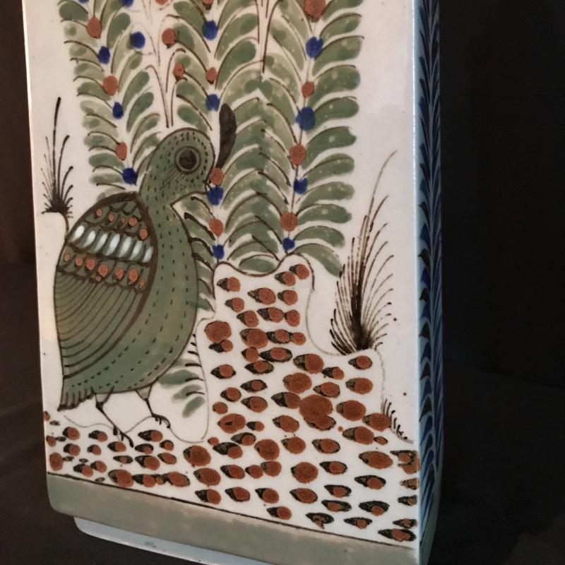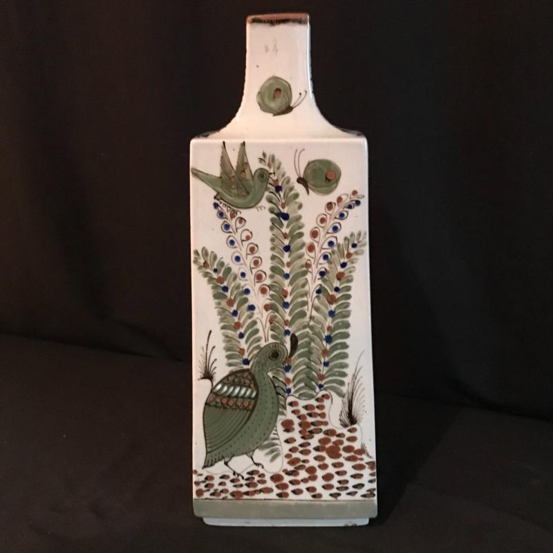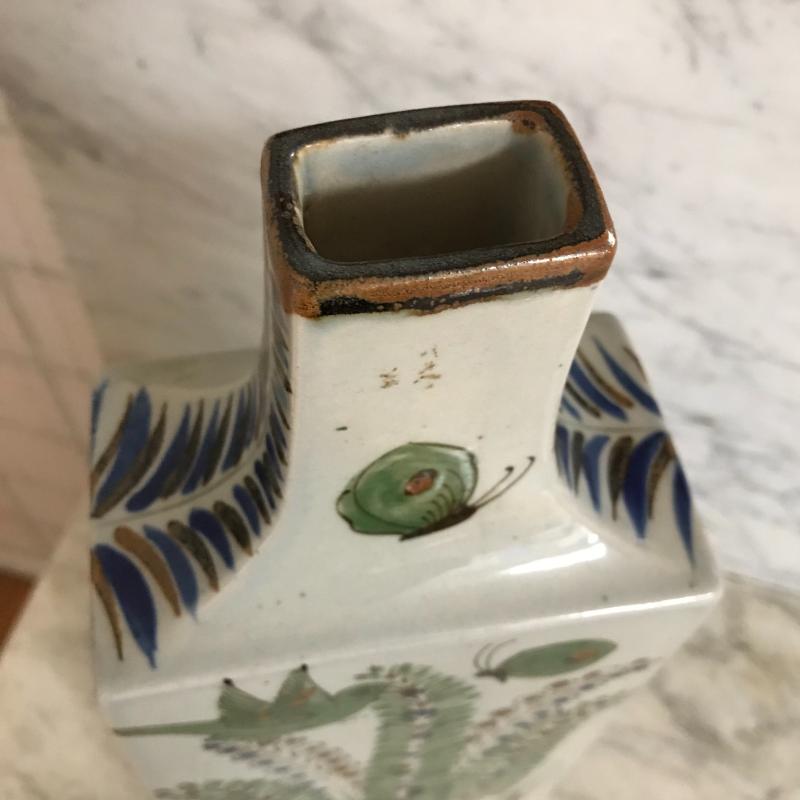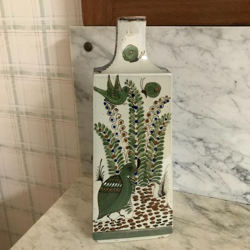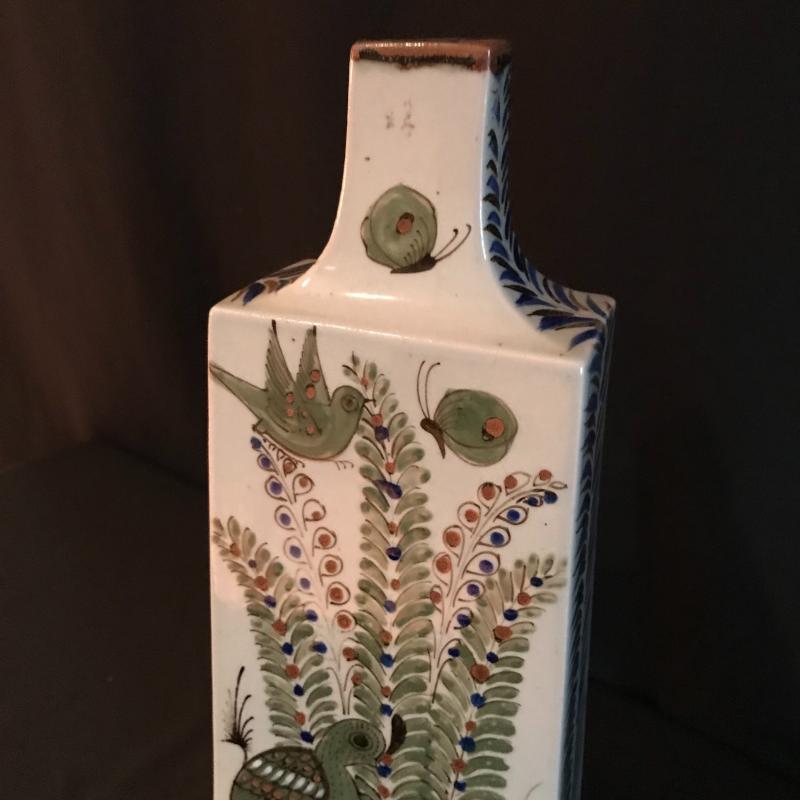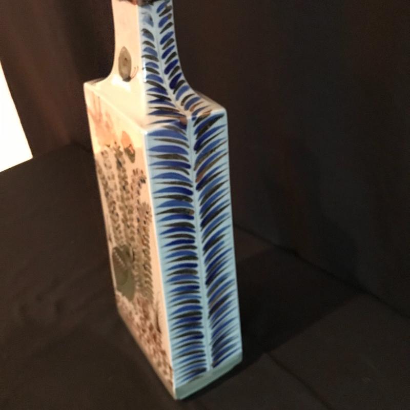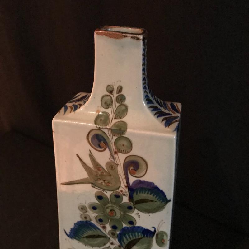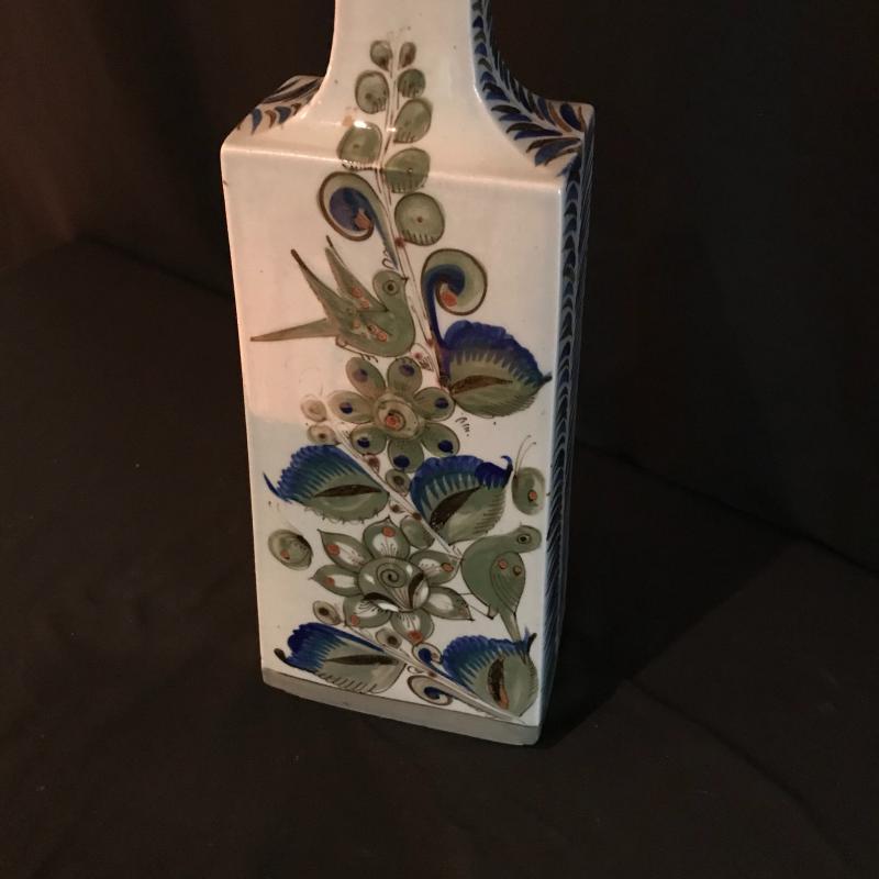 This hand painted Mexican folk art vase would look beautiful on your fireplace mantel or accented with a dried flower arrangement. measures 6.5”l x 3.5”w x 16.5”h.